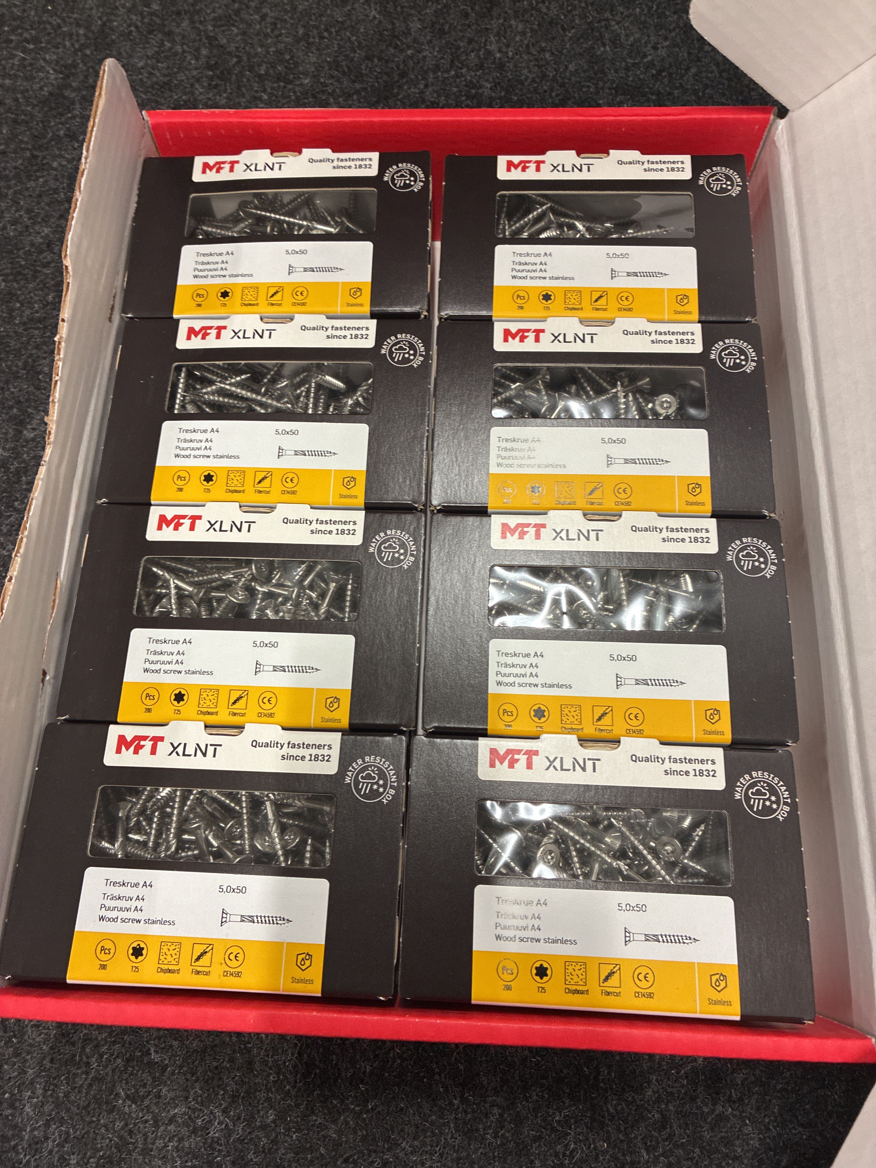 1600 pcs Wood screws MFT 5.0x50mm stainless steel.