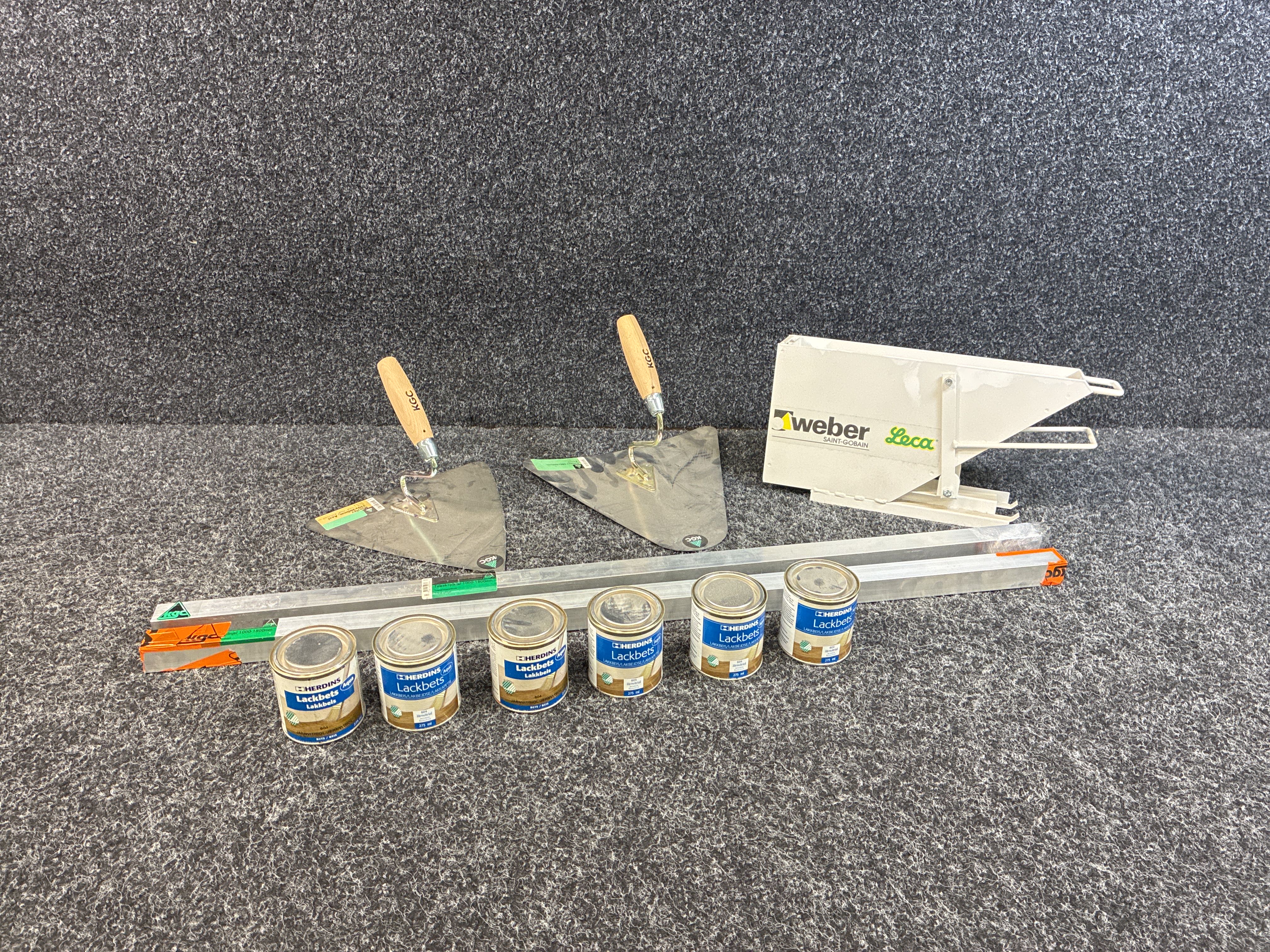 Contains, among other things: Masonry box, trowels,