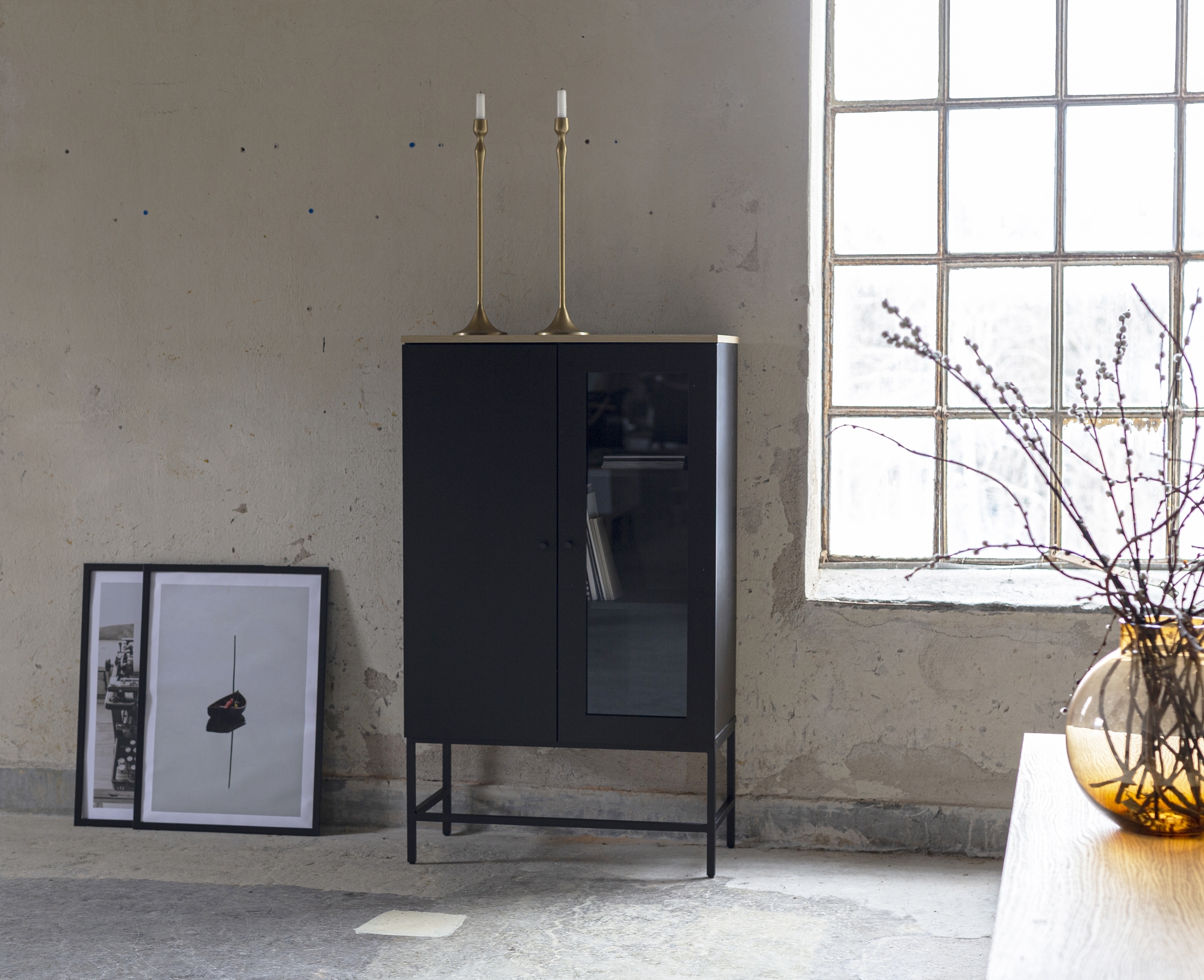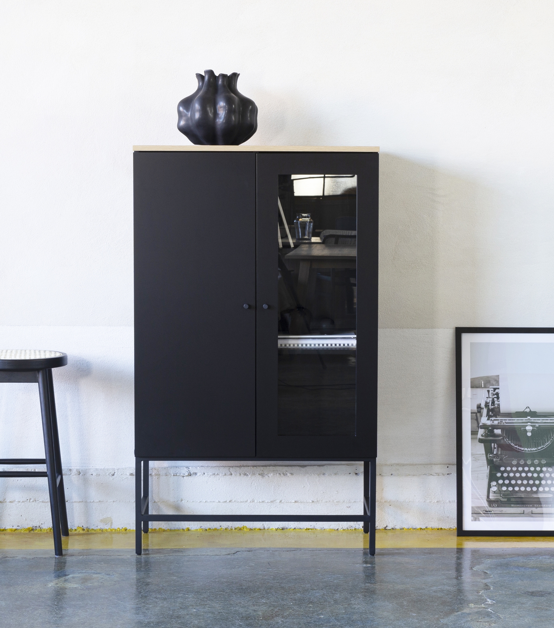 Edge cabinet in black high-pressure laminate (HPL):