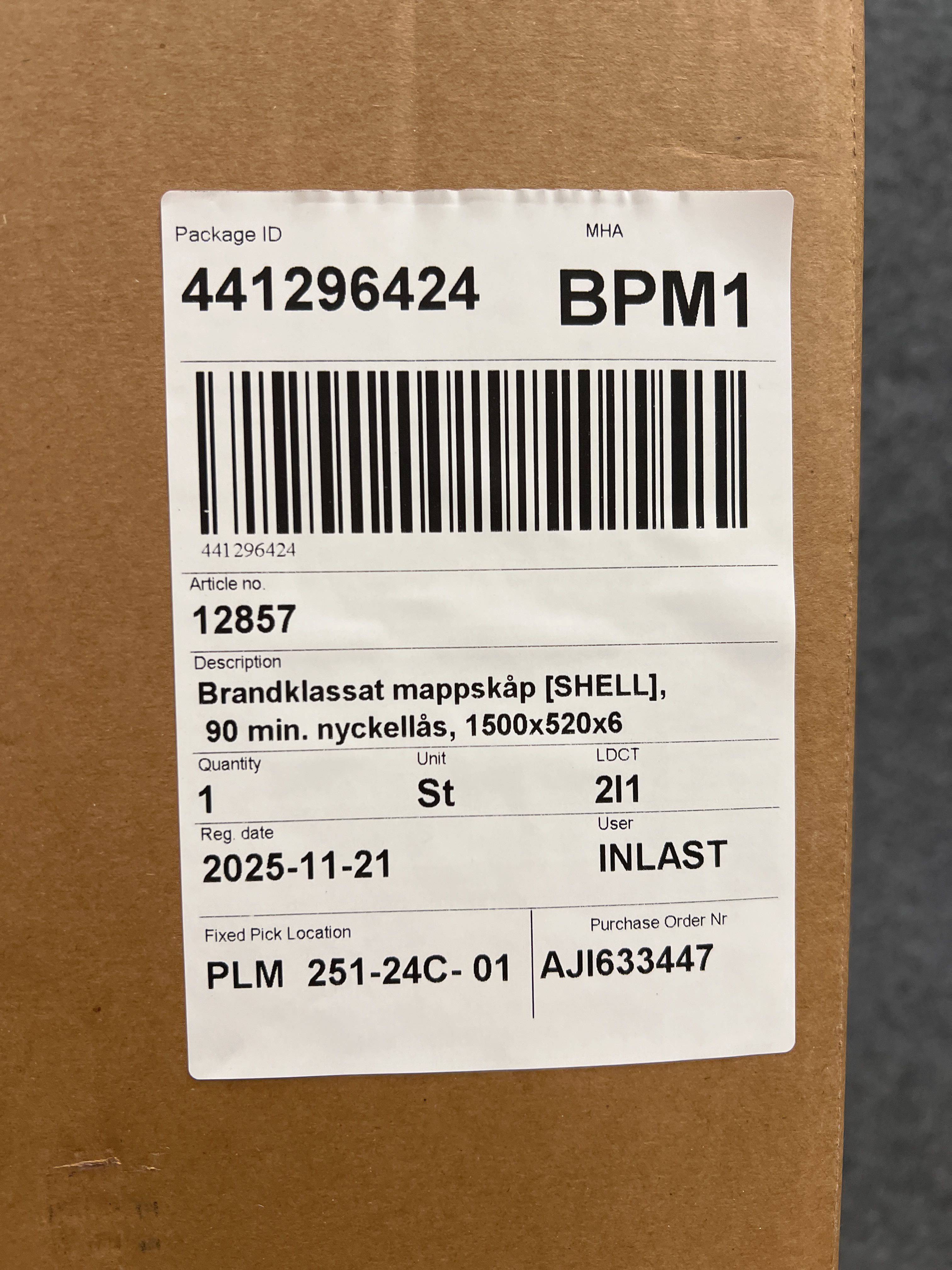 90 min. key lock, 1500x520x680 mm, 4 drawers.