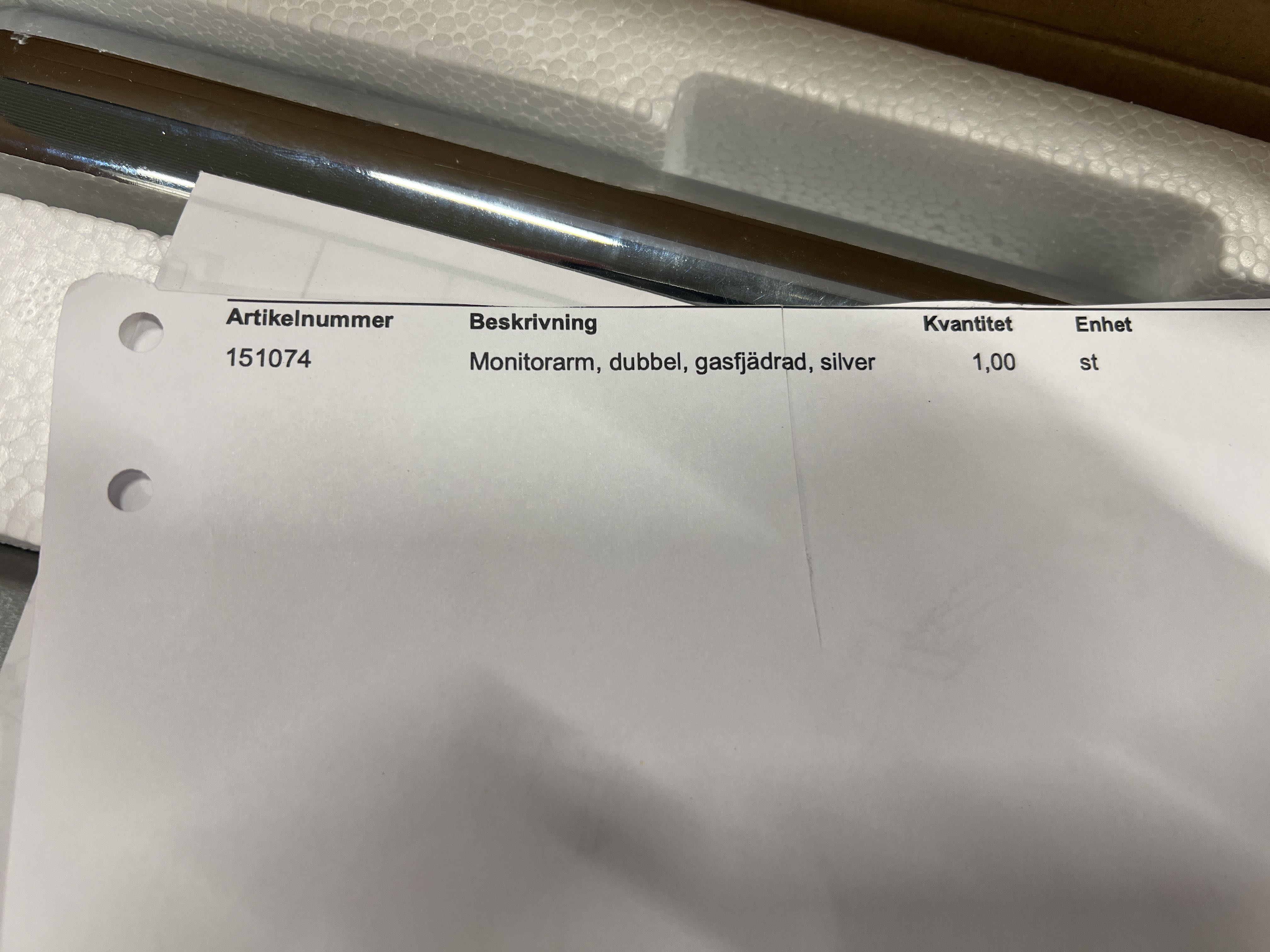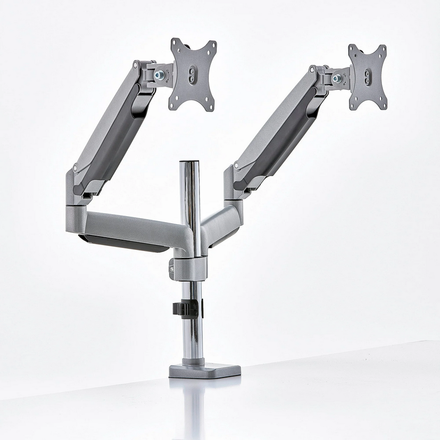 Monitor arm Double, gas spring, silver.