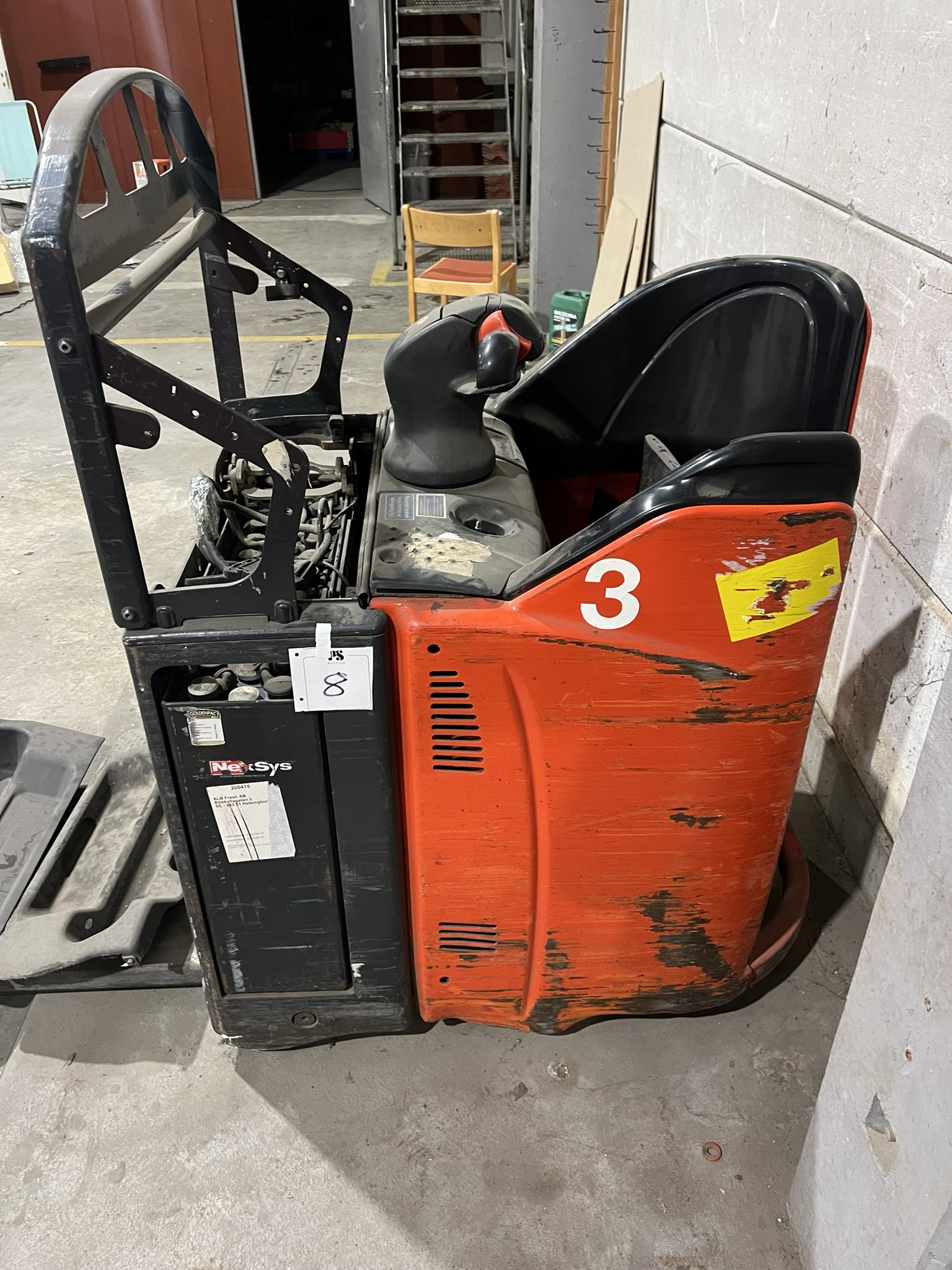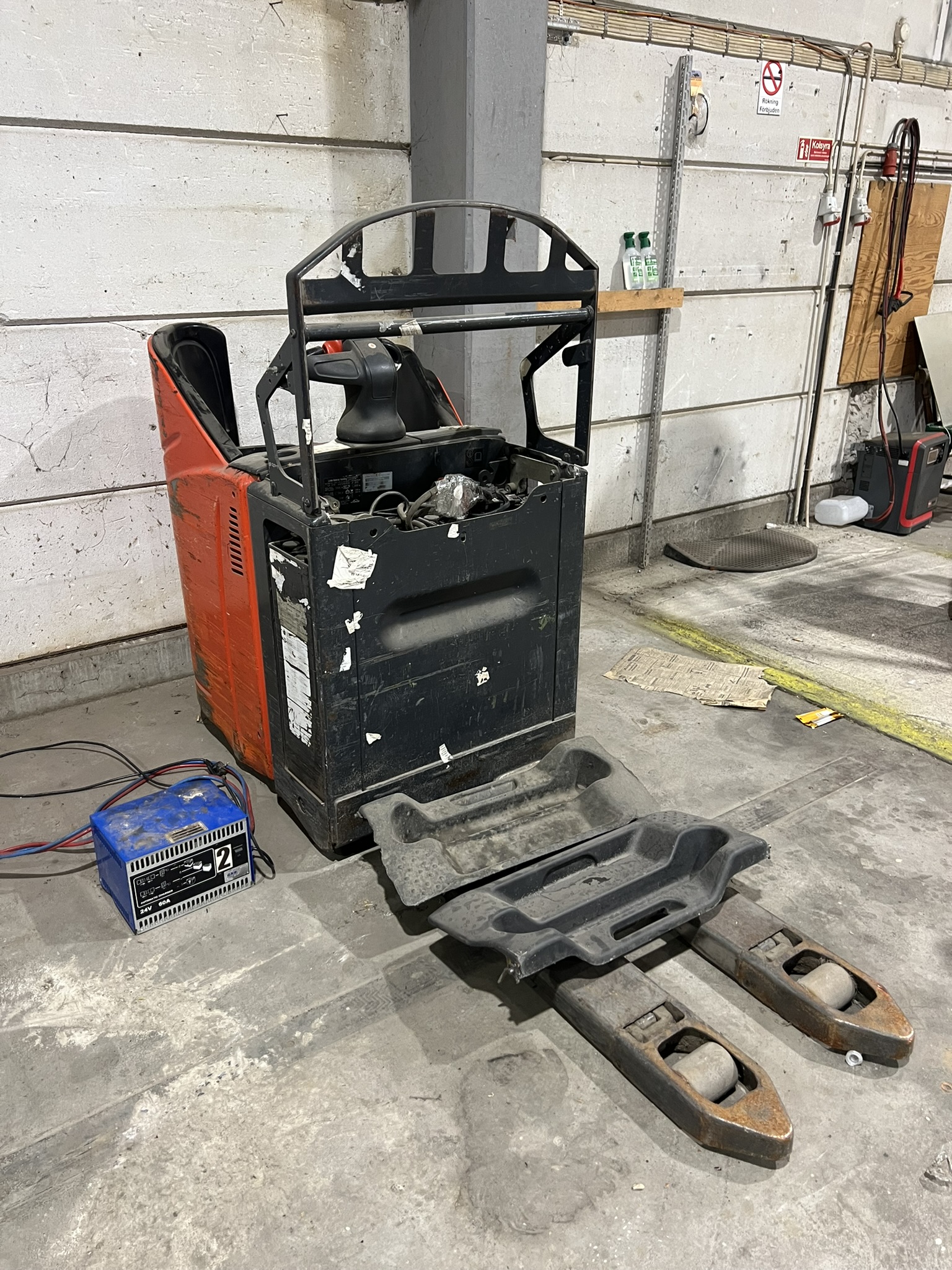 The contents include forklifts and lifting equipment from Linde, pallet trucks in various capacities, a stretch film machine, refrigeration units, refrigerated counters and various restaurant machines. In addition, cold storage, cooling panels and smaller equipment such as ladders and stamps are also included.