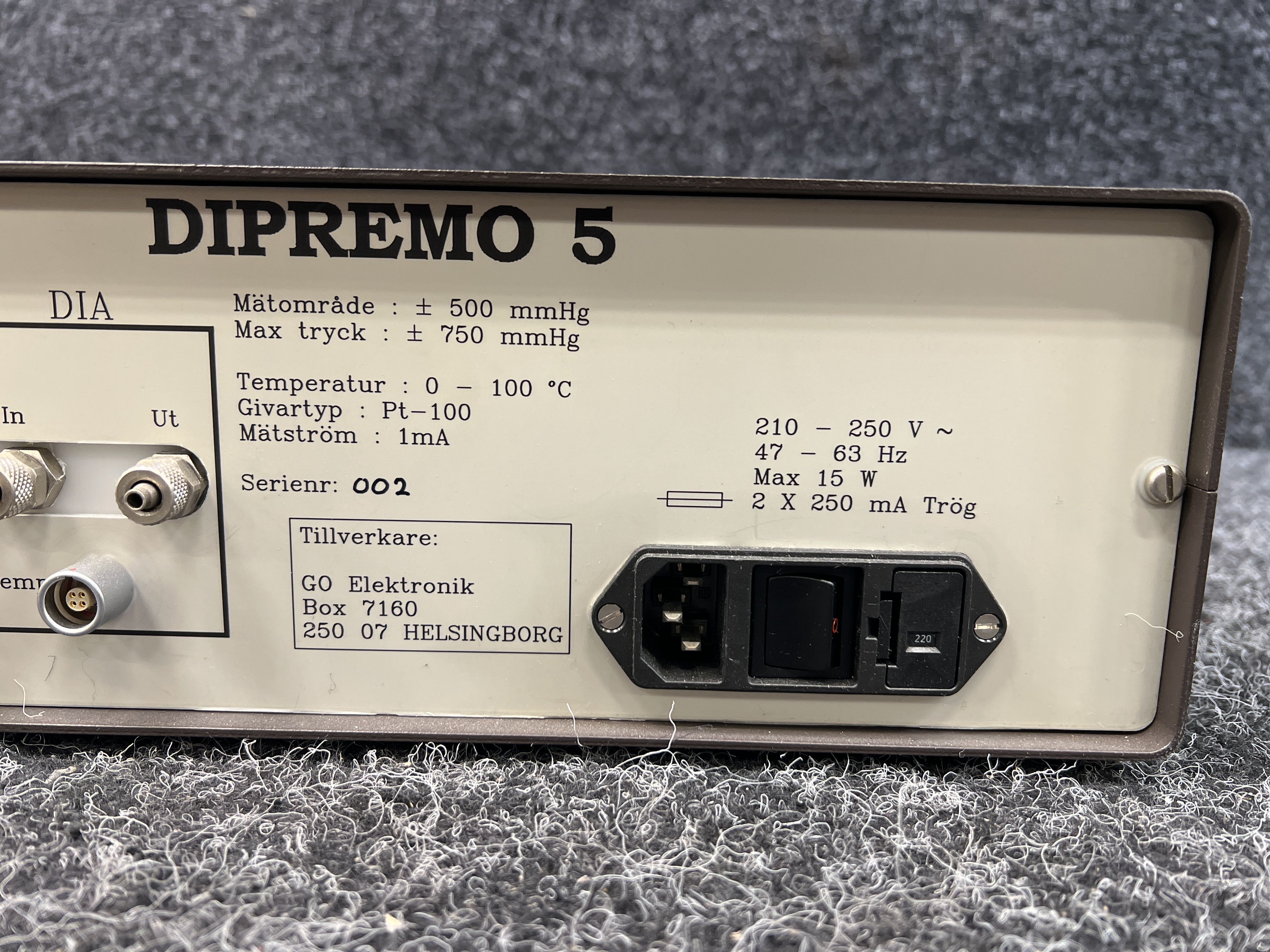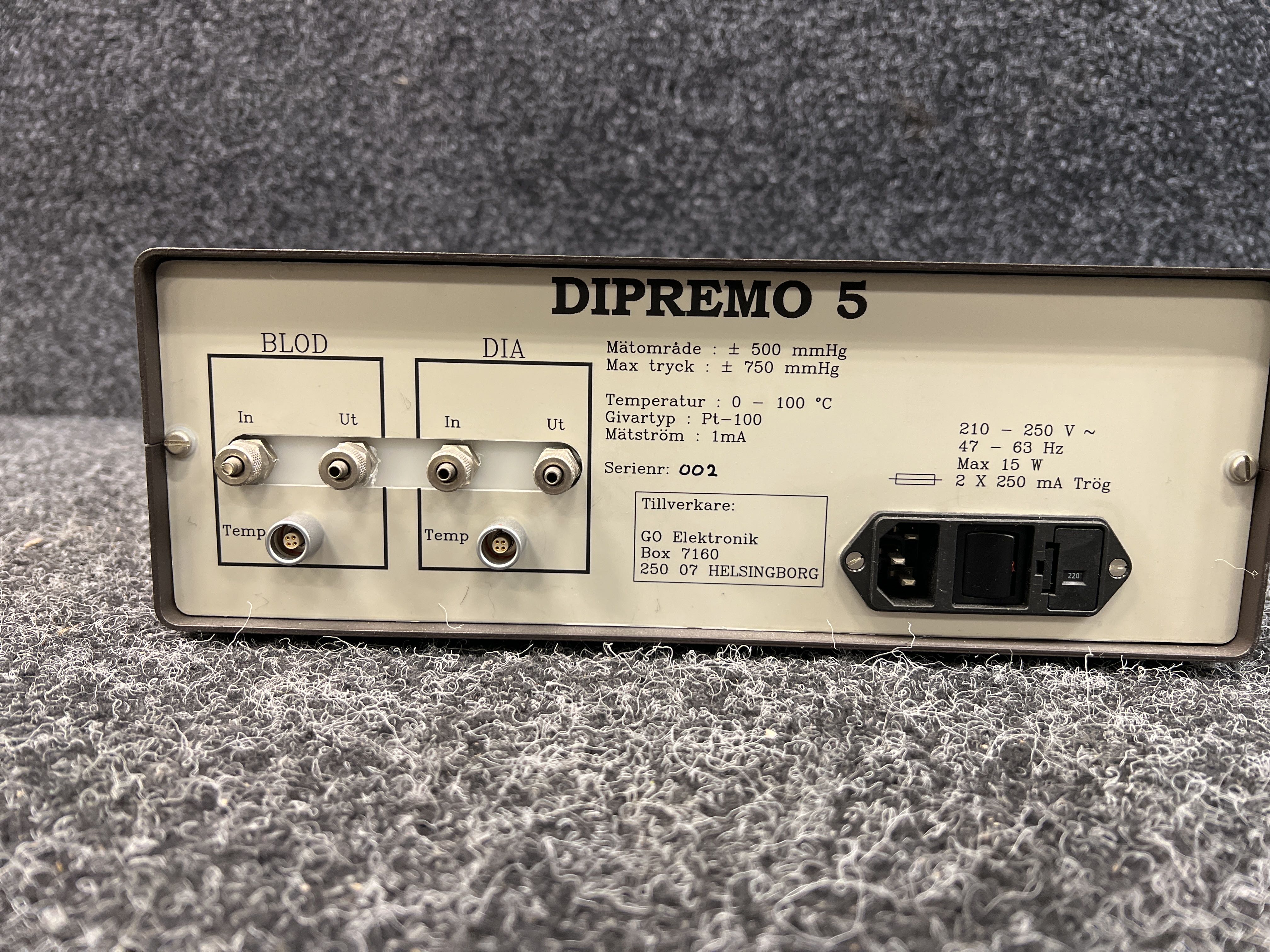 • 3 digital displays (BLOOD, DIA, TMP)
