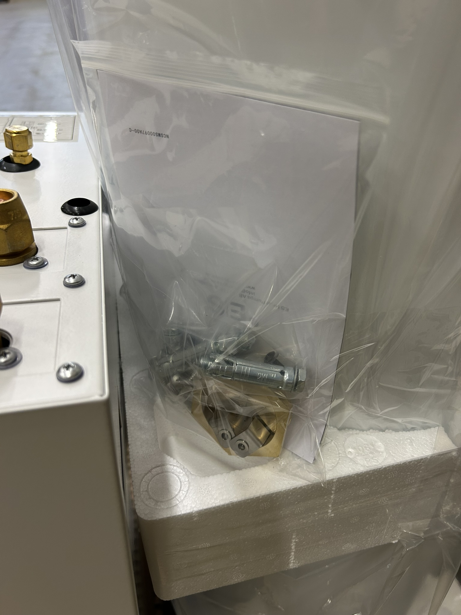 The heat pump is sold together with a stainless steel buffer tank and condensation water tray.