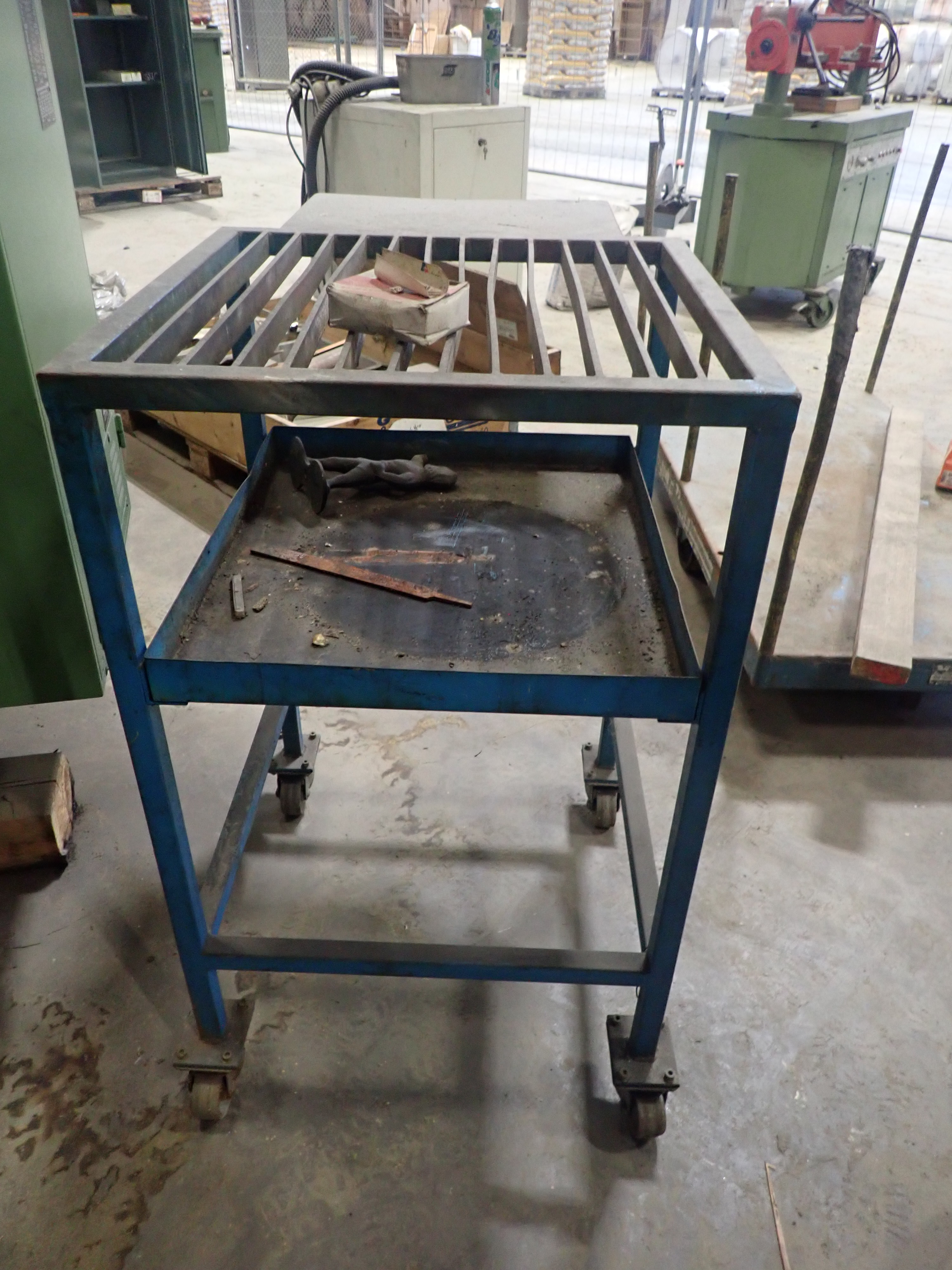 Two material tables. in metal and with wheels