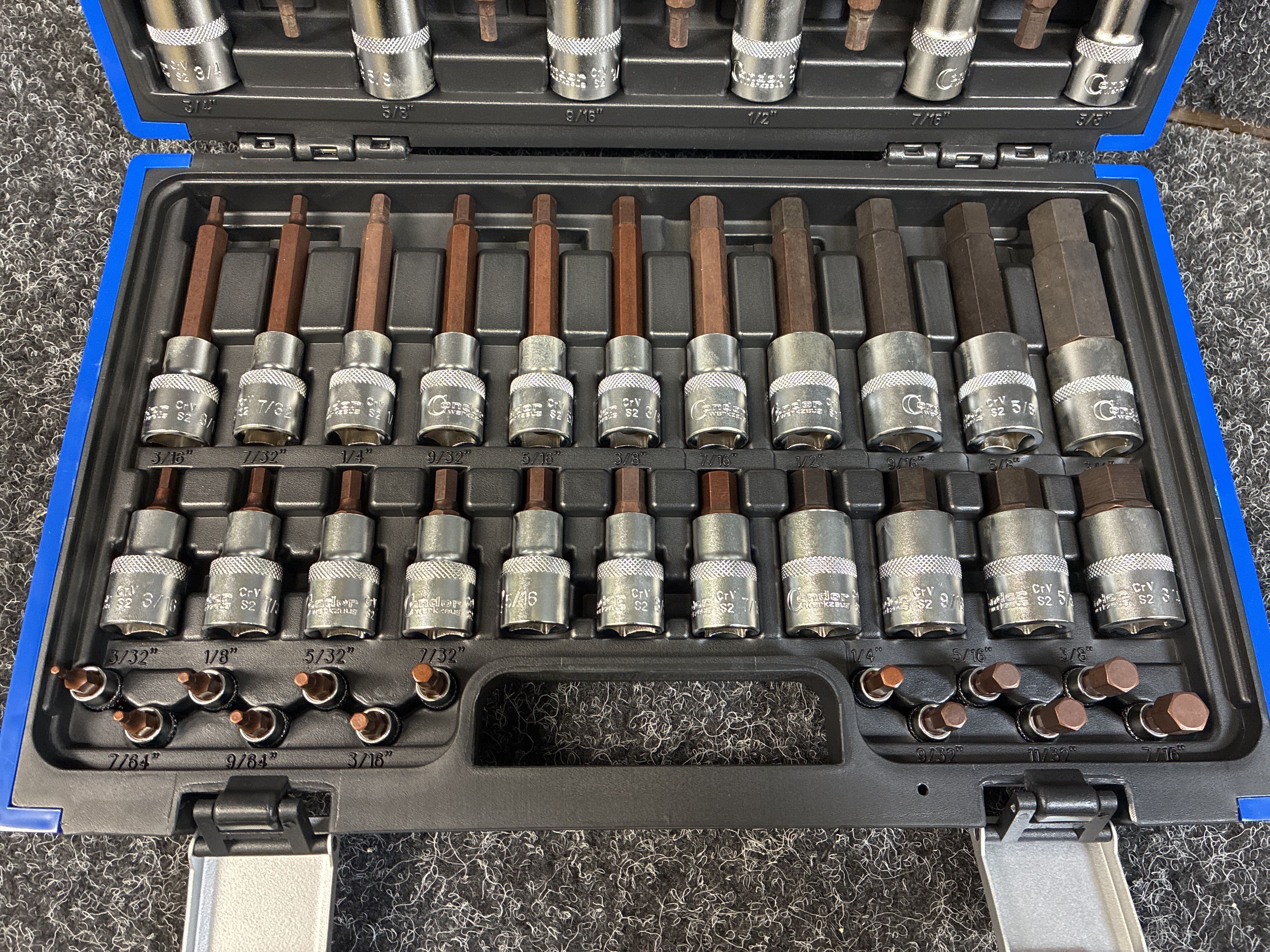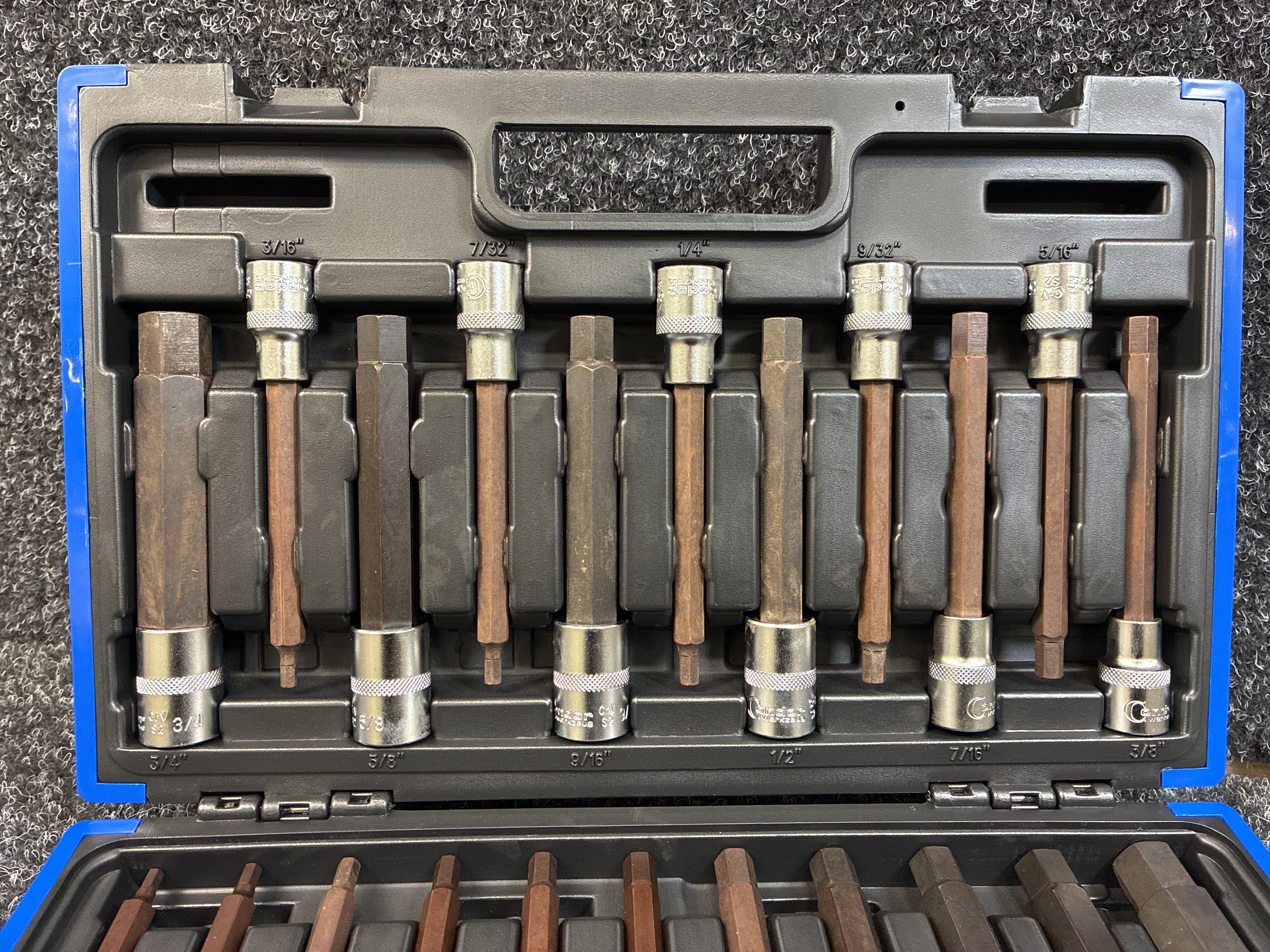 Condor Socket bit set INCH 1/4" + 1/2" – Hex 3/32"–3/4" – 46 pieces