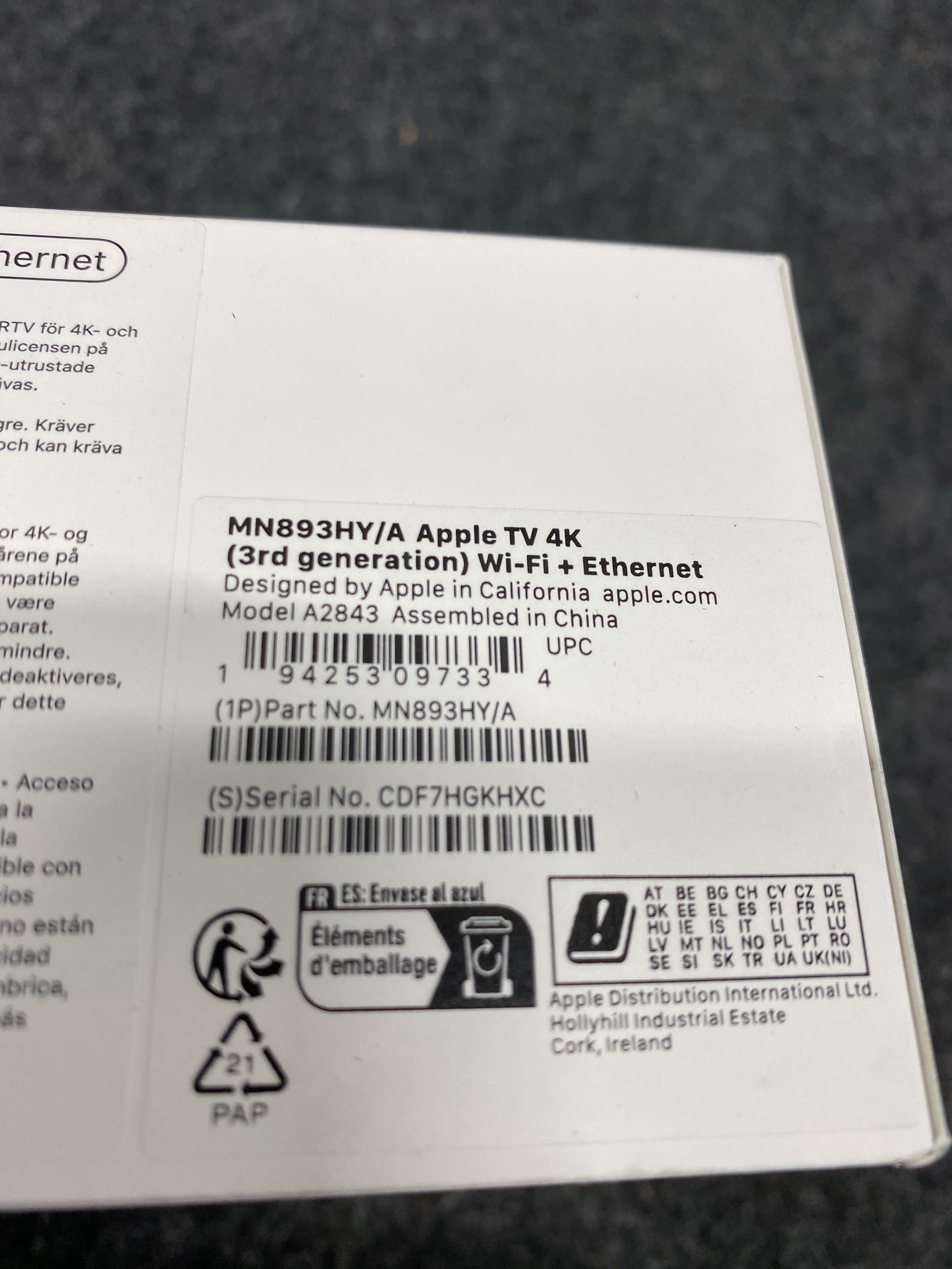 Manufacturer's part number: MN893HY/A