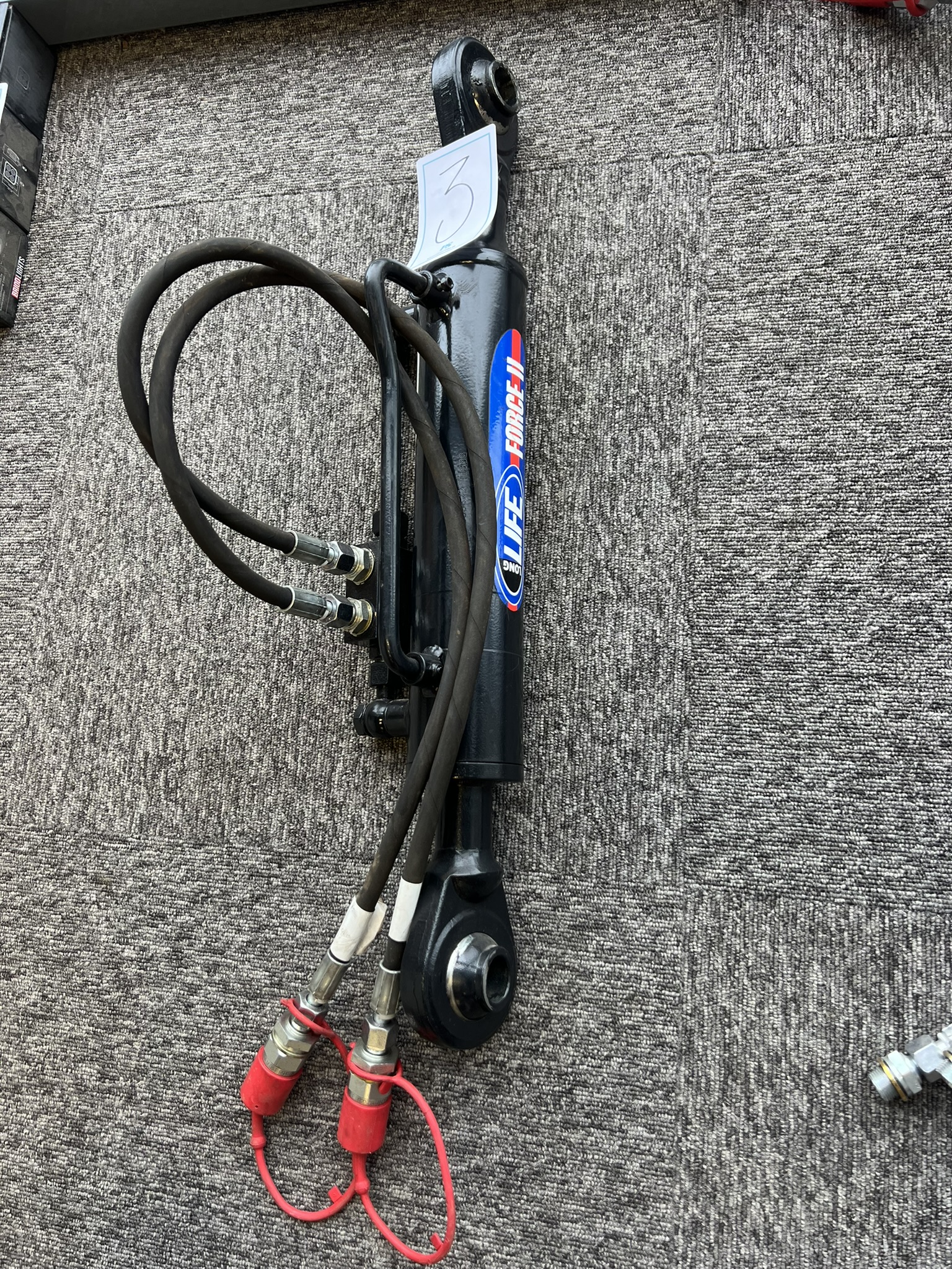 The items include starter batteries and motorcycle batteries, hydraulic and tractor parts, tools and tool cabinets with contents, compressors, welders, jacks, lifting equipment, pallet jacks, work lighting, generators, engine heaters, storage shelves and various machine and vehicle-related components. Office and other equipment is also included.