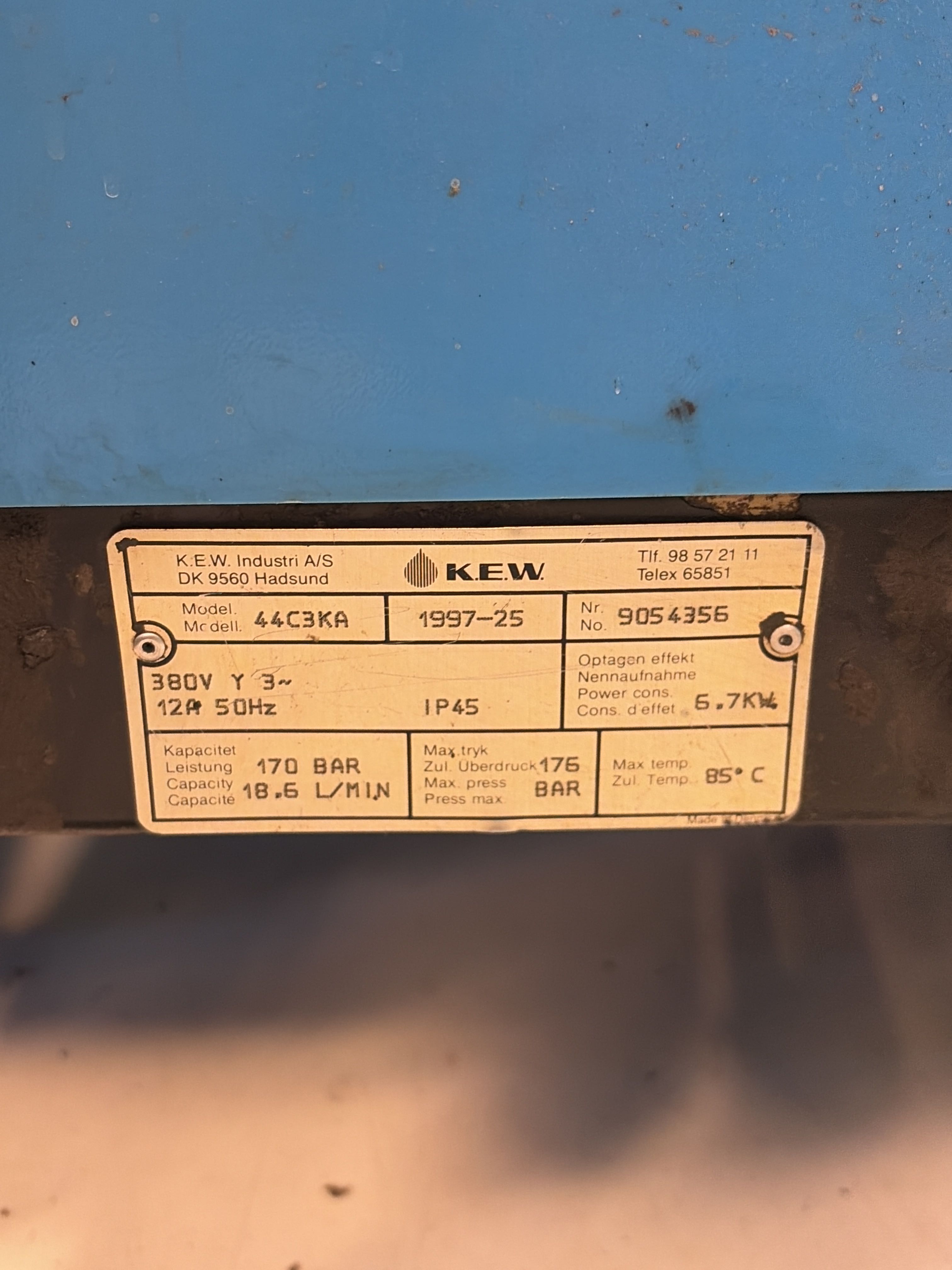 Professional three-phase hot water washer from Danish KEW Industri A/S , model 44C3KA . Intended for industrial cleaning in workshops, agriculture, vehicle washes and industry.