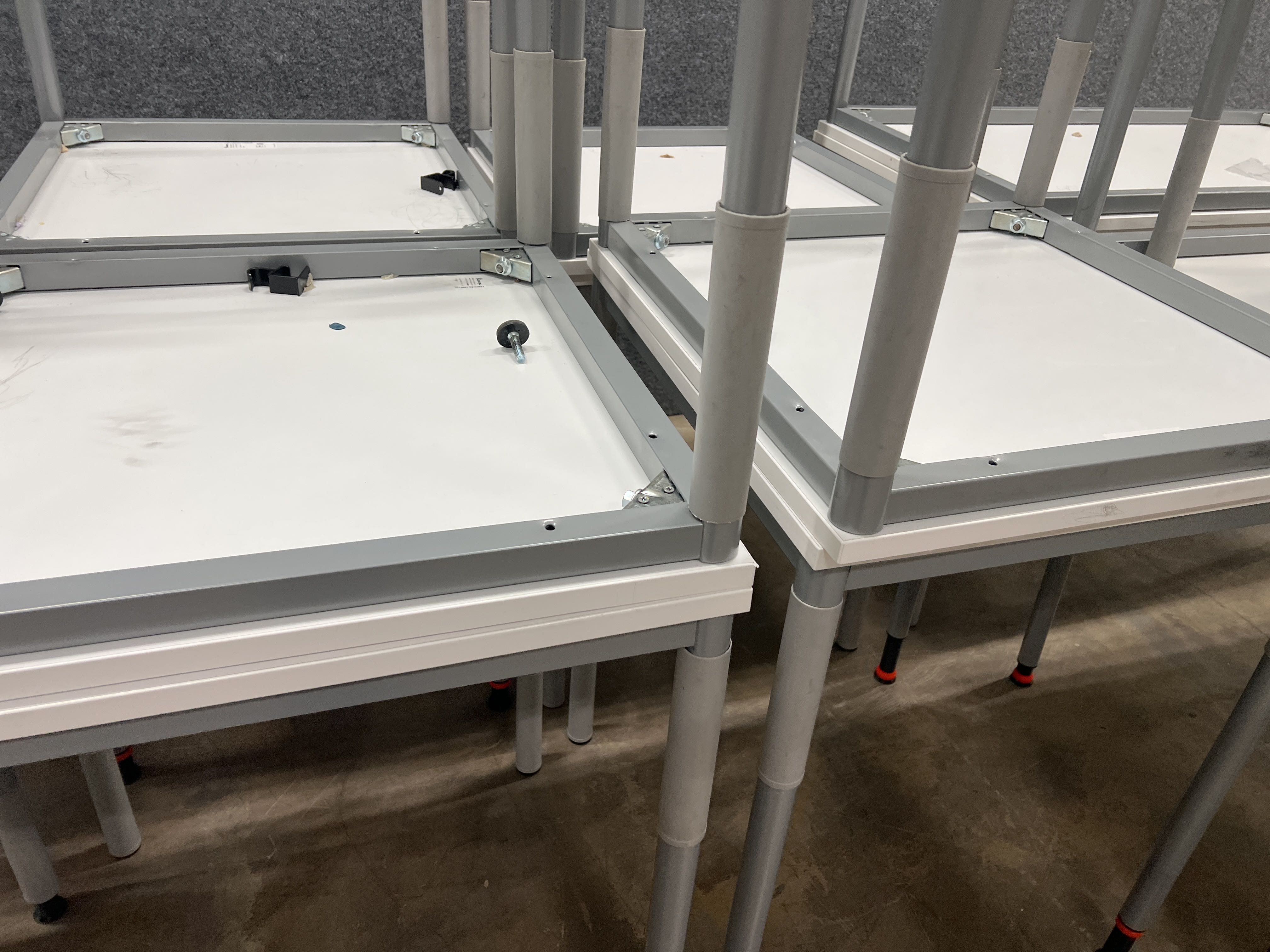 The tables have previously been used in school activities and scuffs/scratches/etchings/paint from pencils may occur to a lesser or greater extent. Damage from overturned tables may also occur.
