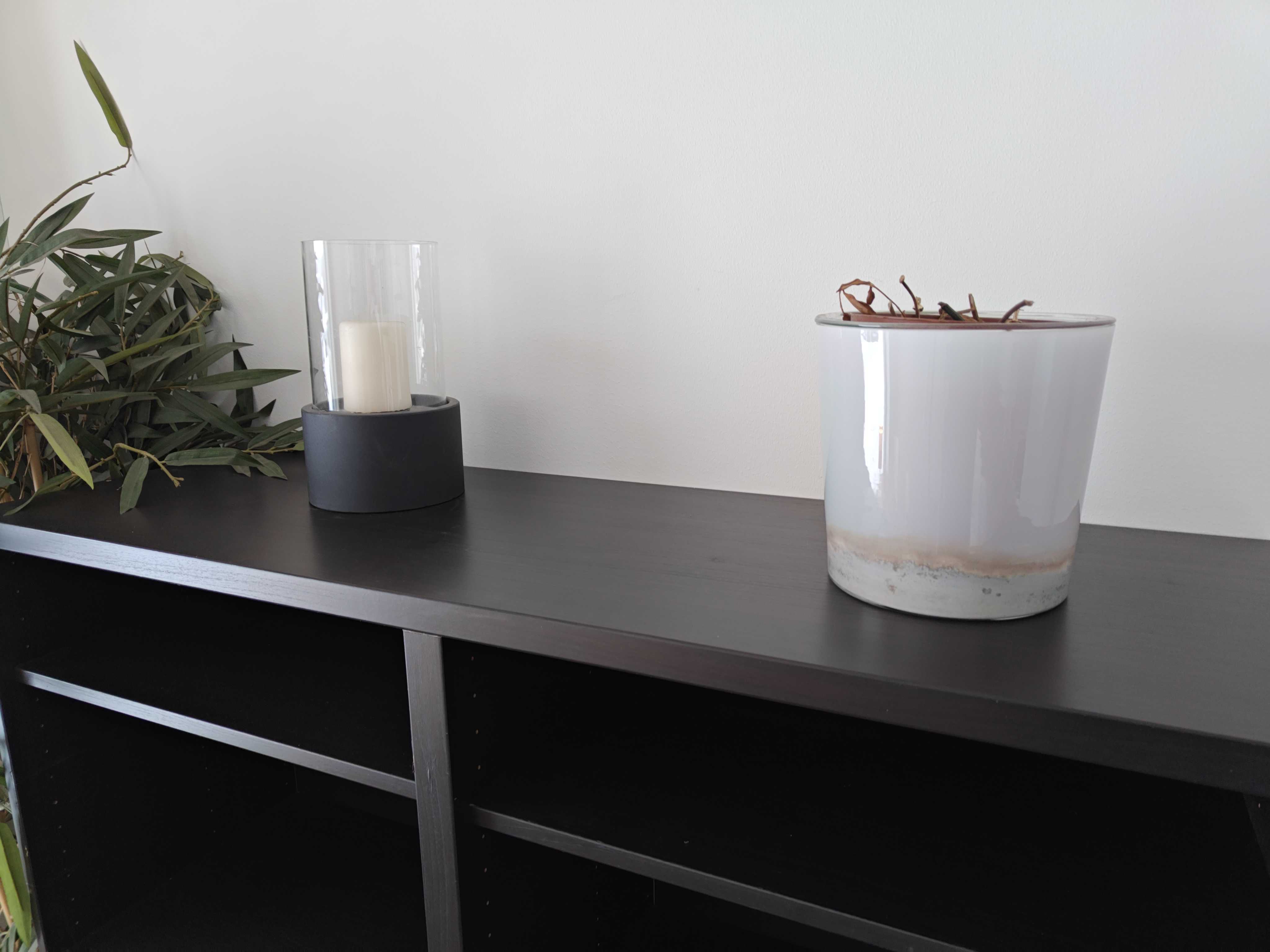 Small table lamp and candle lantern.