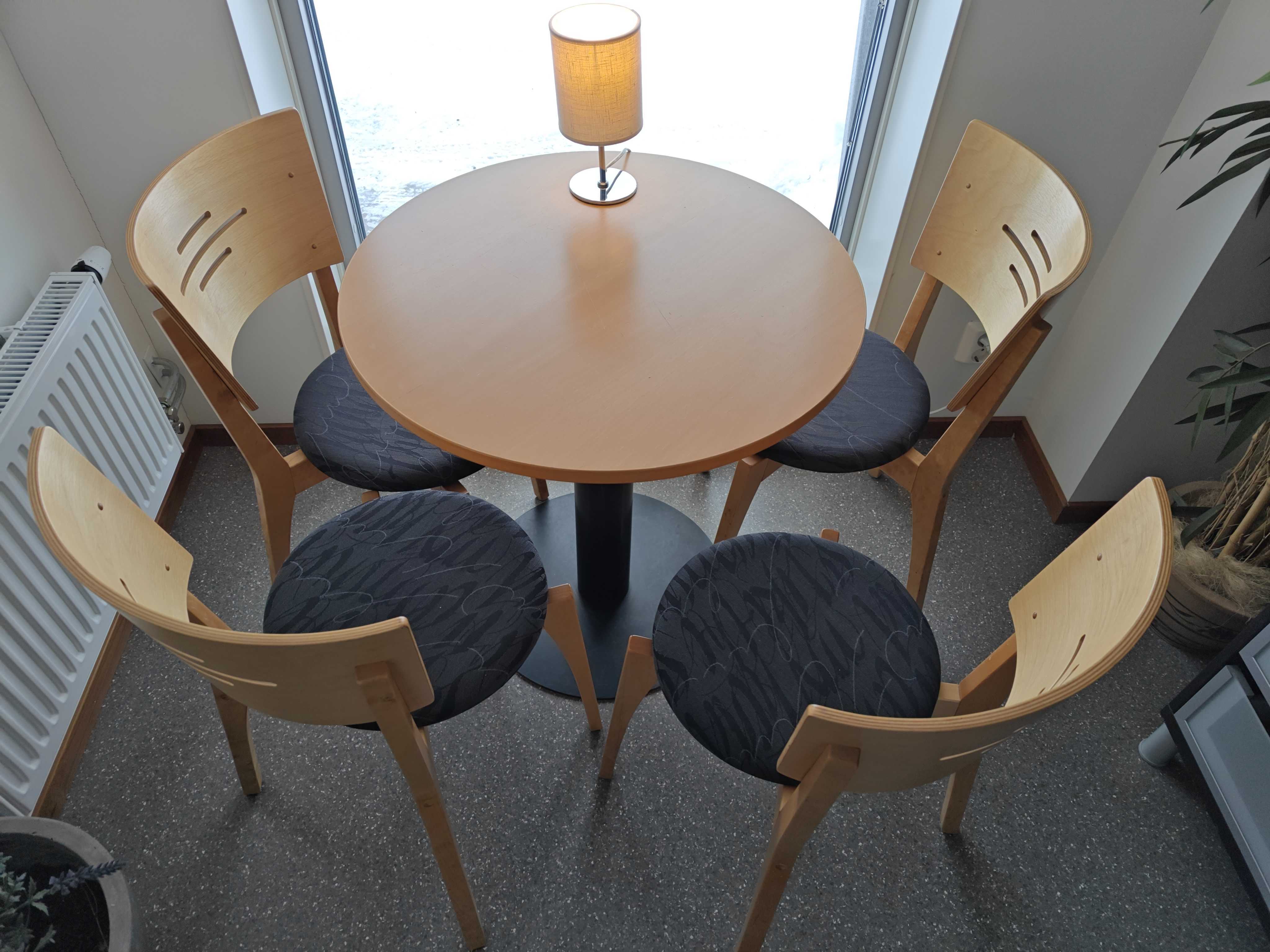 A round kitchen table, diameter 70cm, and 4 matching chairs.