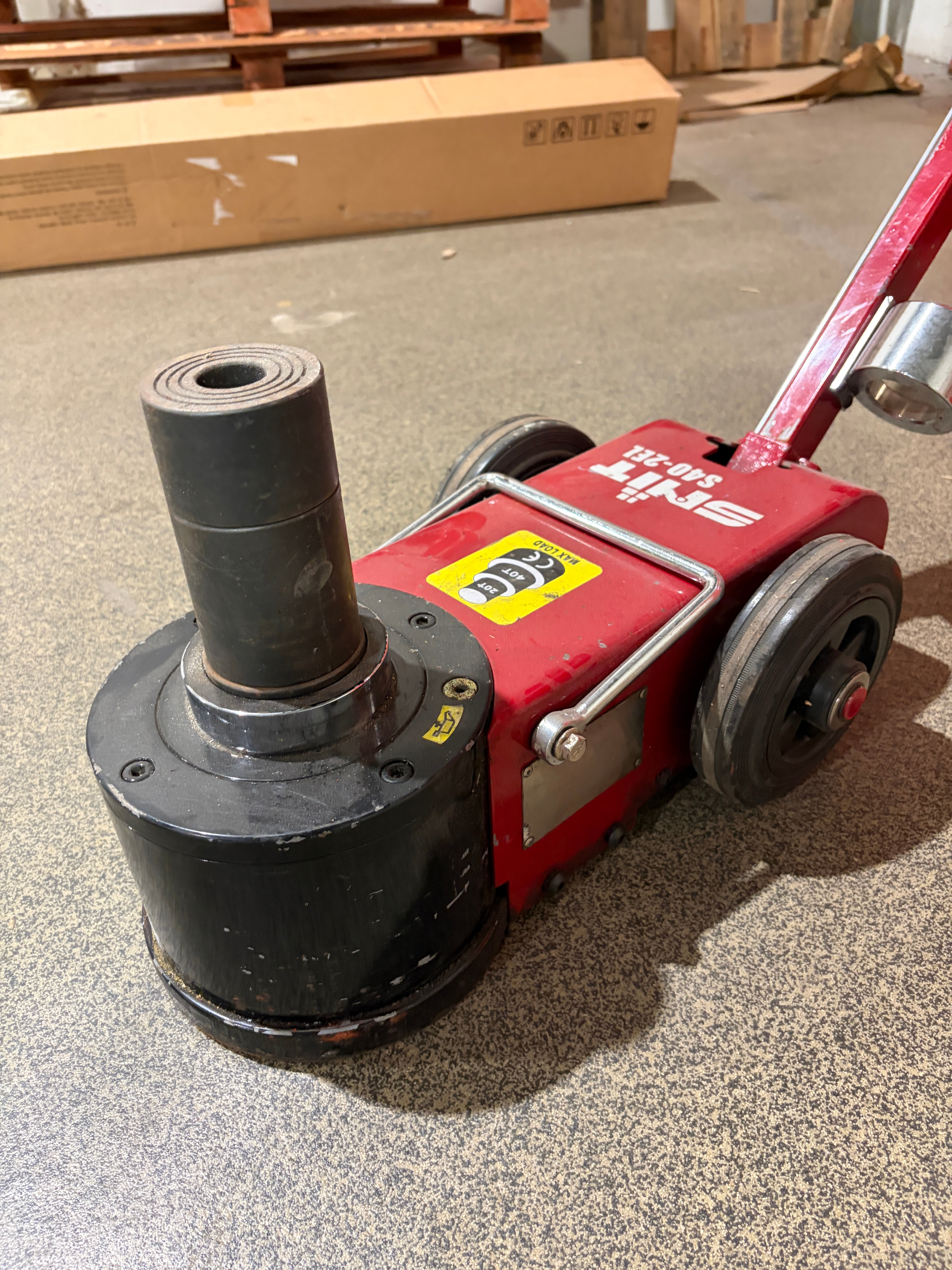 The auction includes: Pneumatic jacks in various capacities
