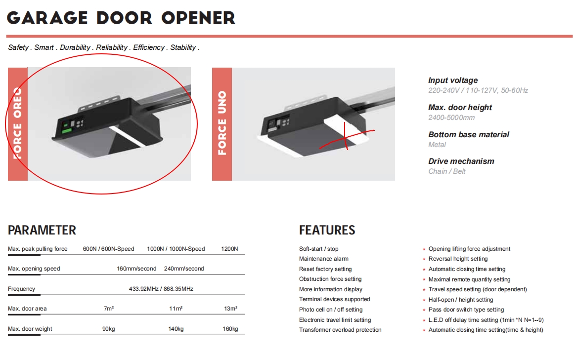 - Max. door height 2400-5000mm