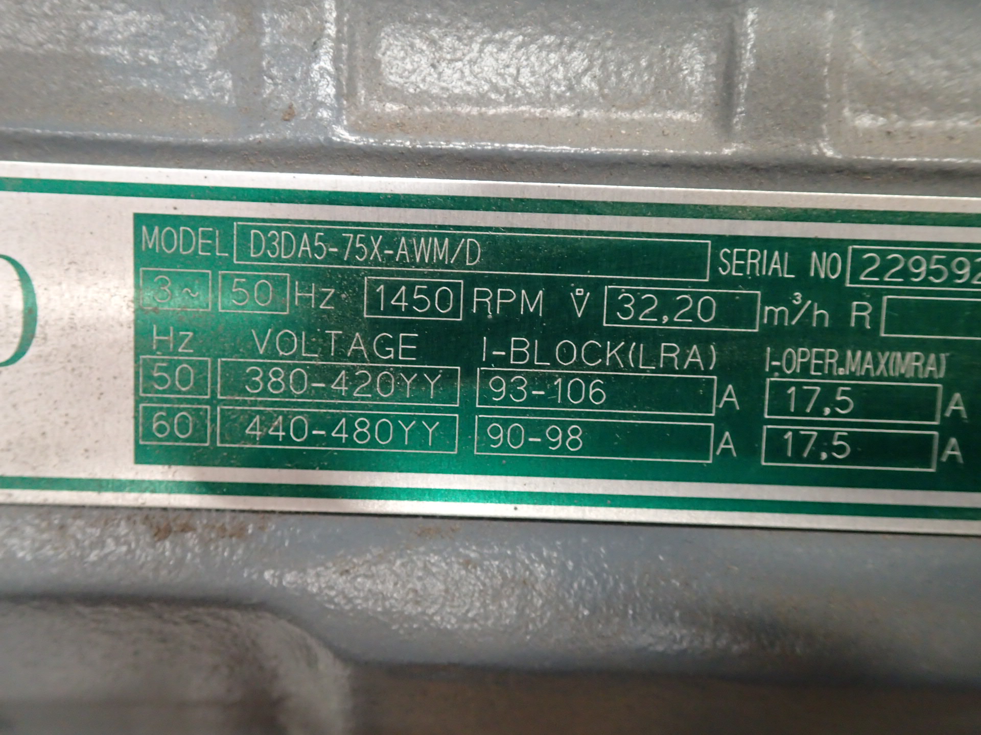 Displacement @ 50 Hz, cu.m/h 32.2