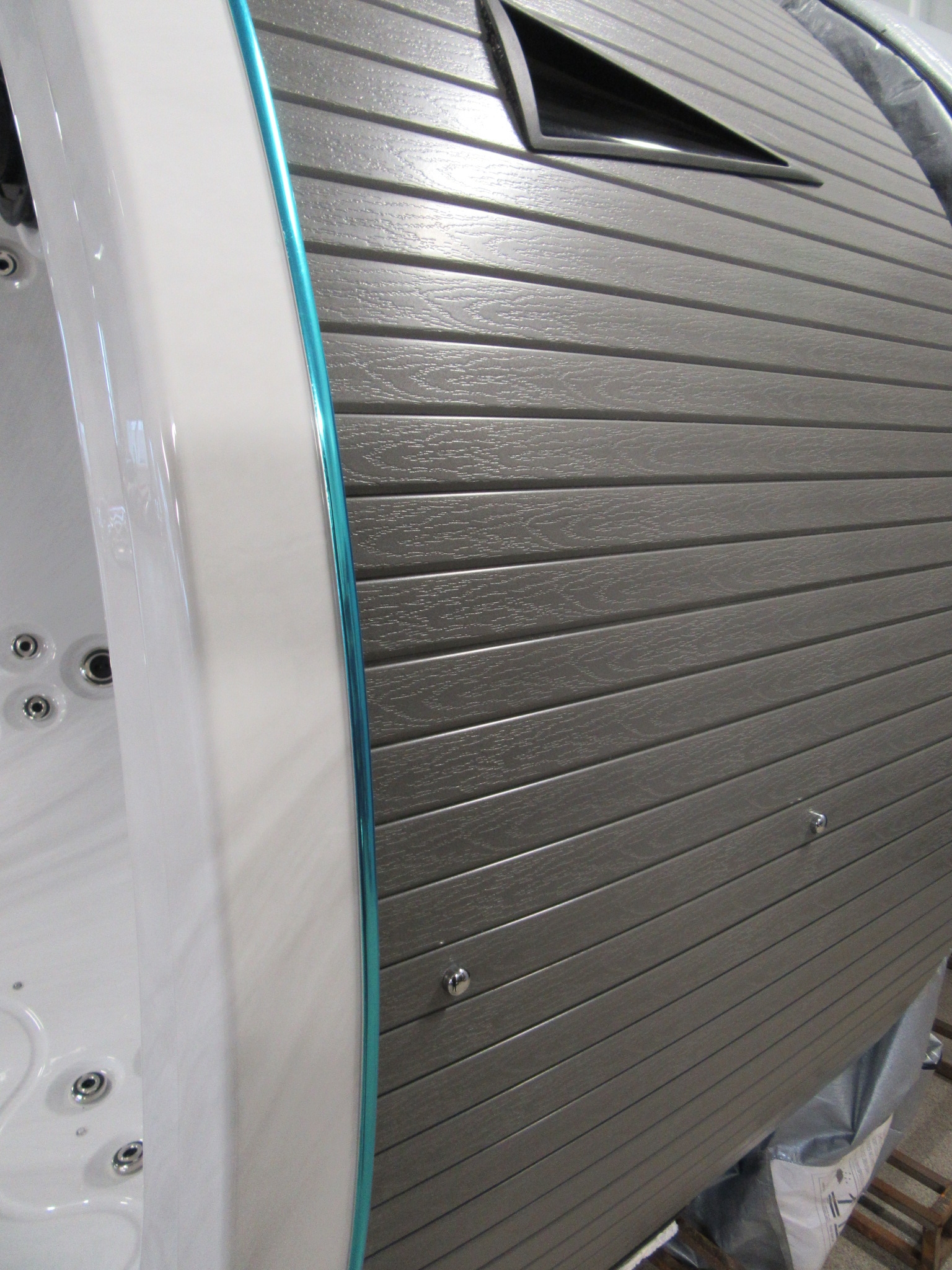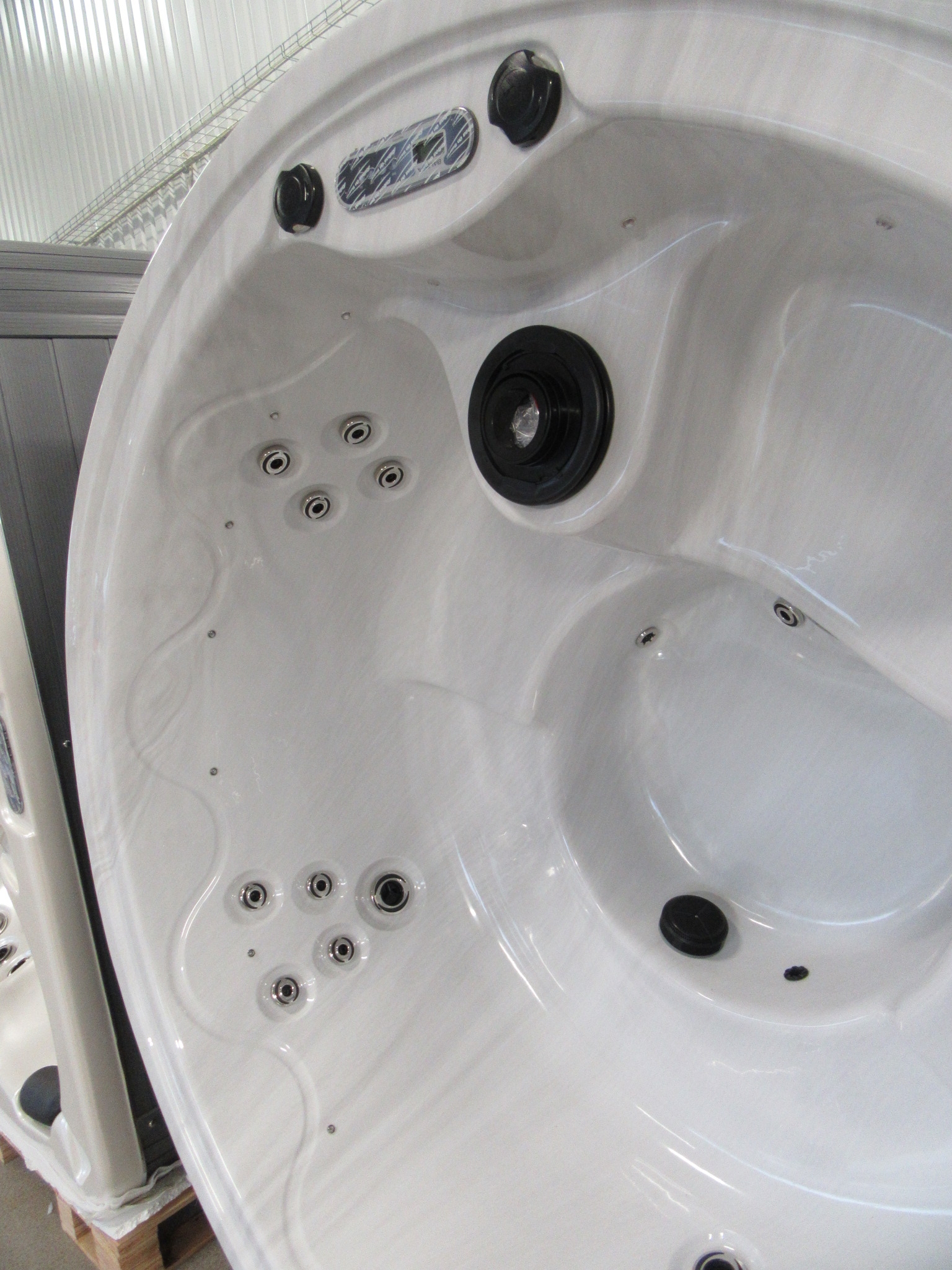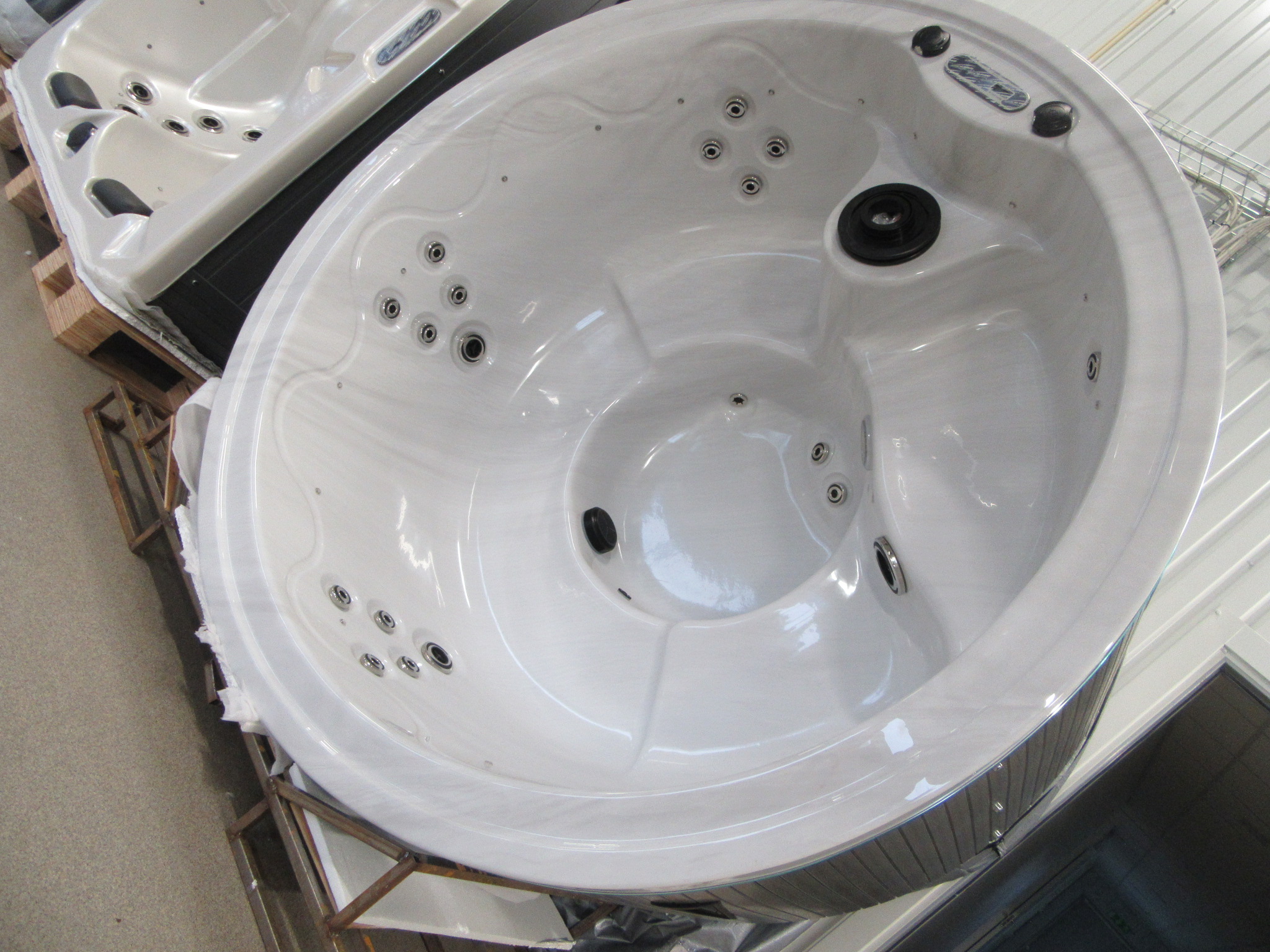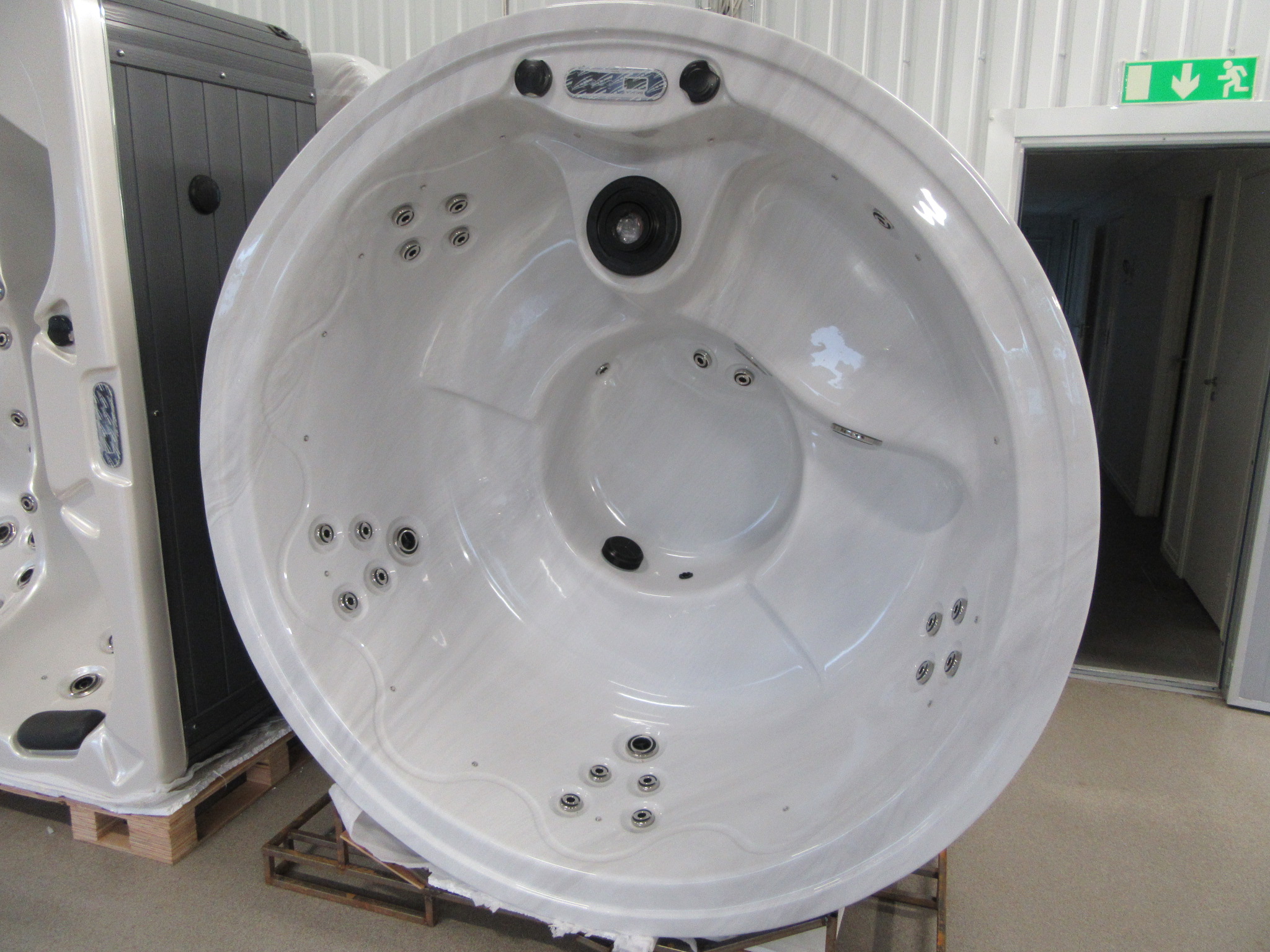 Fint runt spabad/bubbelpool med plats för minst fyra vuxna.