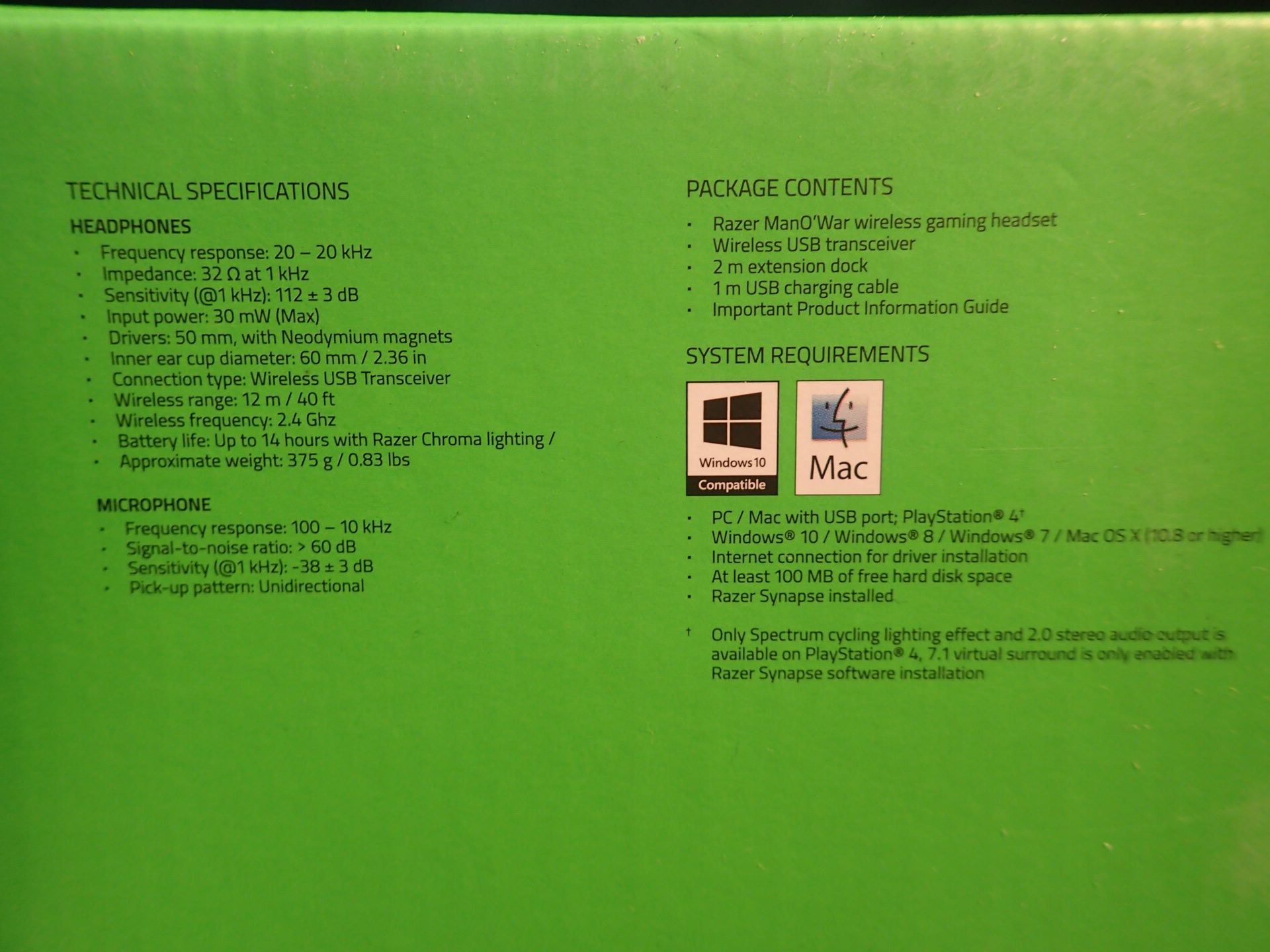 Razer Wireless Gaming Headset with virtual surround sound. Razer ManO'War Delivers immersive, Wireless HiFi sound for your PC. Experience the advantage with virtual 7.1 surround sound for precise sound positioning.