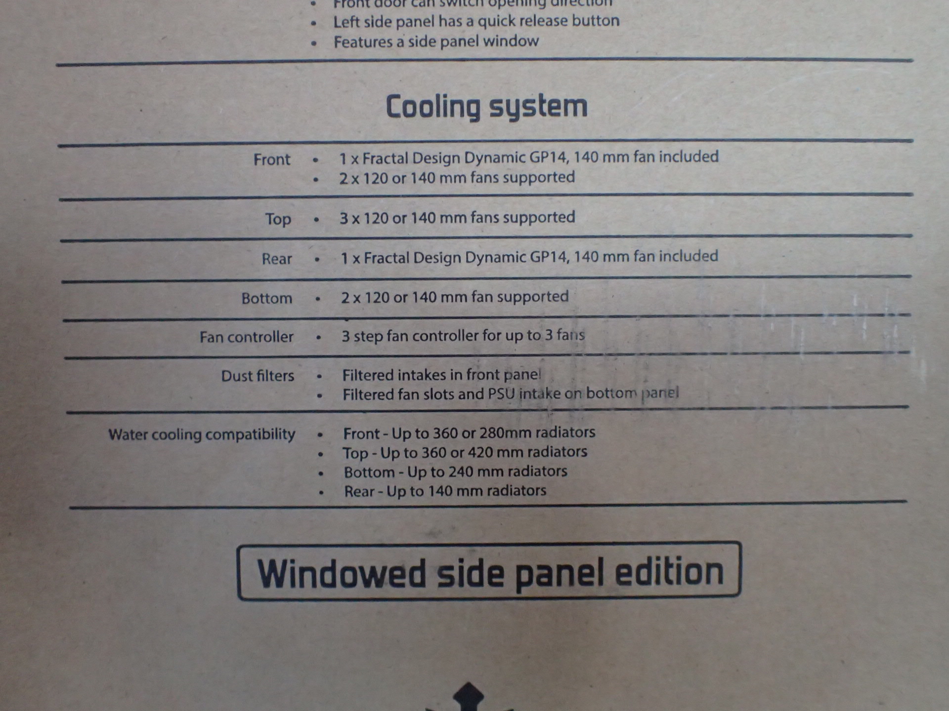 Side fans diameters supported 120, 140 mm