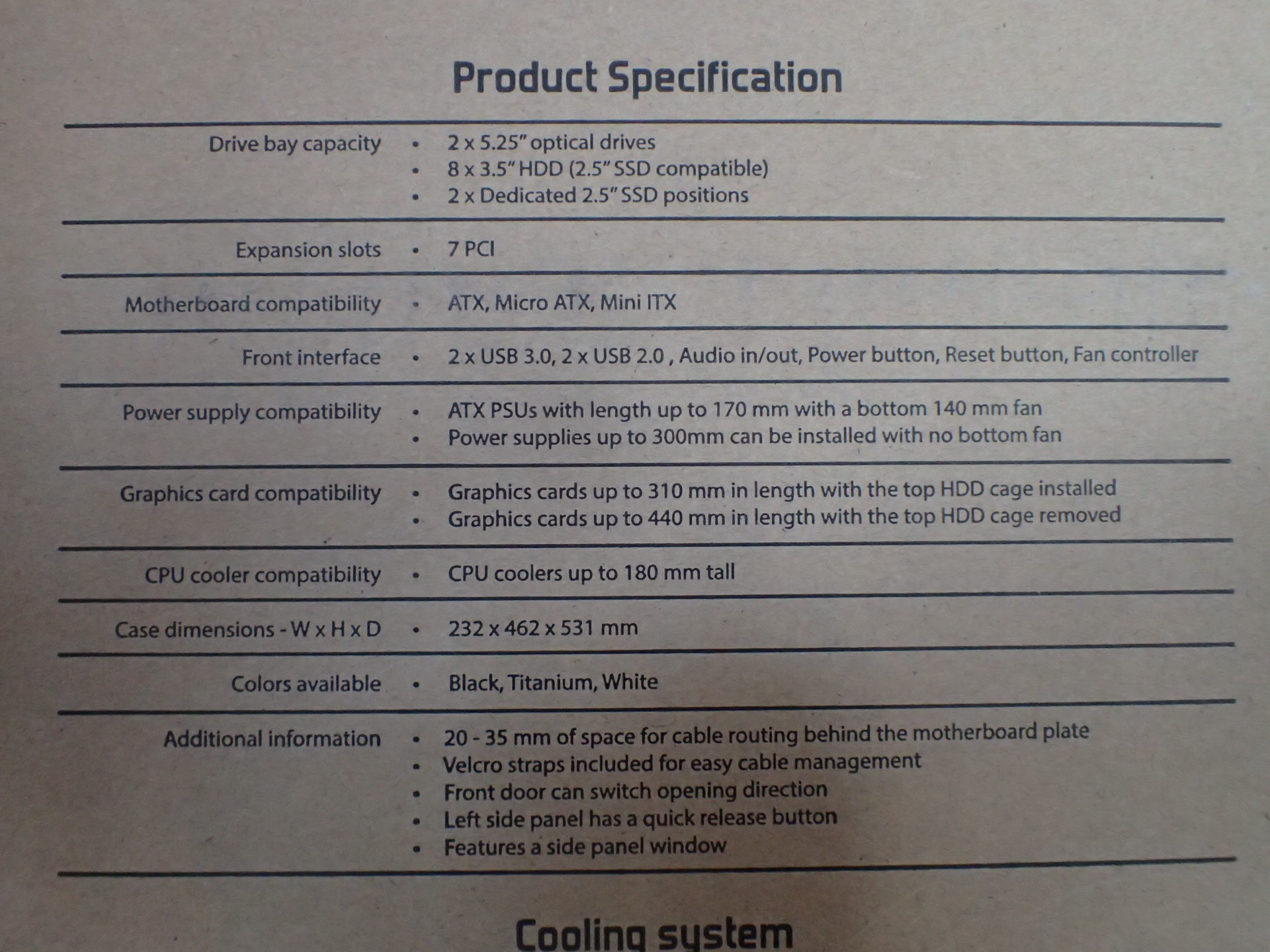 Rear fan diameters are supported 120, 140 mm