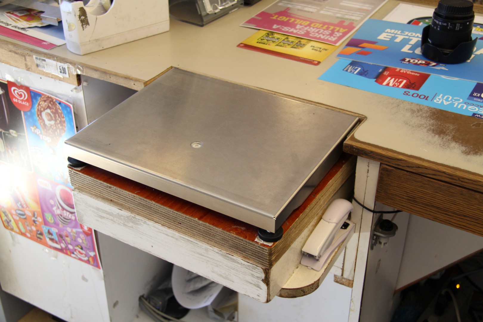 1 st PC baserad kassaapparat från Olivetti med kunddisplay, streckkodsläsare, våg och kortläsare.