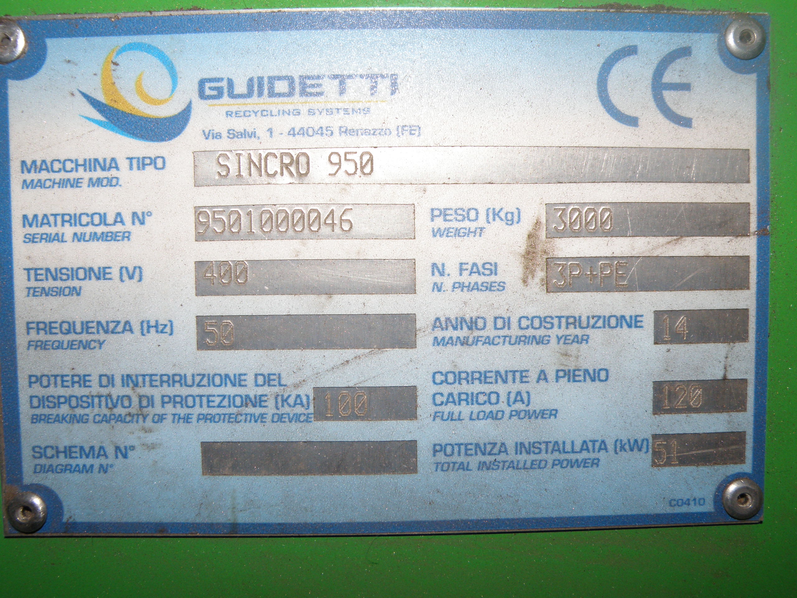 Guidetti Sincro 950 cable crusher, used only for one year