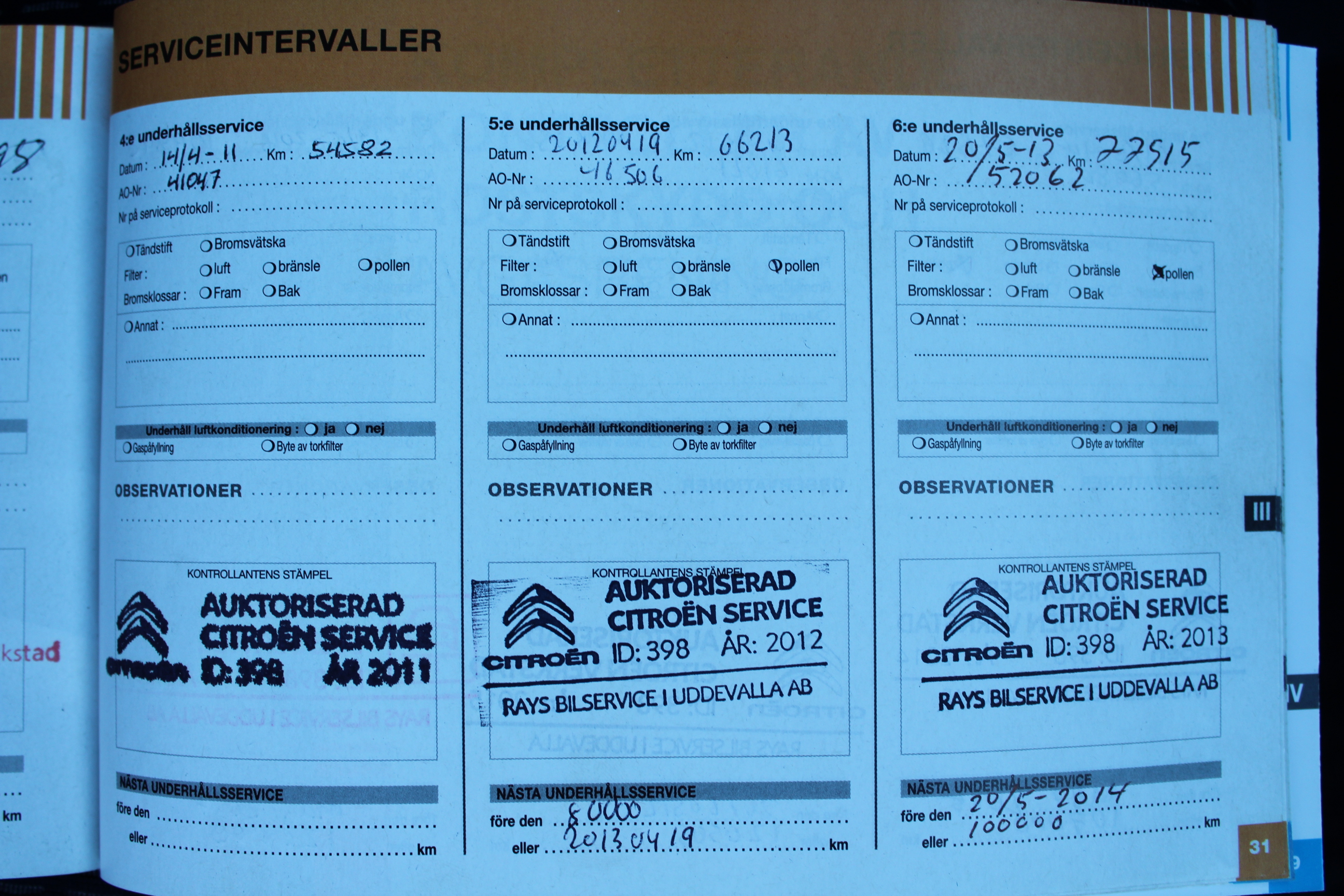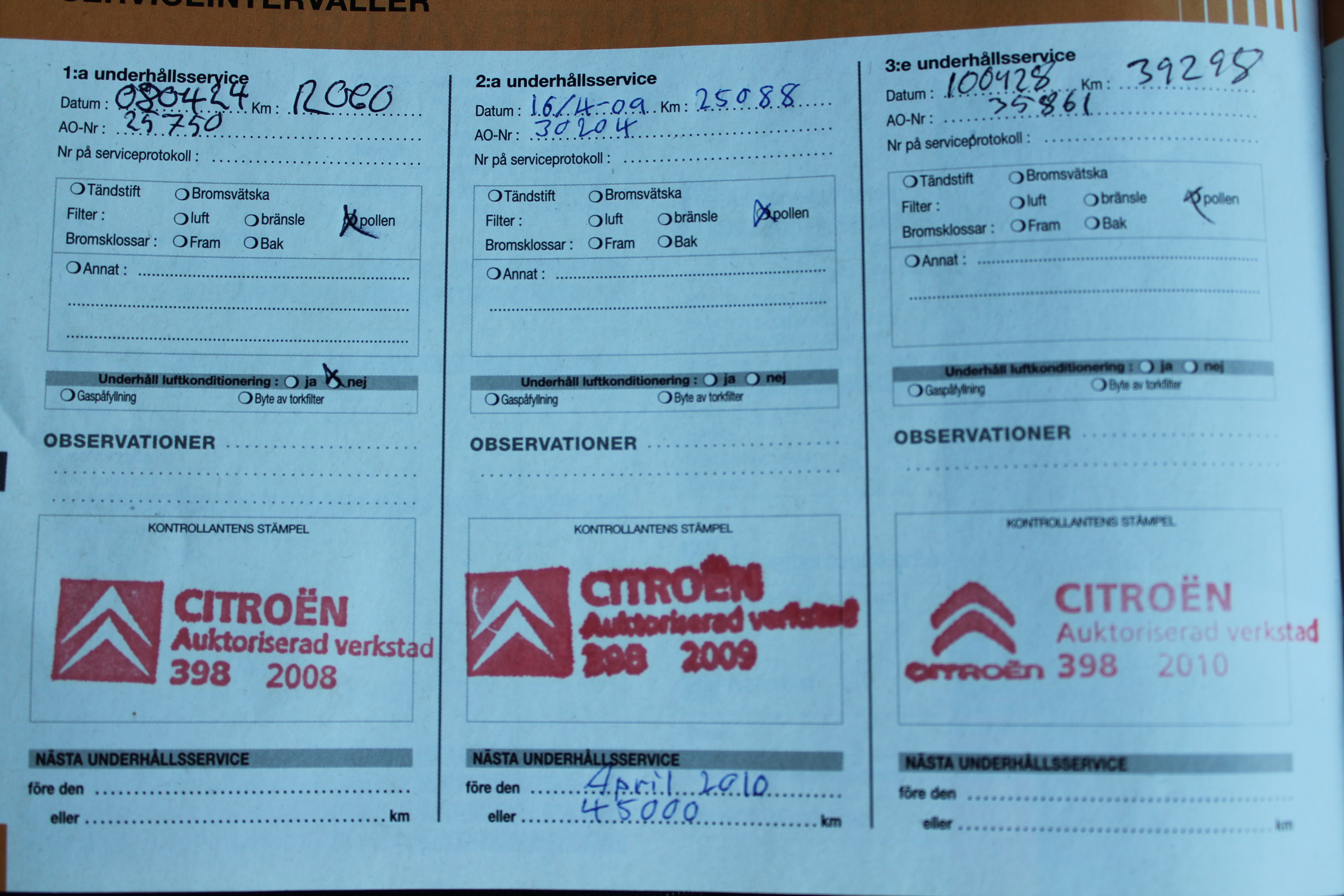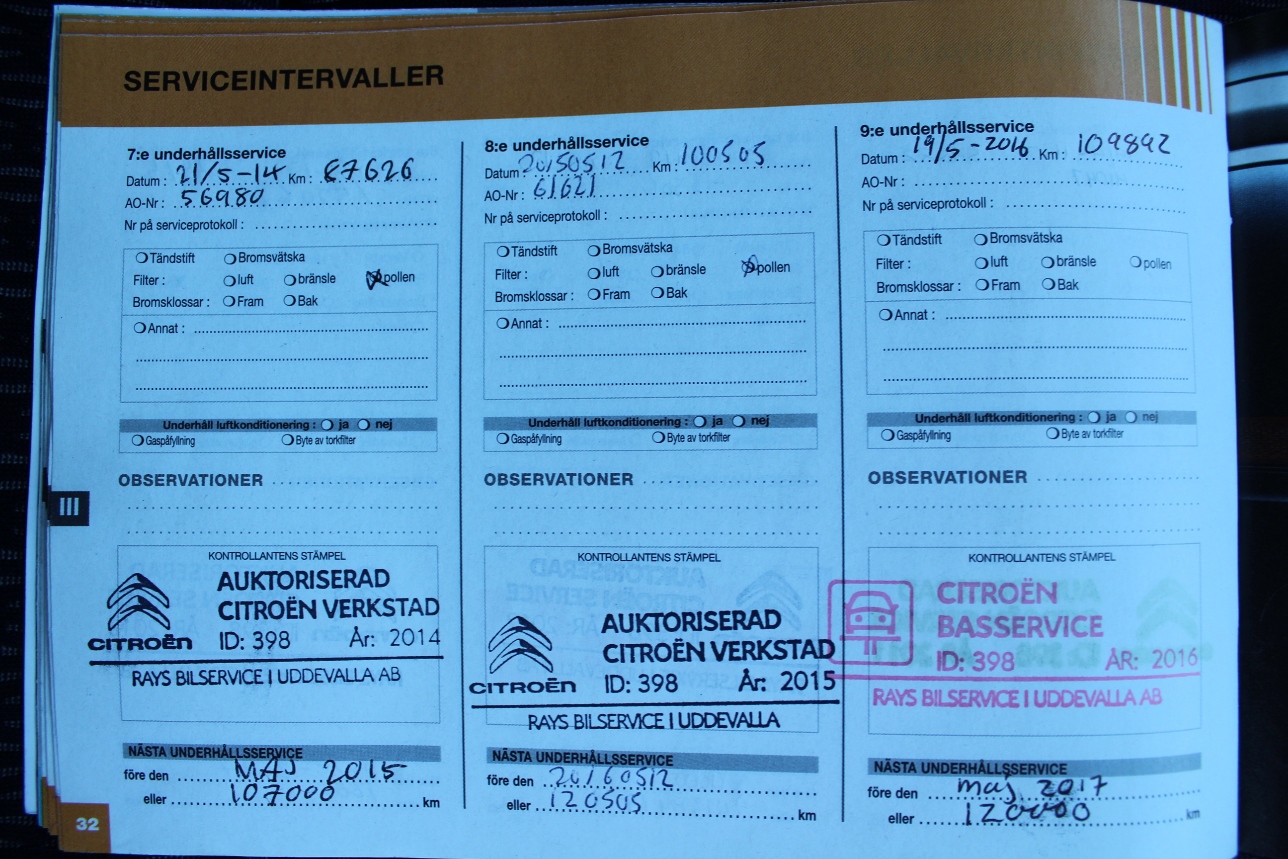 komplett ifylld Servicebok