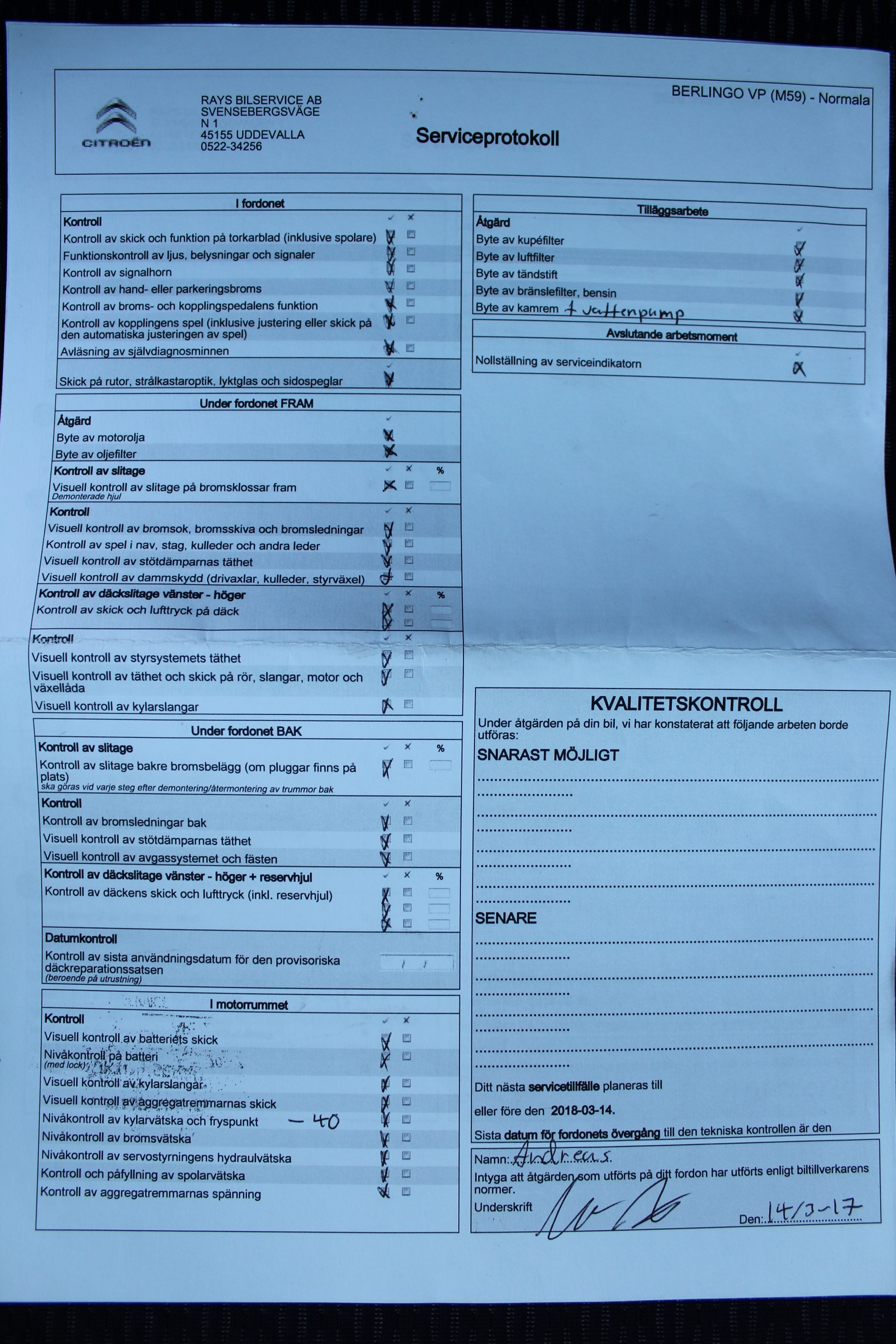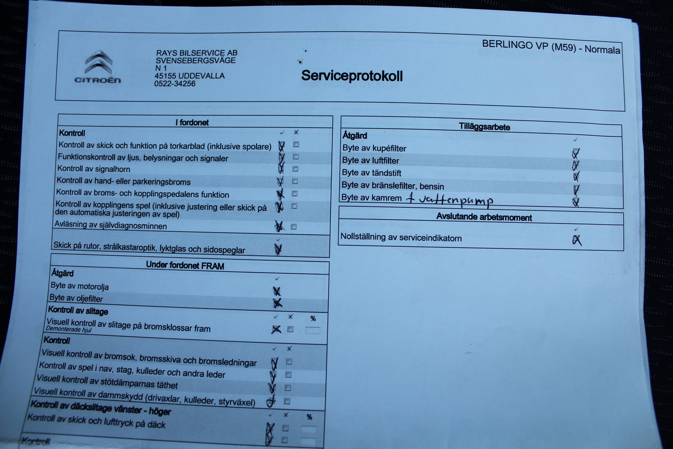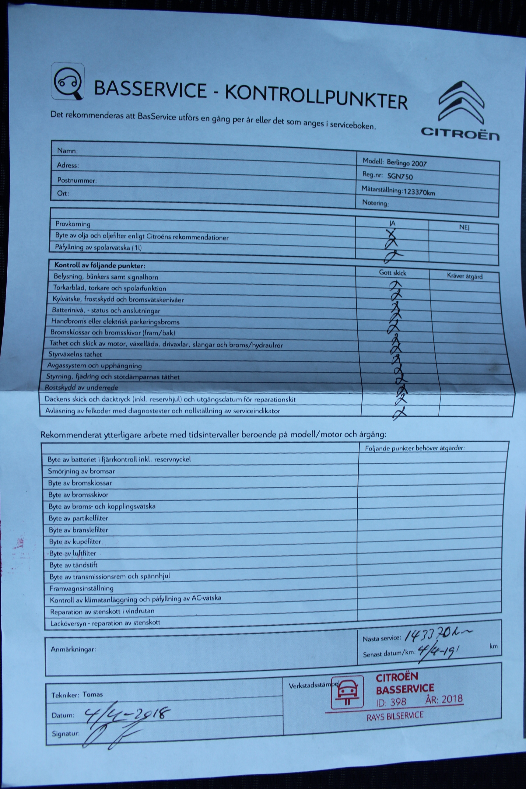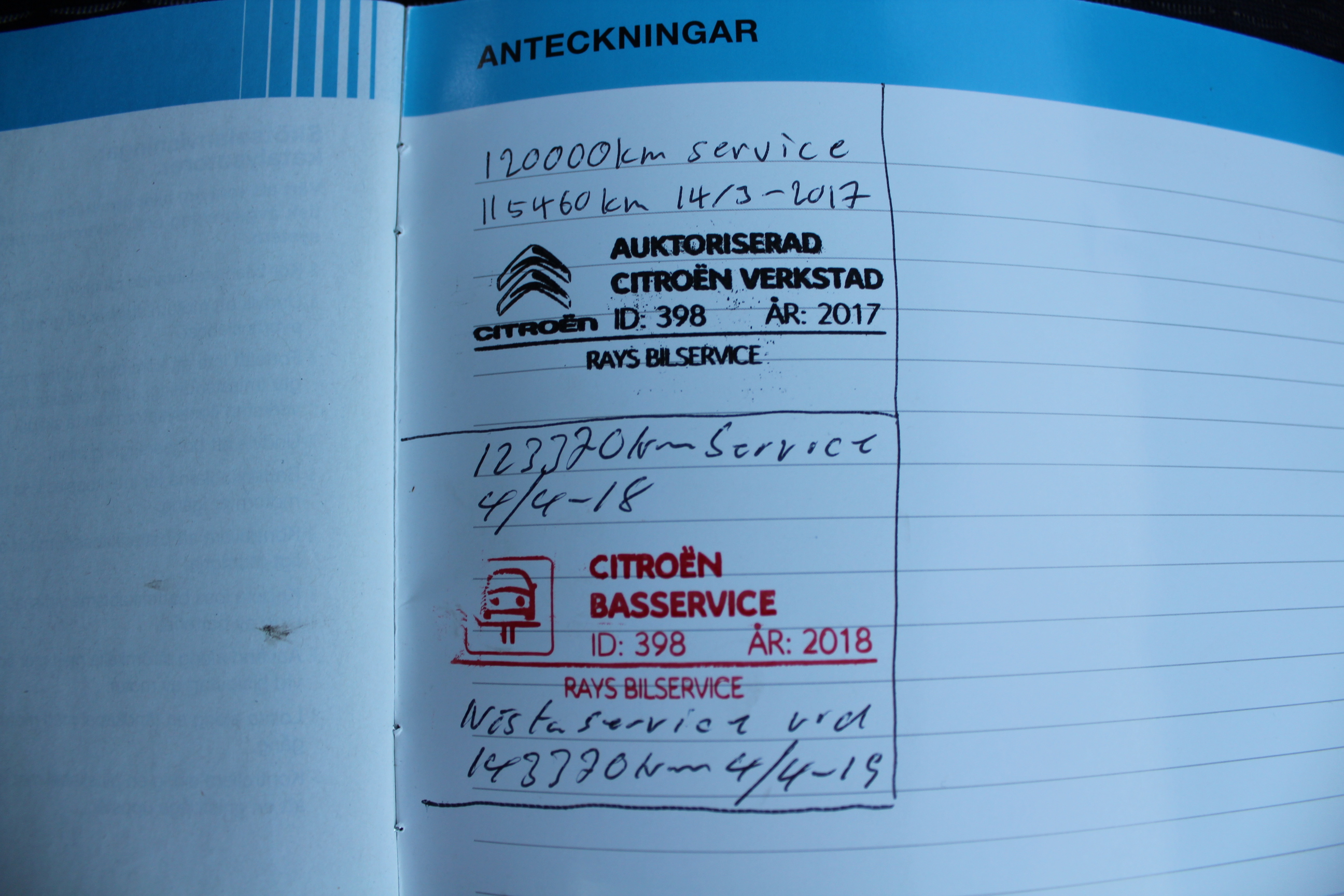 komplett ifylld Servicebok