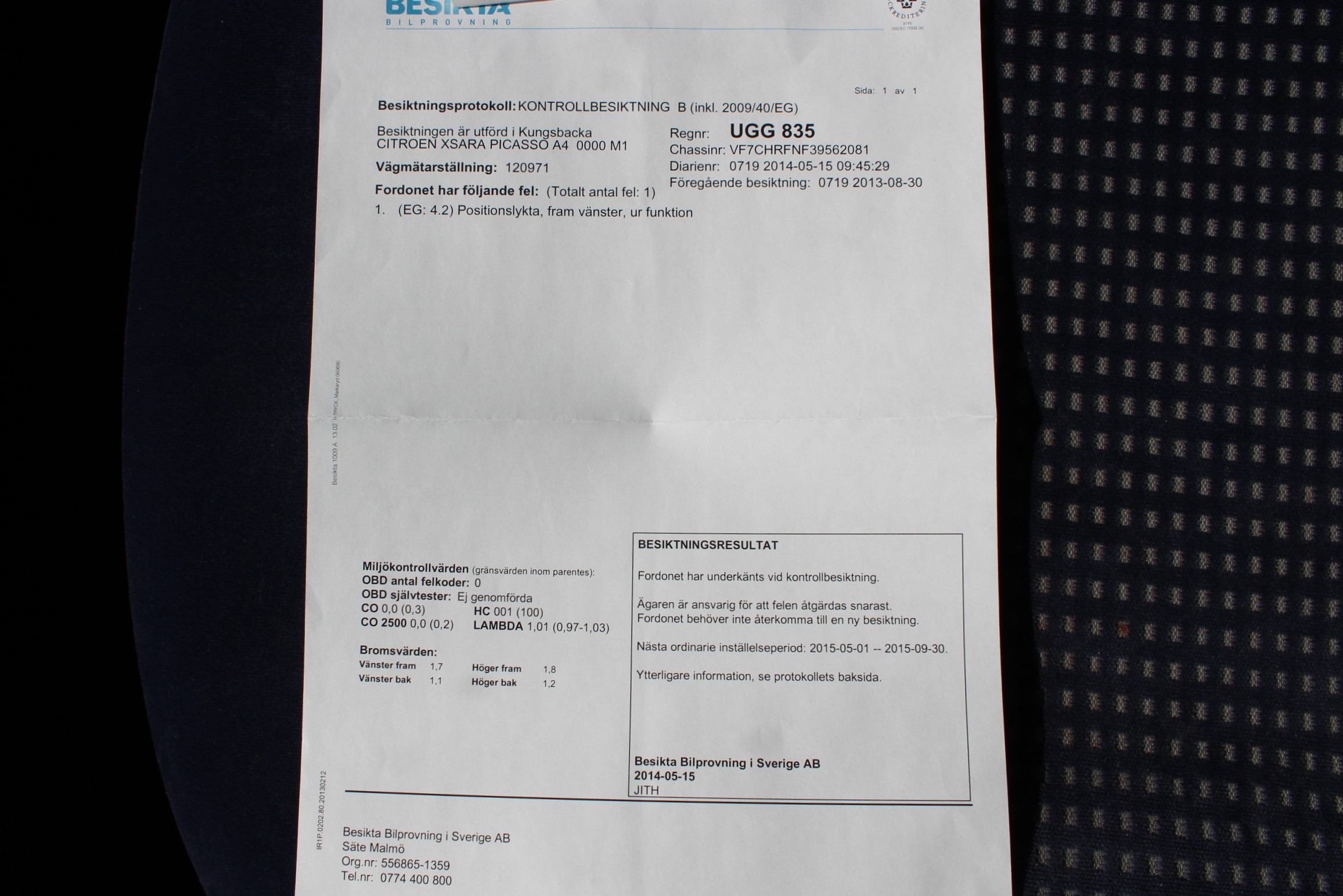 Senaste besiktning 2017-07-10
