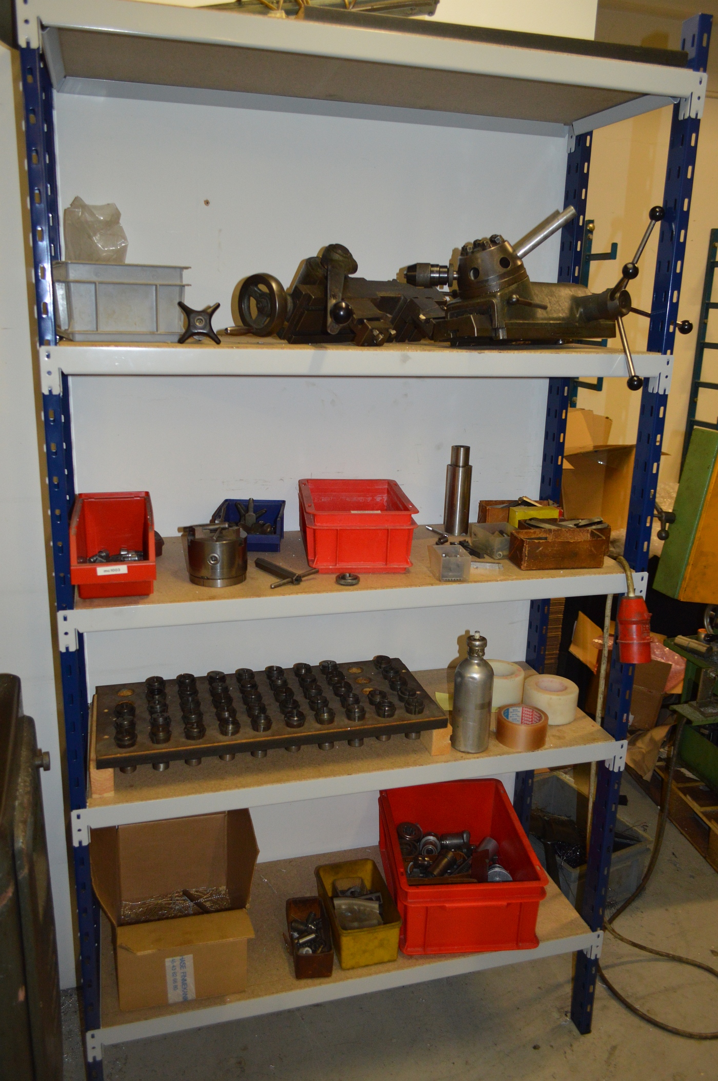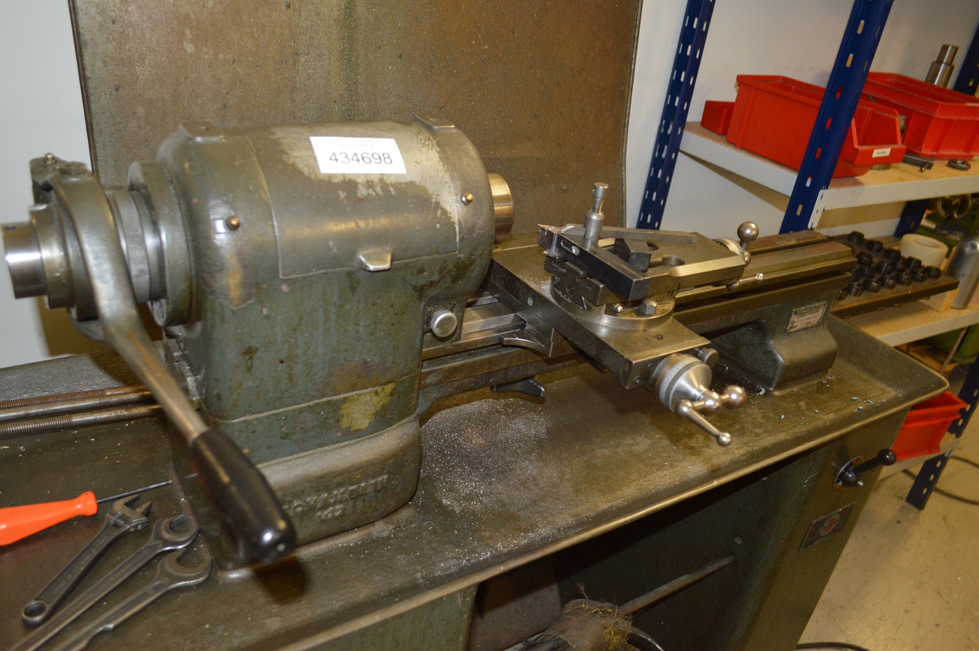 Schaublin, type 102-80. SN: 85259. Year 1955. A steel rack with various parts as illustrated is included.