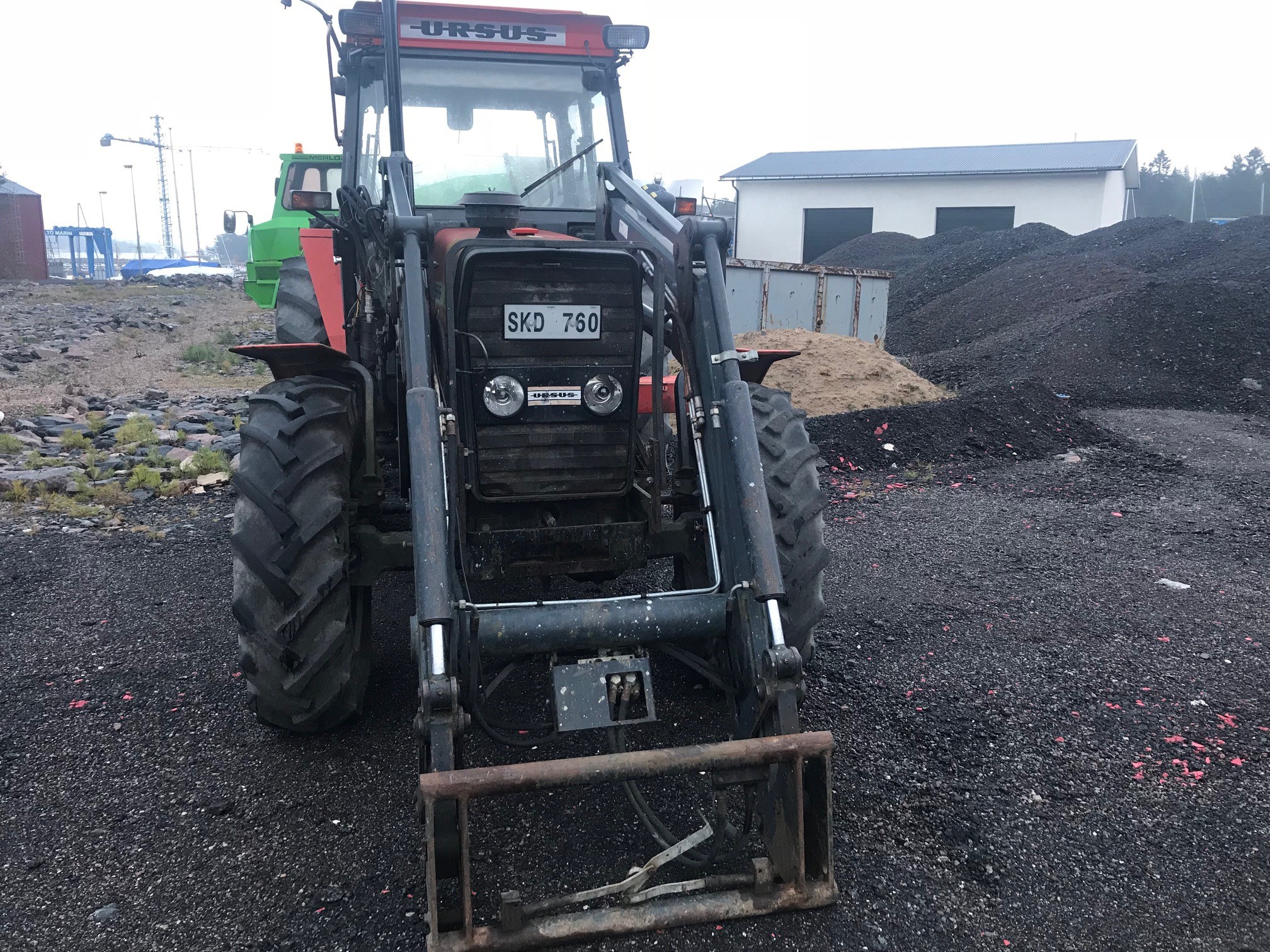 Ursus 5314 with trima loader, including bucket and forks.