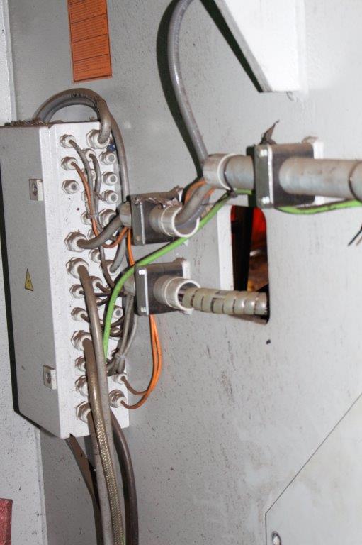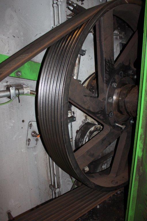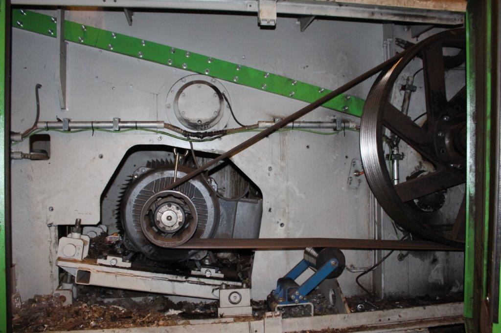 Conveyor belts under machine and rising conveyor belts included. A set of new knives is included.