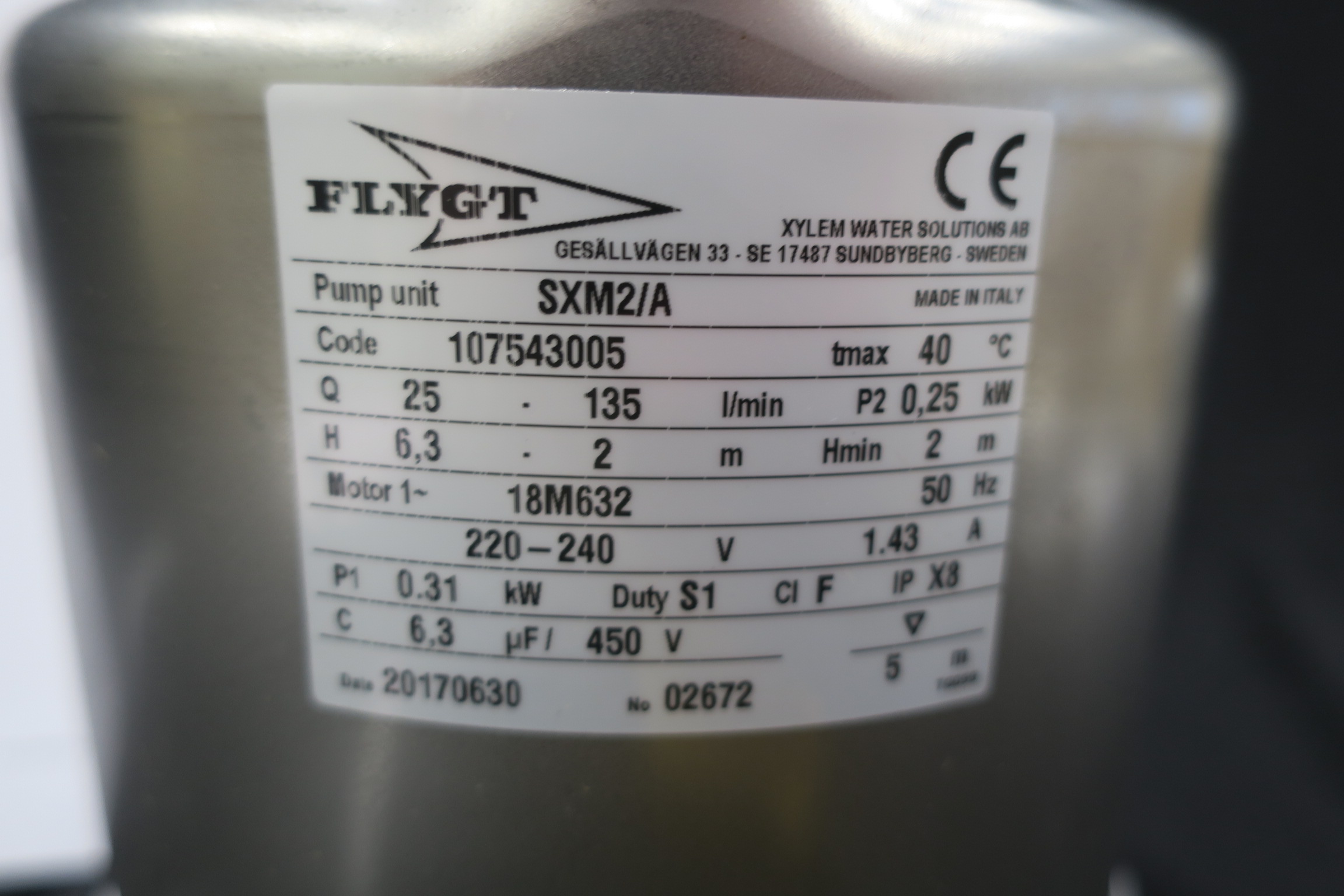 Material: stainless steel casing, pump casing and wheels by Noryl.