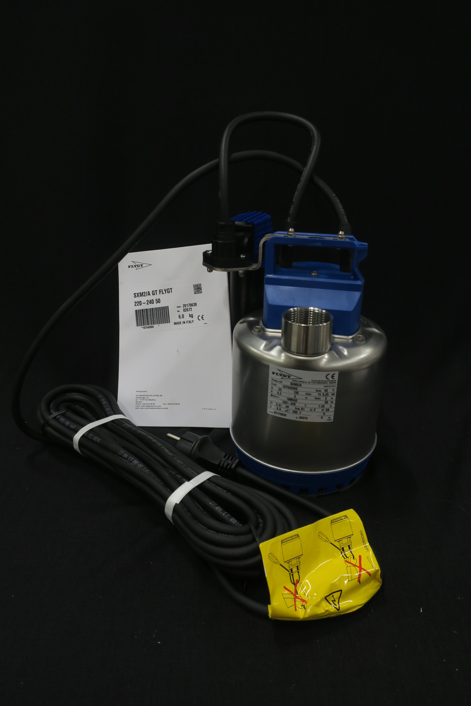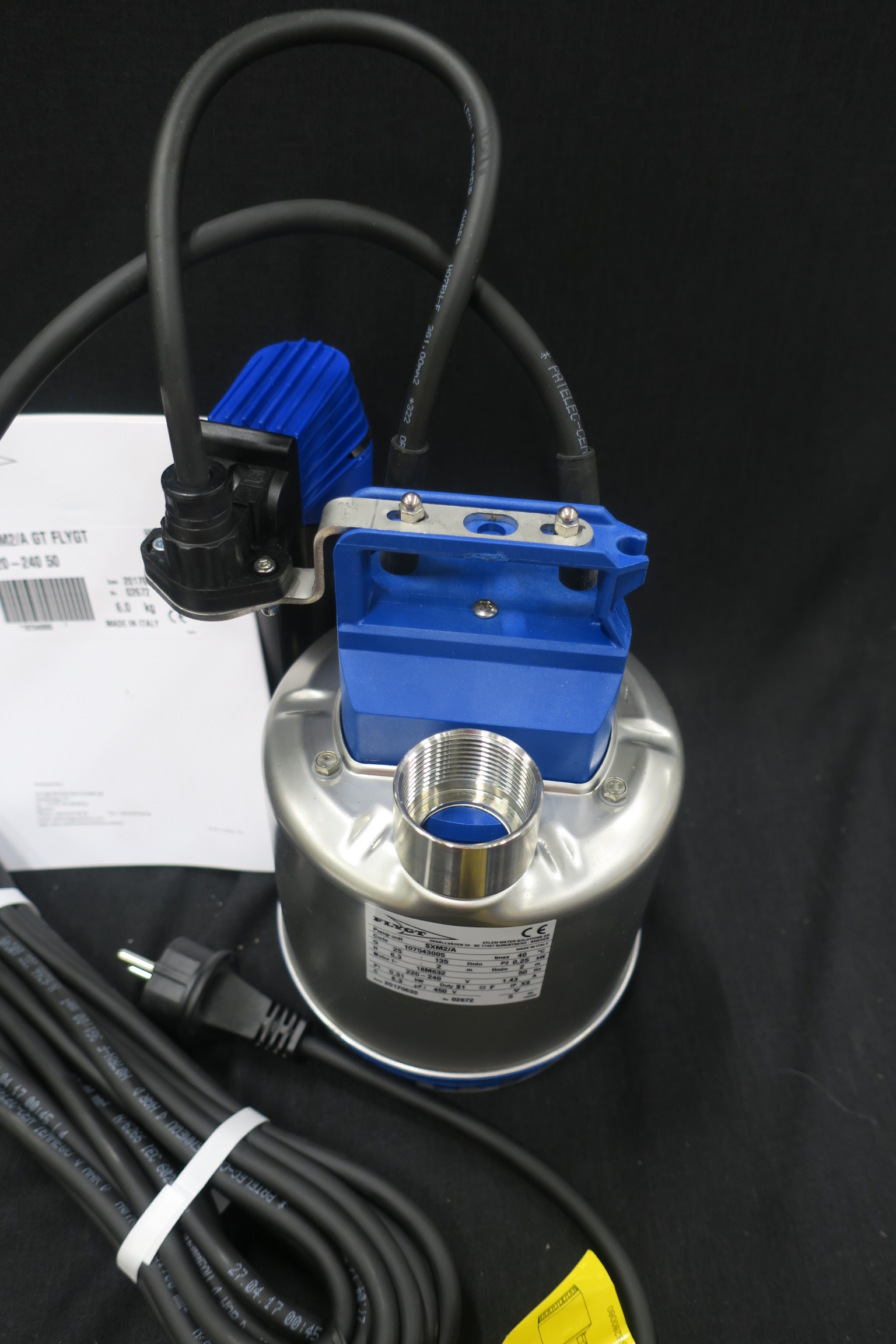 Submersible groundwater pump for drainage of basement and garage.