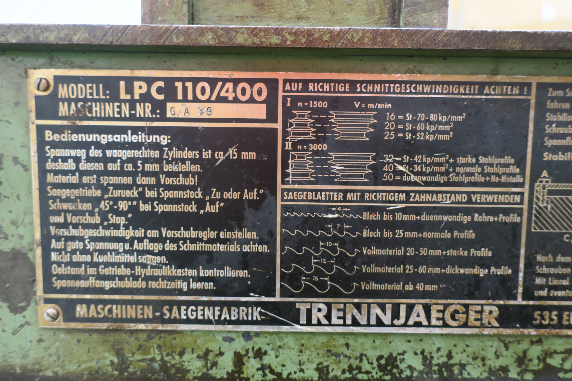 Cold saw Trennjaeger LPC 110/400
