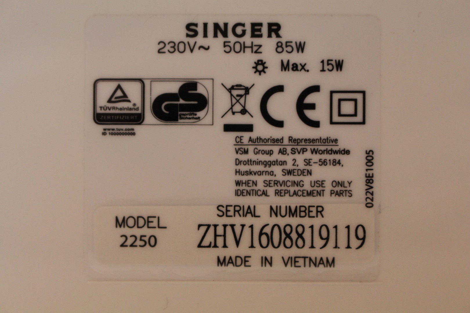 Singer Sewing Machine, Model Tradition 2250.