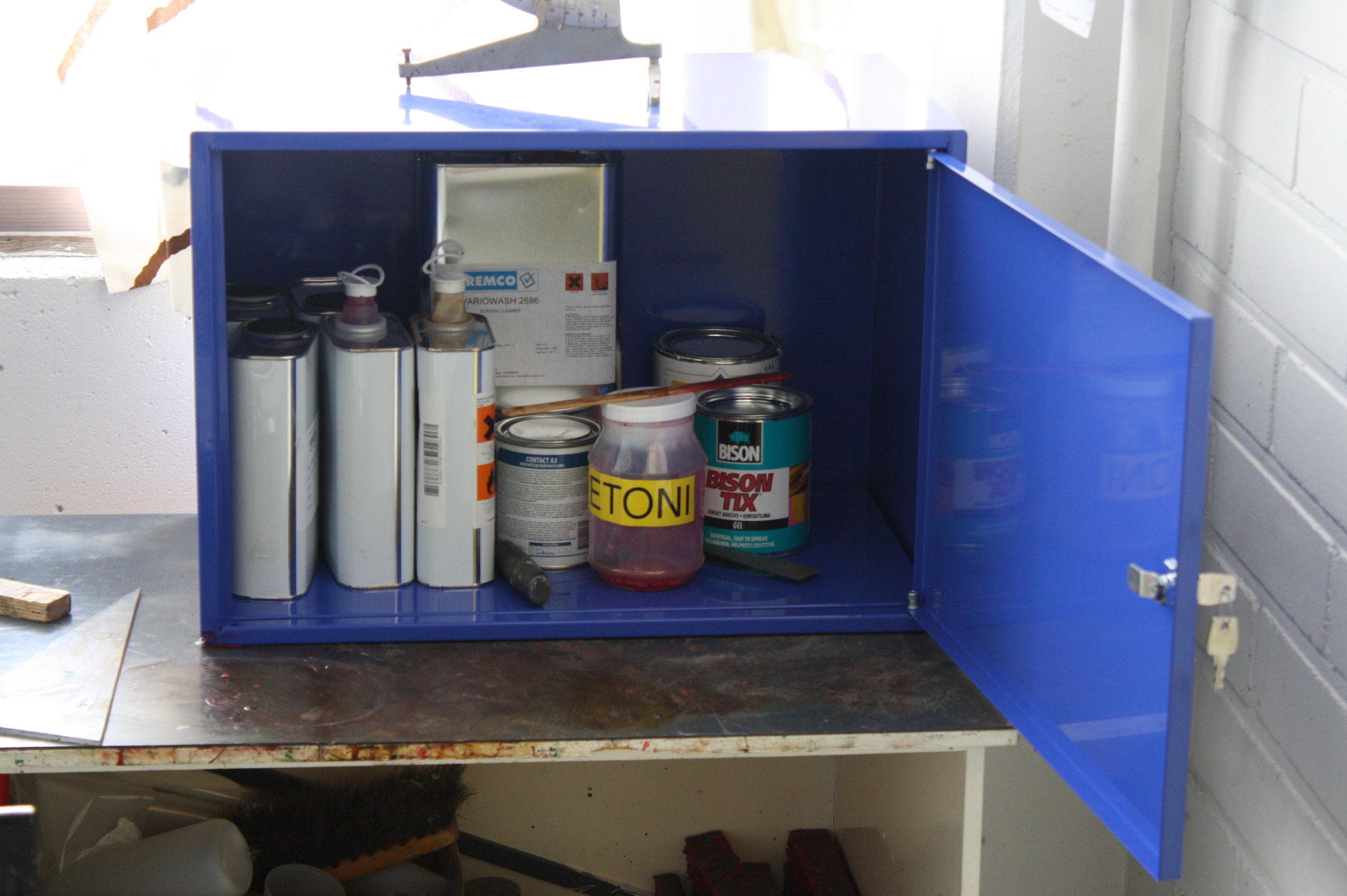 Includes the screen stretching machine, leftover silks (as seen in images), hot air blower, pressure gauge and all the leftover chemicals in the cabinet