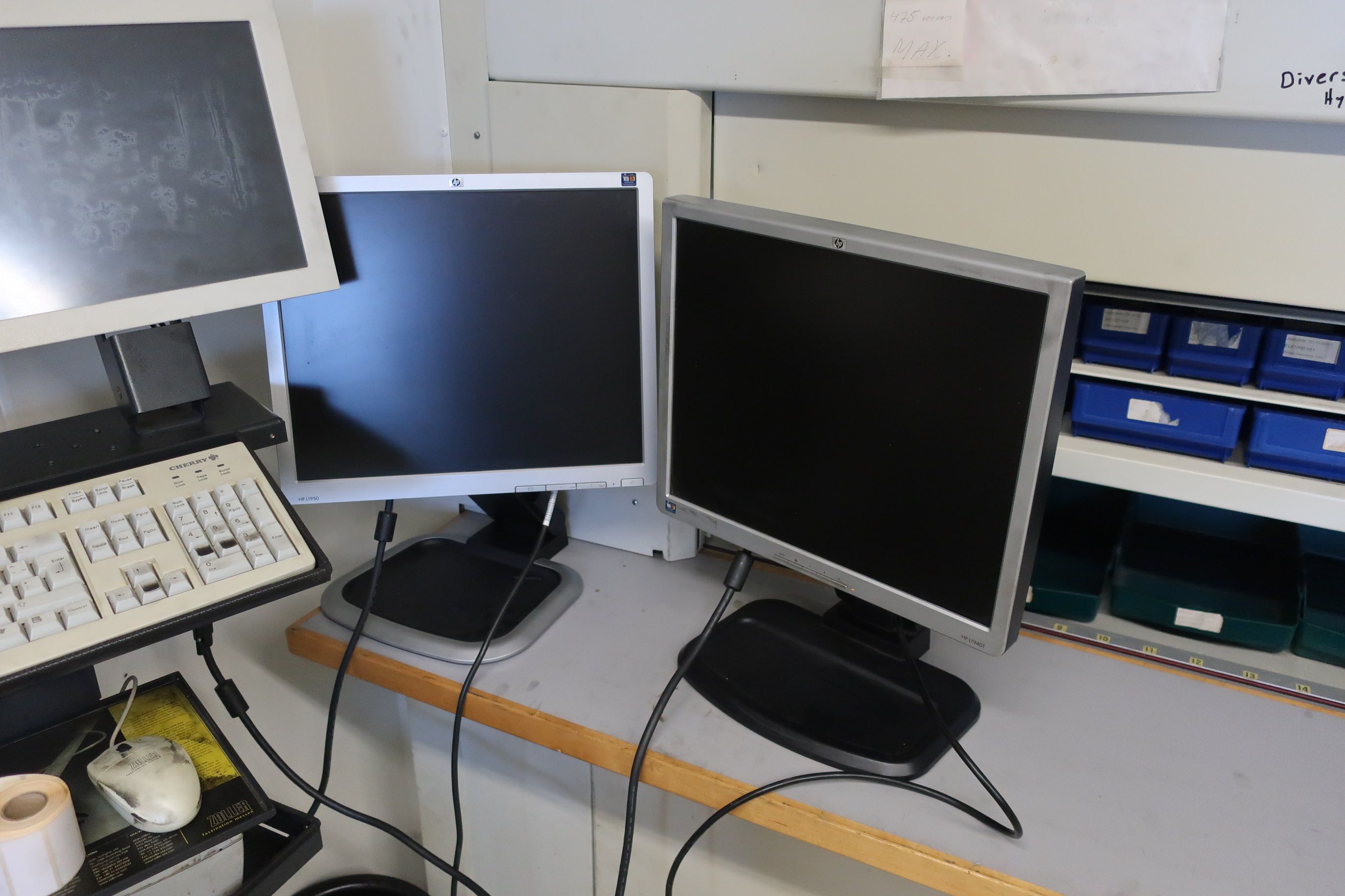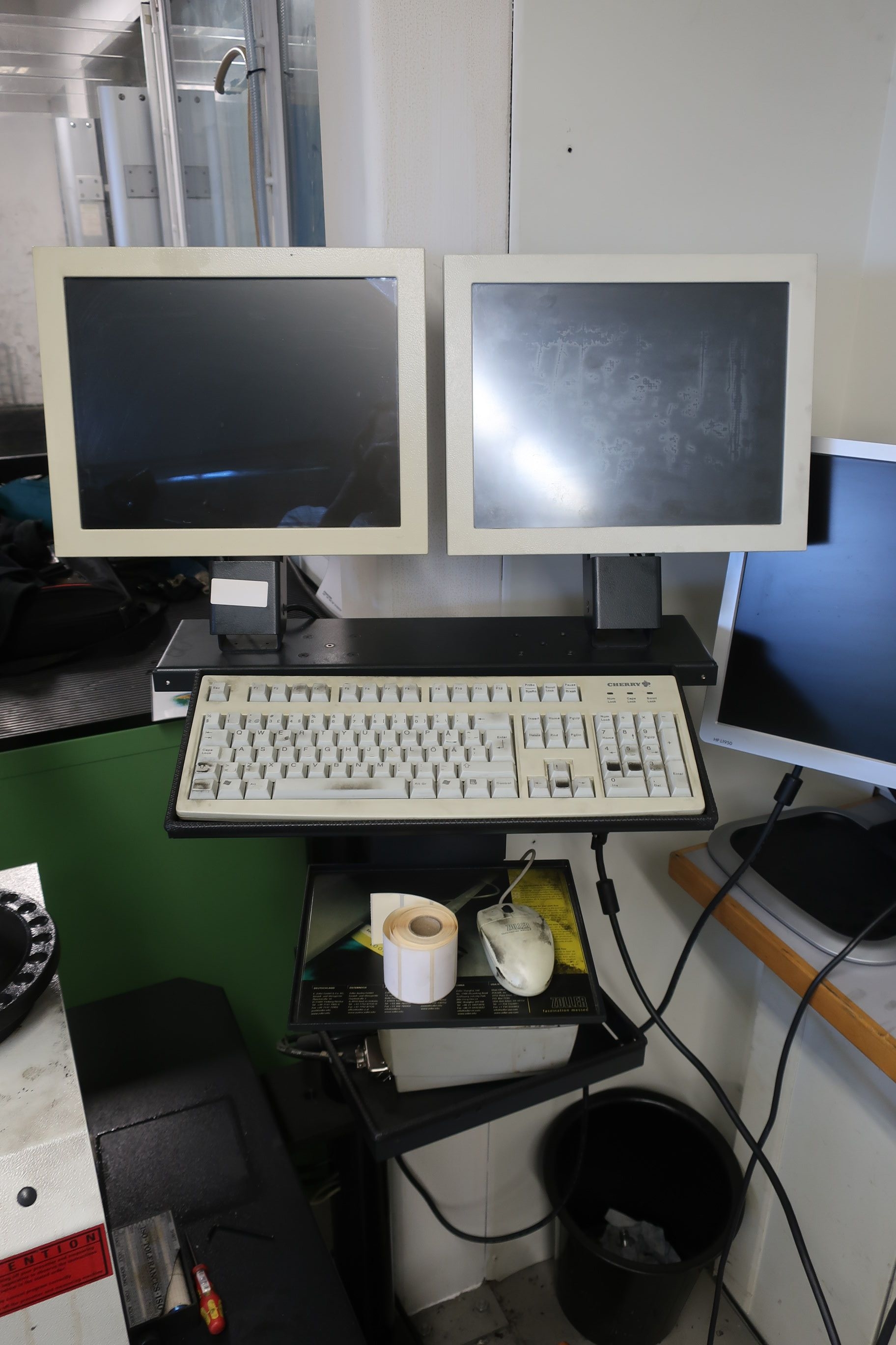 Two screens are connected to the machine, possibly because the original monitors are out of order. The machine has not been tested by PS but must have been in use until the bankruptcy came into force.