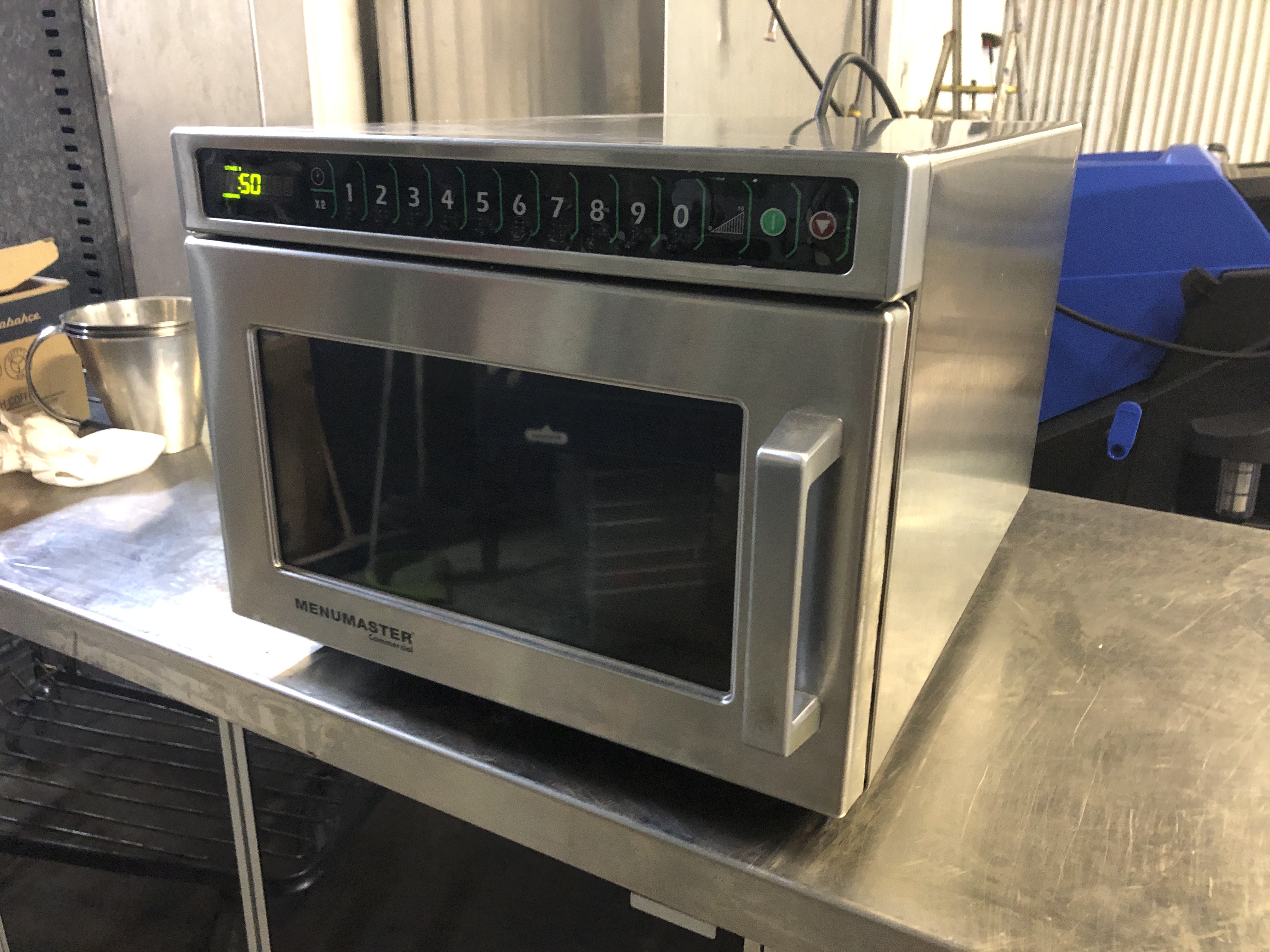 Menumaster compact microwave oven designed for the commercial kitchen. Made of stainless steel both inside and outside and designed for long durability. Easy to use and clean. Equipped with dual magnetrons for faster and more even heating, 11 power levels and programmable with up to 100 programs. Maximum cooking time 60min. Stackable. Digital control panel with LED display.