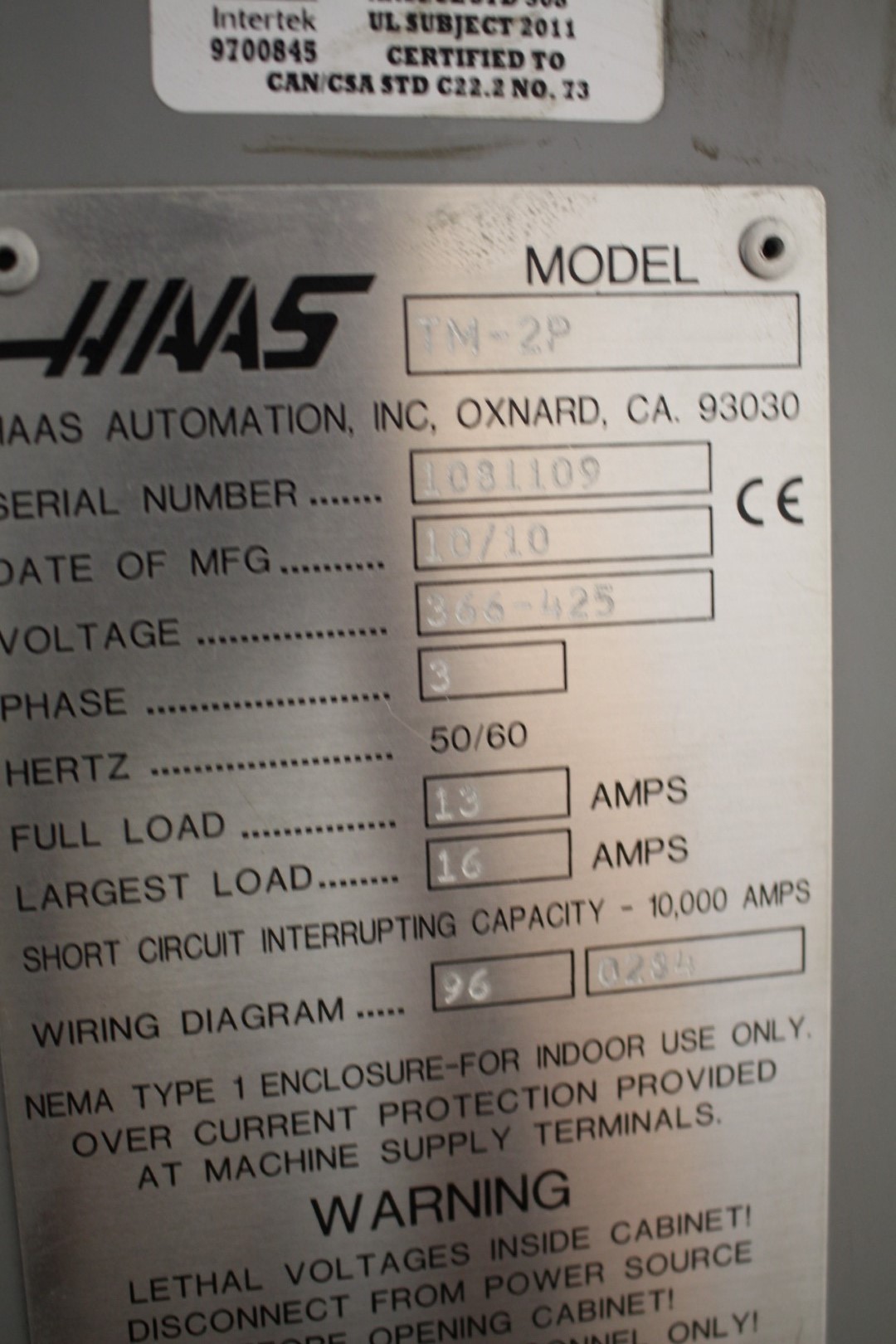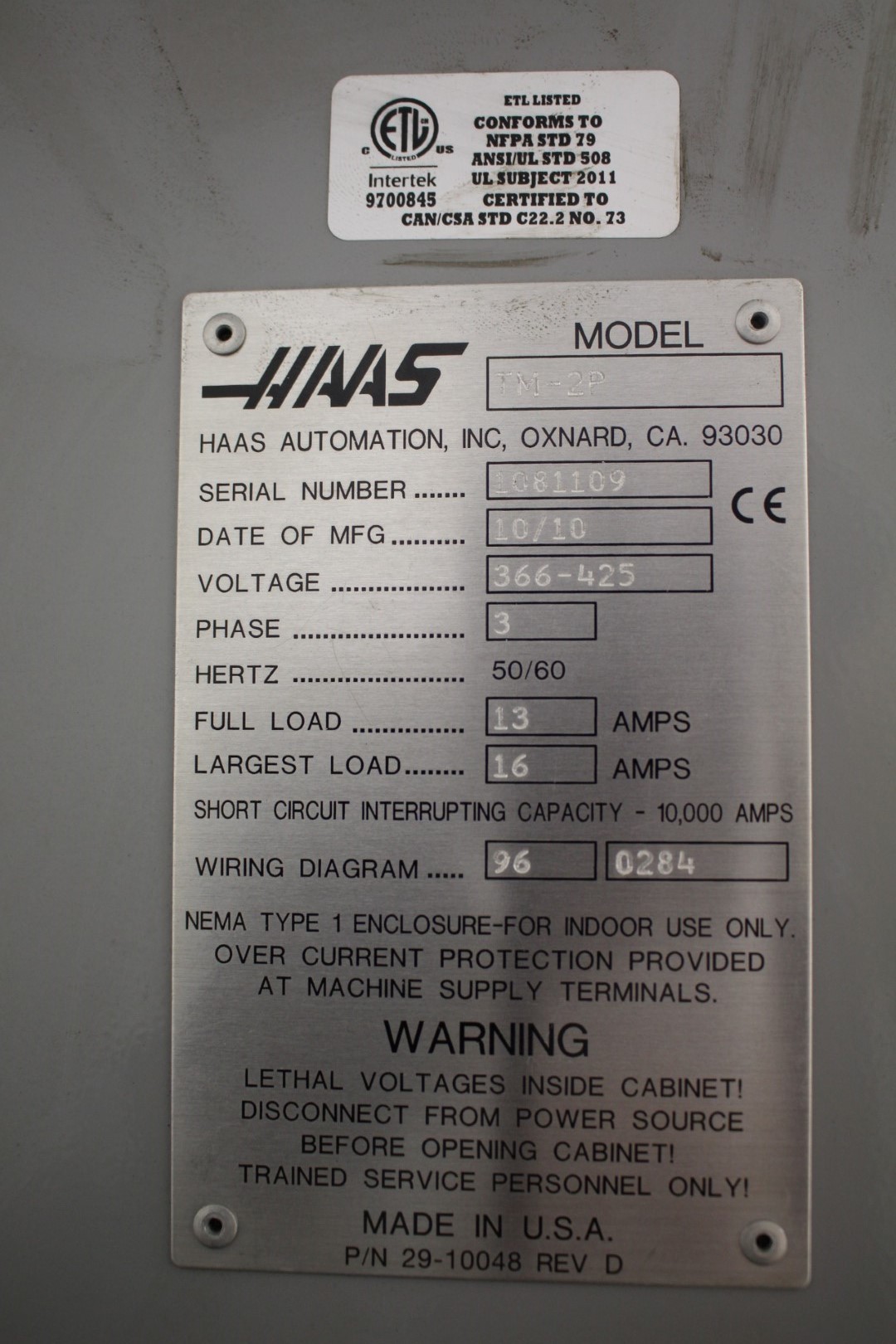 Manufacturing number: 1081109.