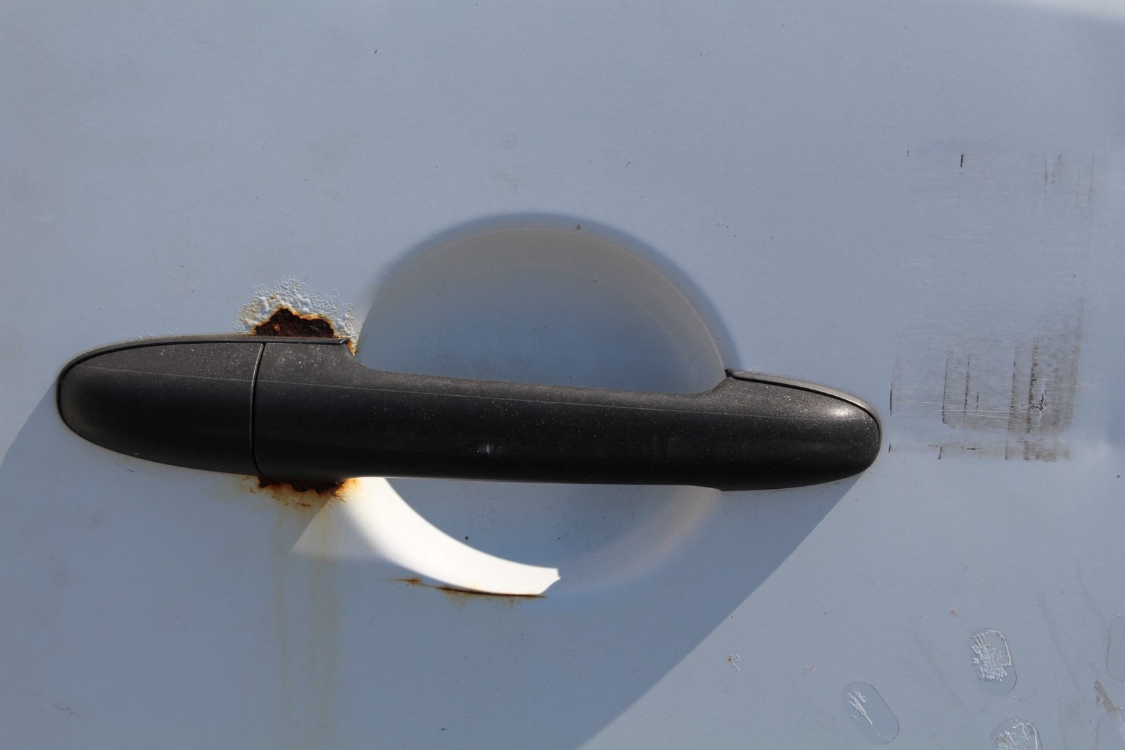 Buckles, rust and scratches occur.
