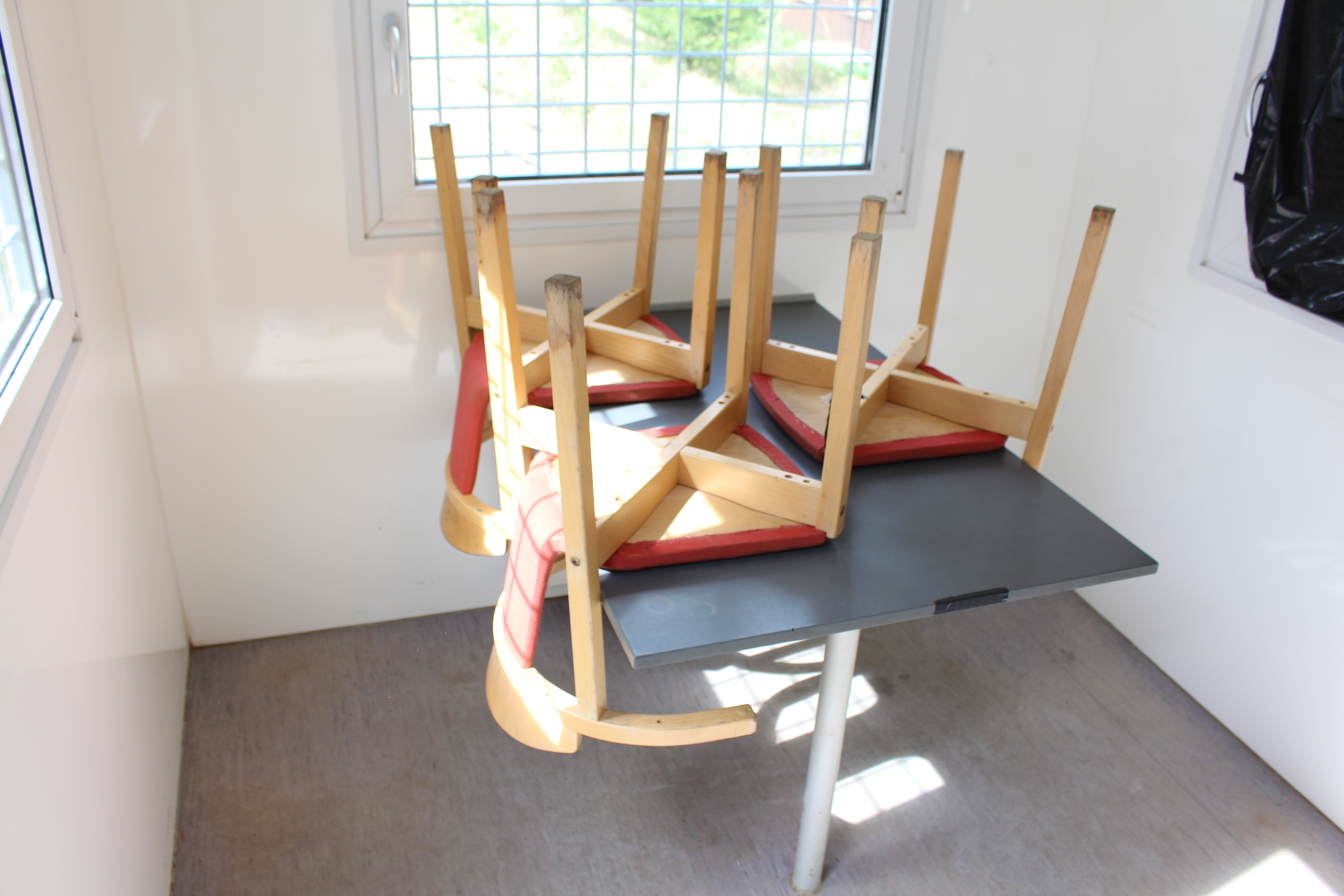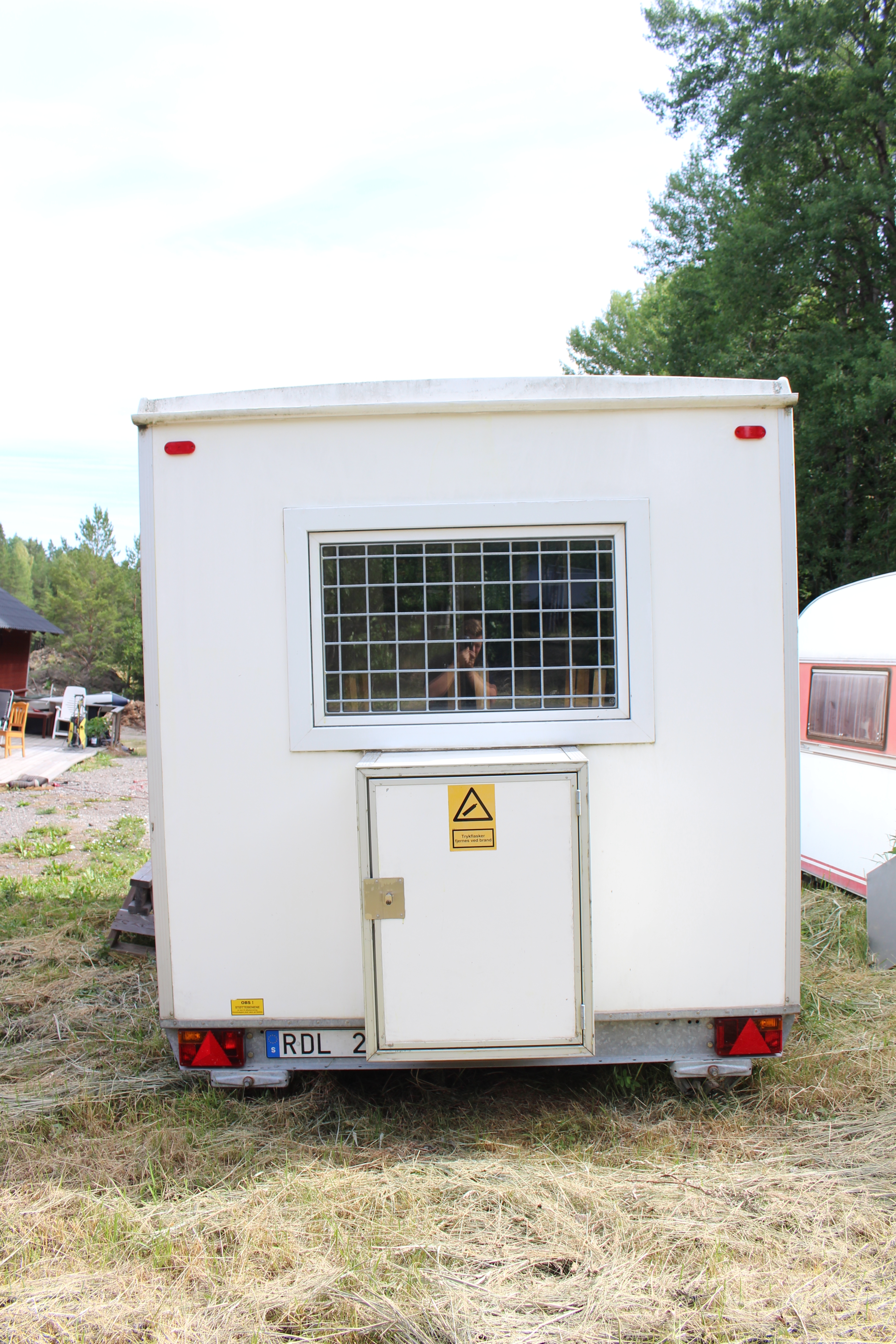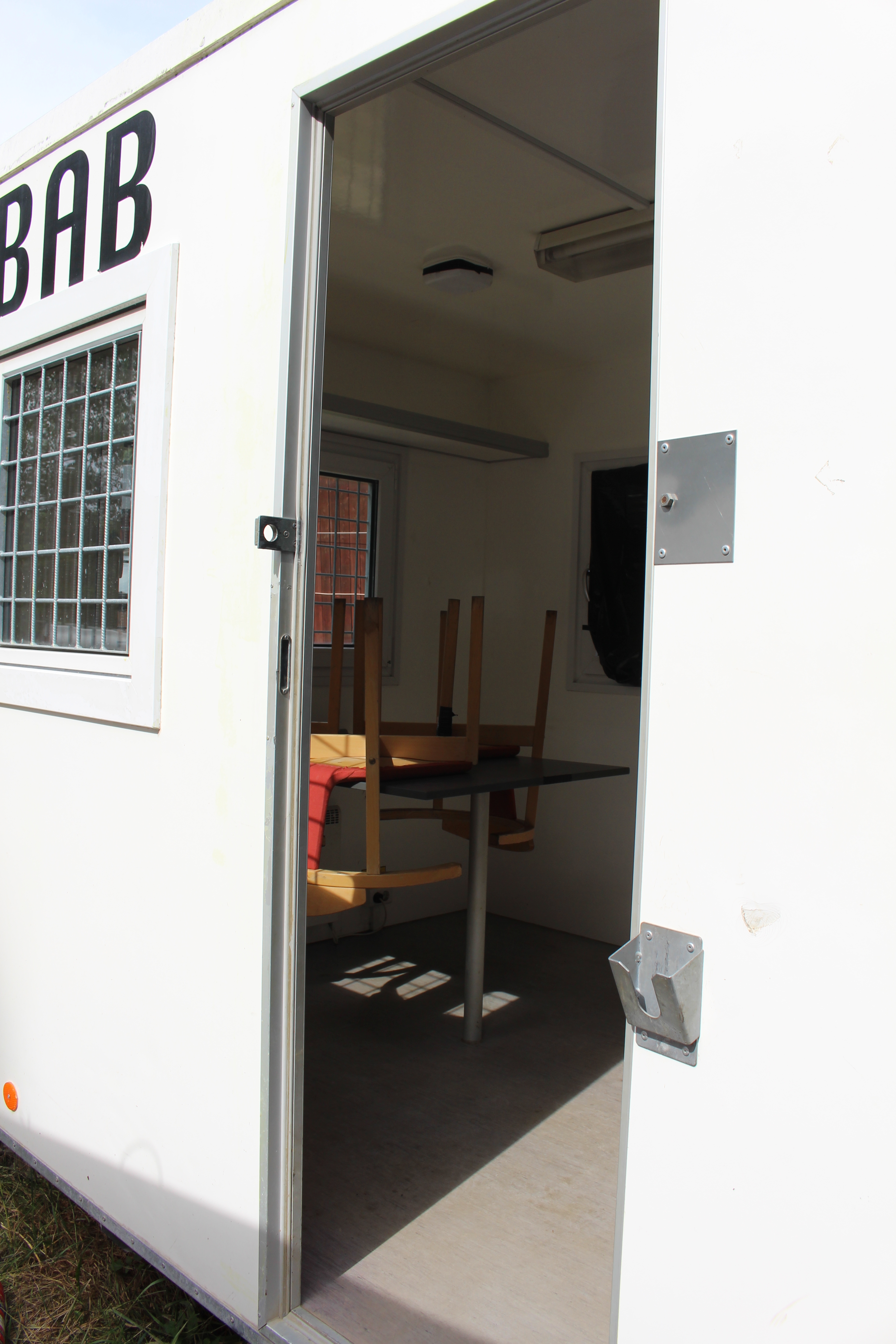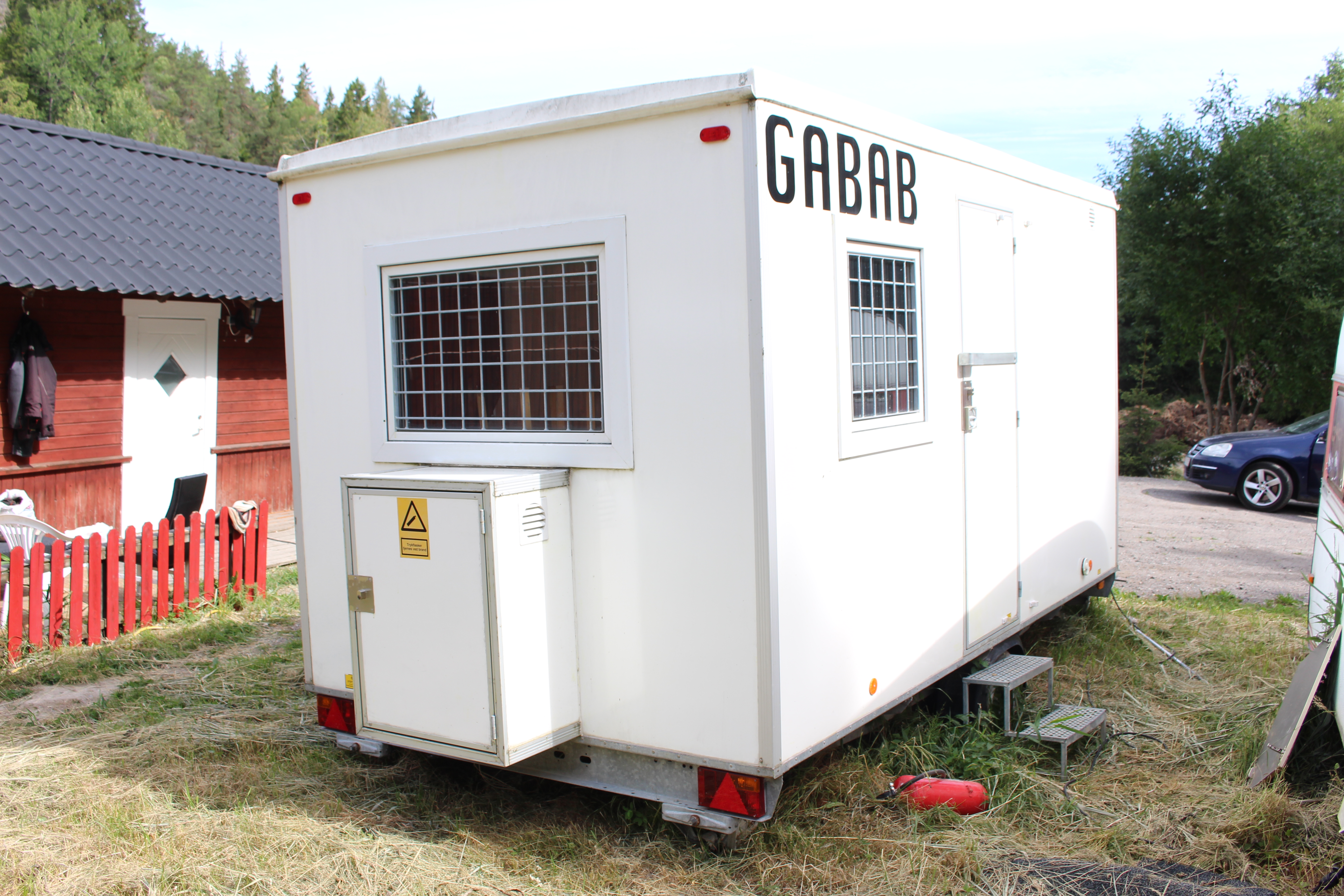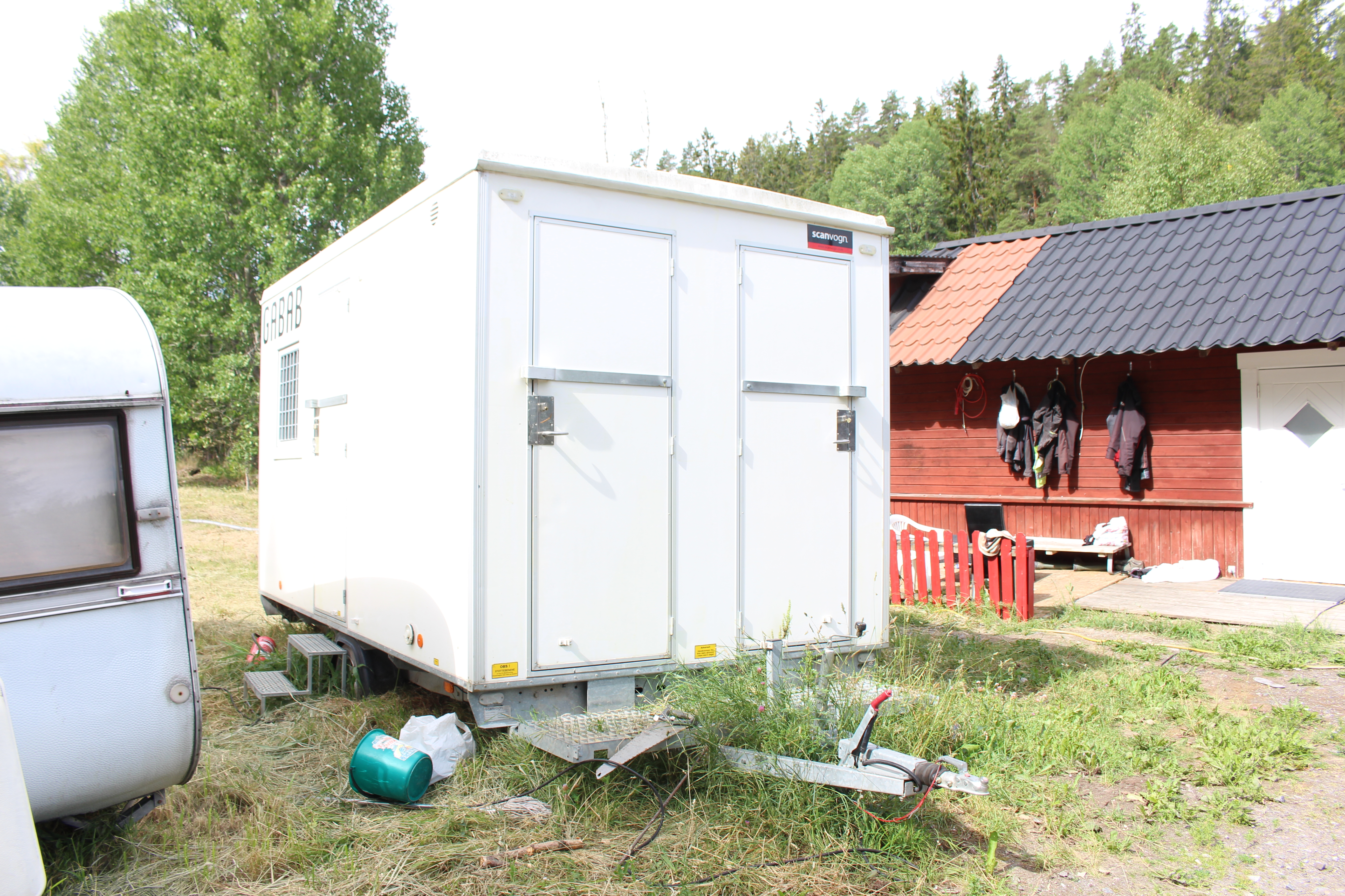 Rastvagn / manskapsbod från Scanovagn med matsal, toalett, förråd, fönster med galler,