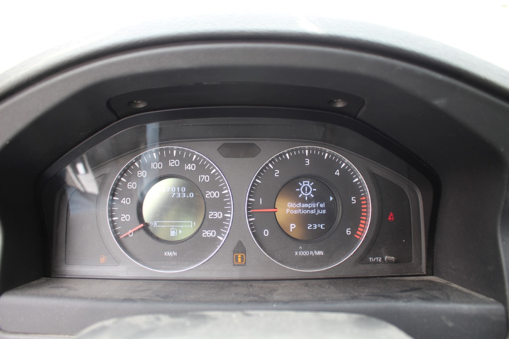 Varnar för tid för service överskriden och glödlampsfel positionsljus.