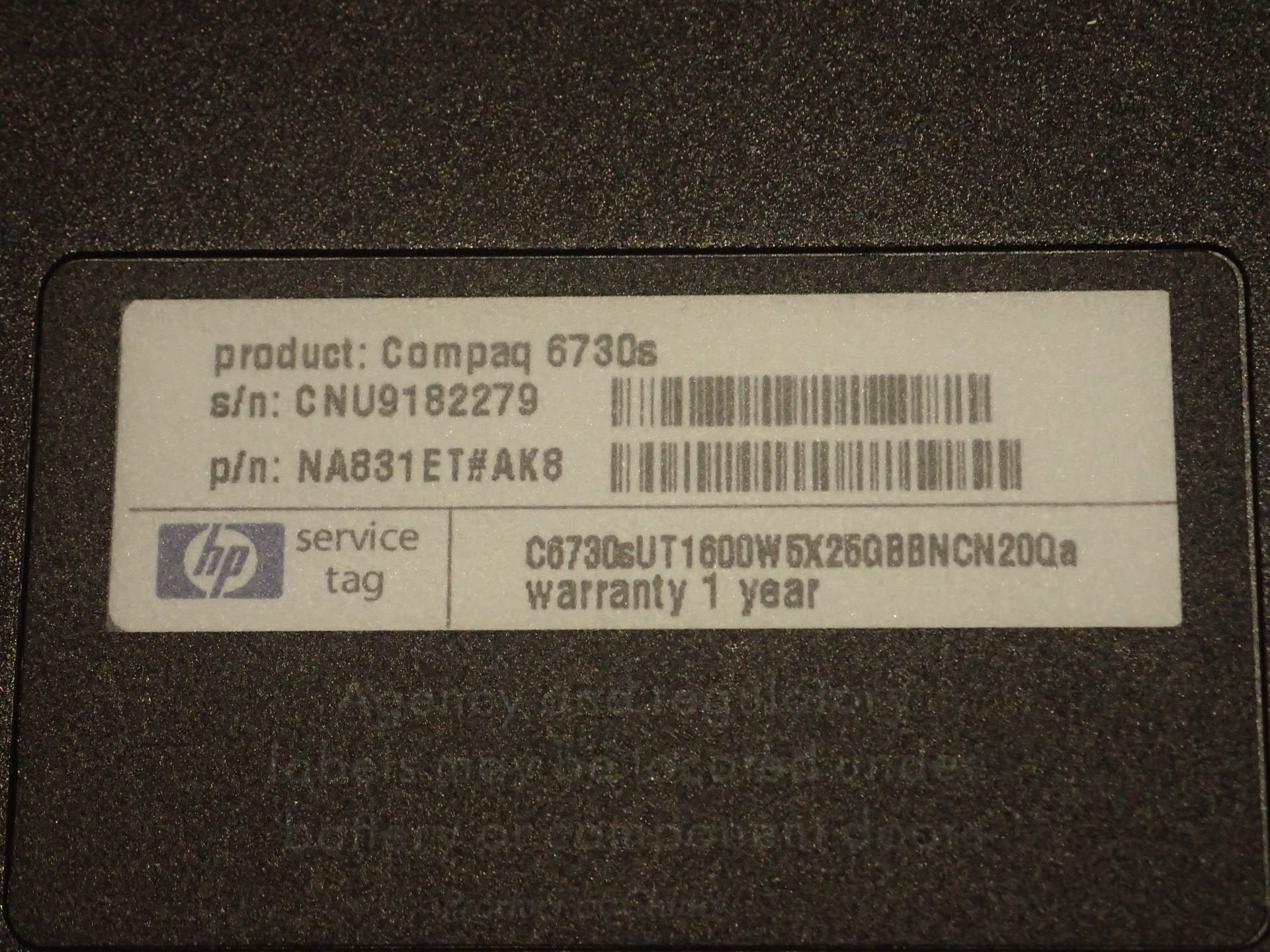 | Model | Compaq 6730s |