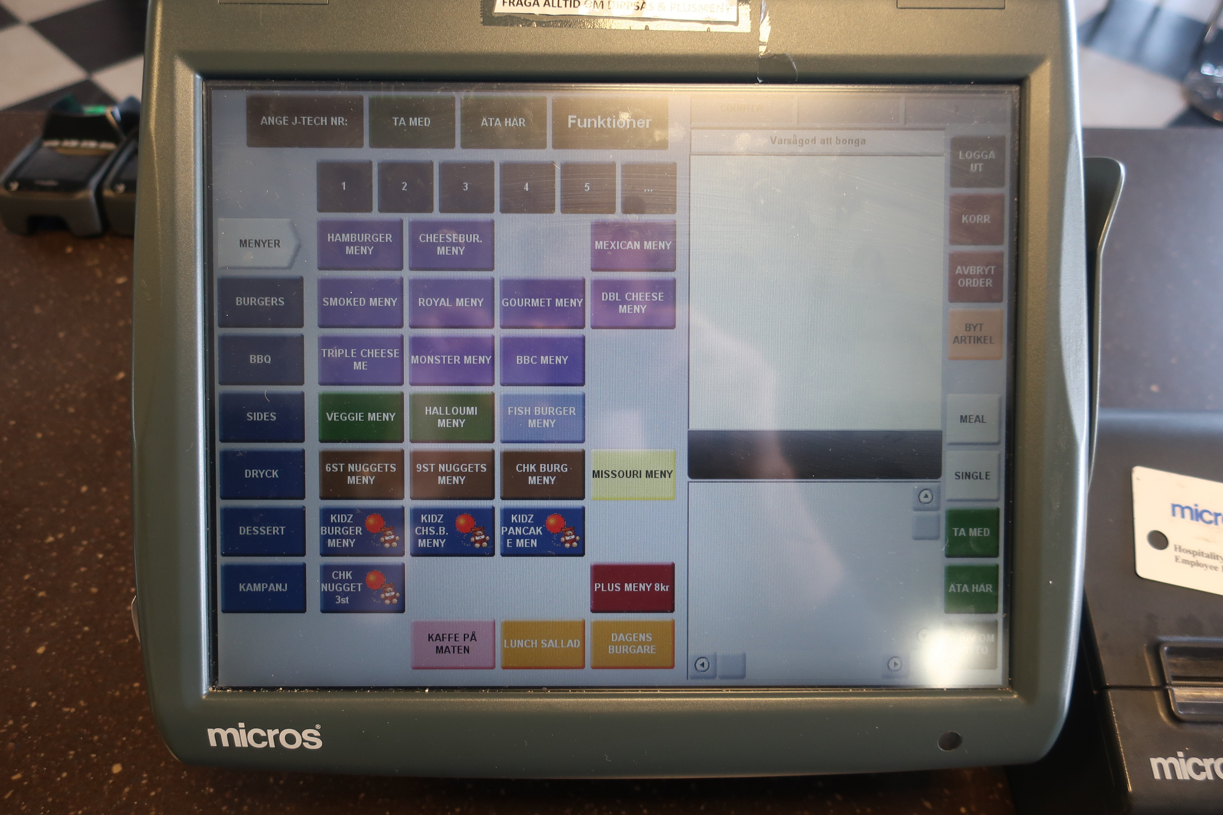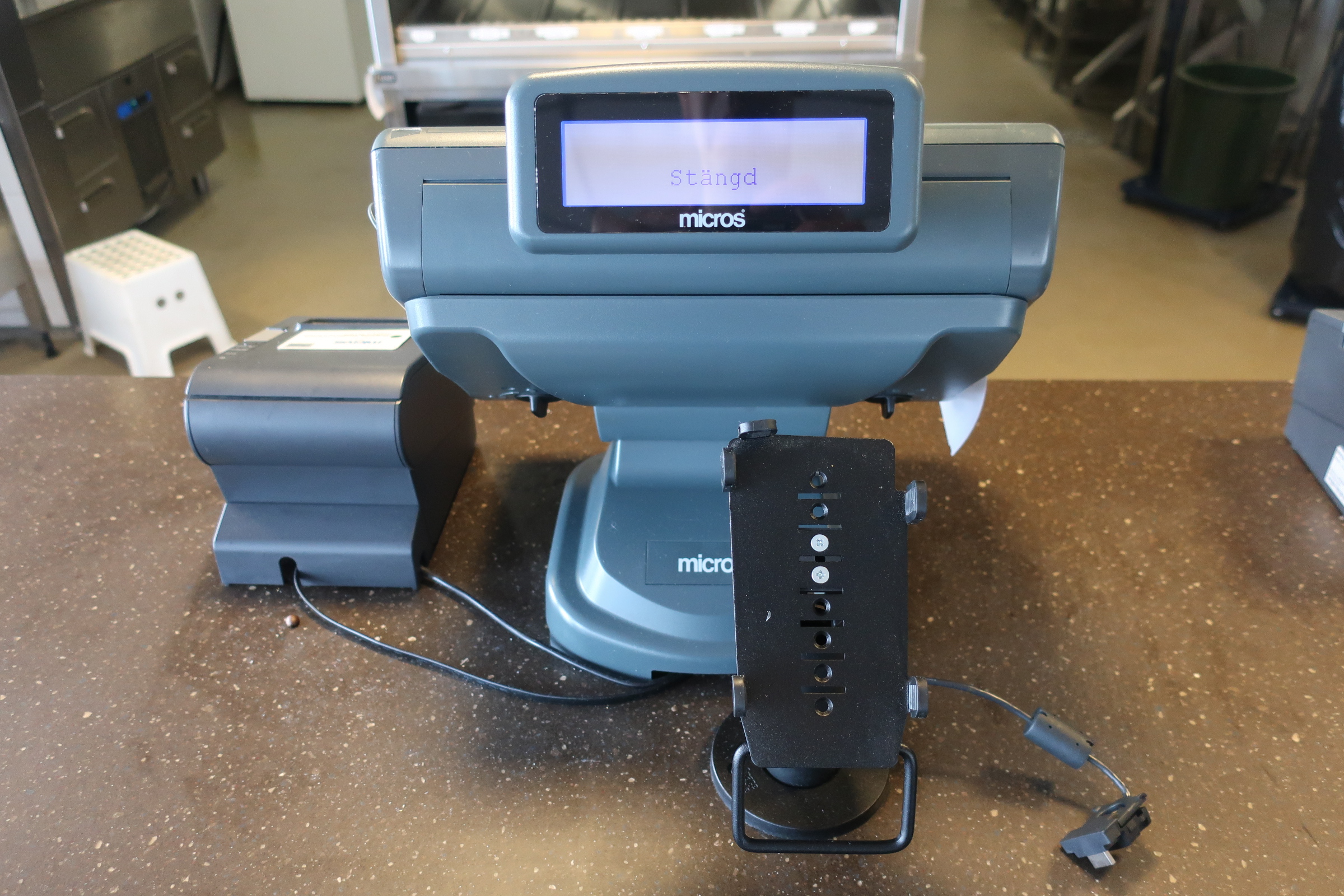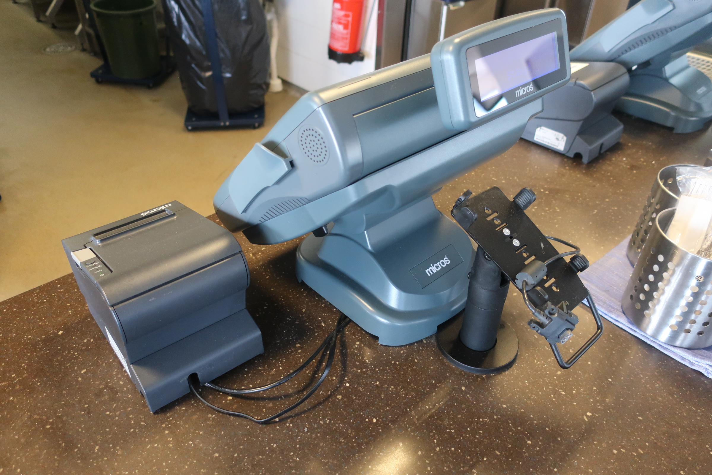 Complete cash line from Micros, RES3700 with 4 touch screens with cash boxes and receipt printers.