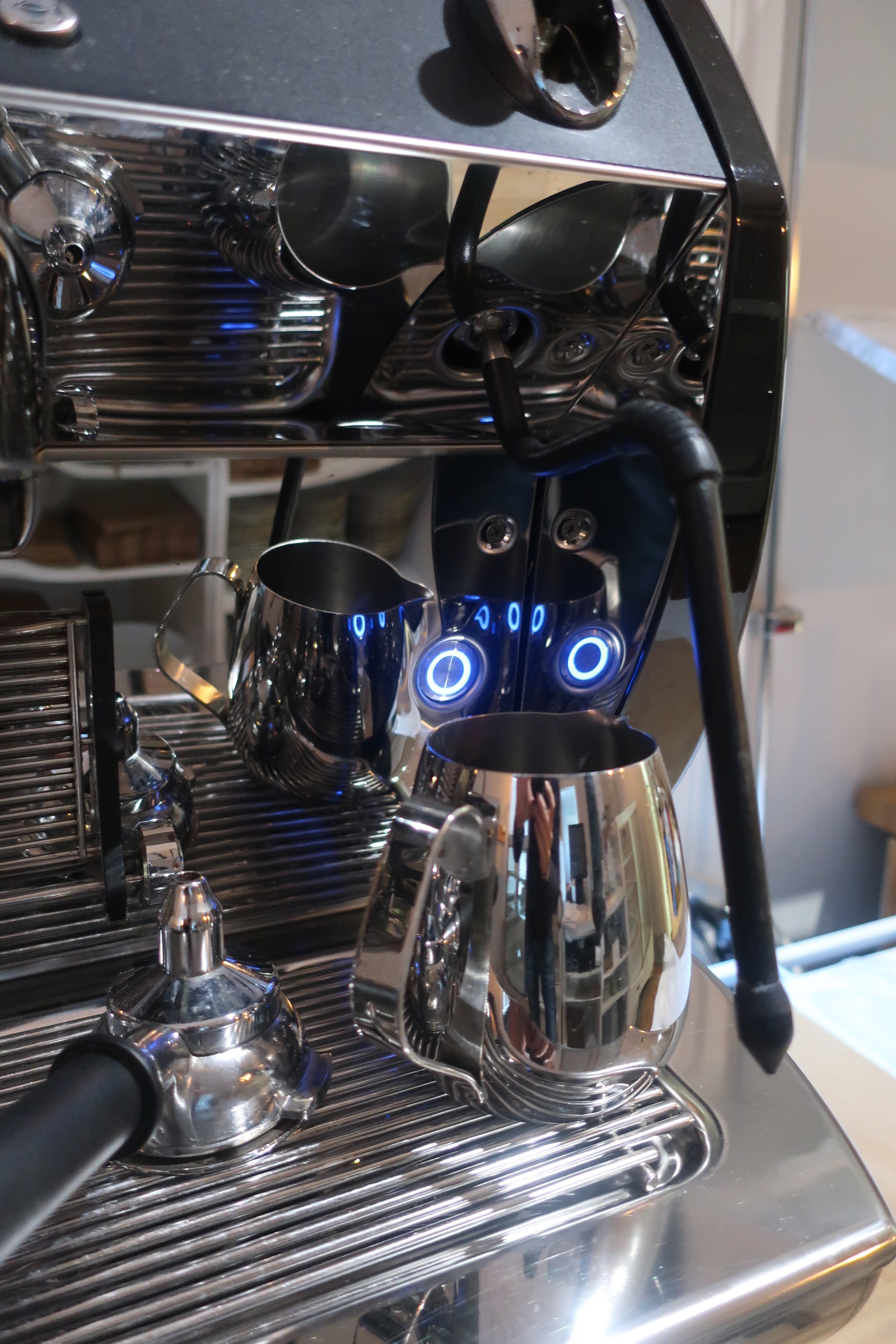 With milk frother, 3 handles.