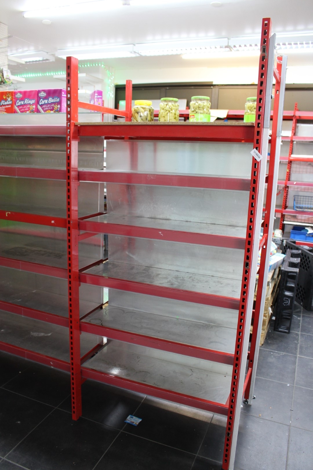 14st sektioner butikshyllor, vissa fristående, vissa för att stå mot vägg.