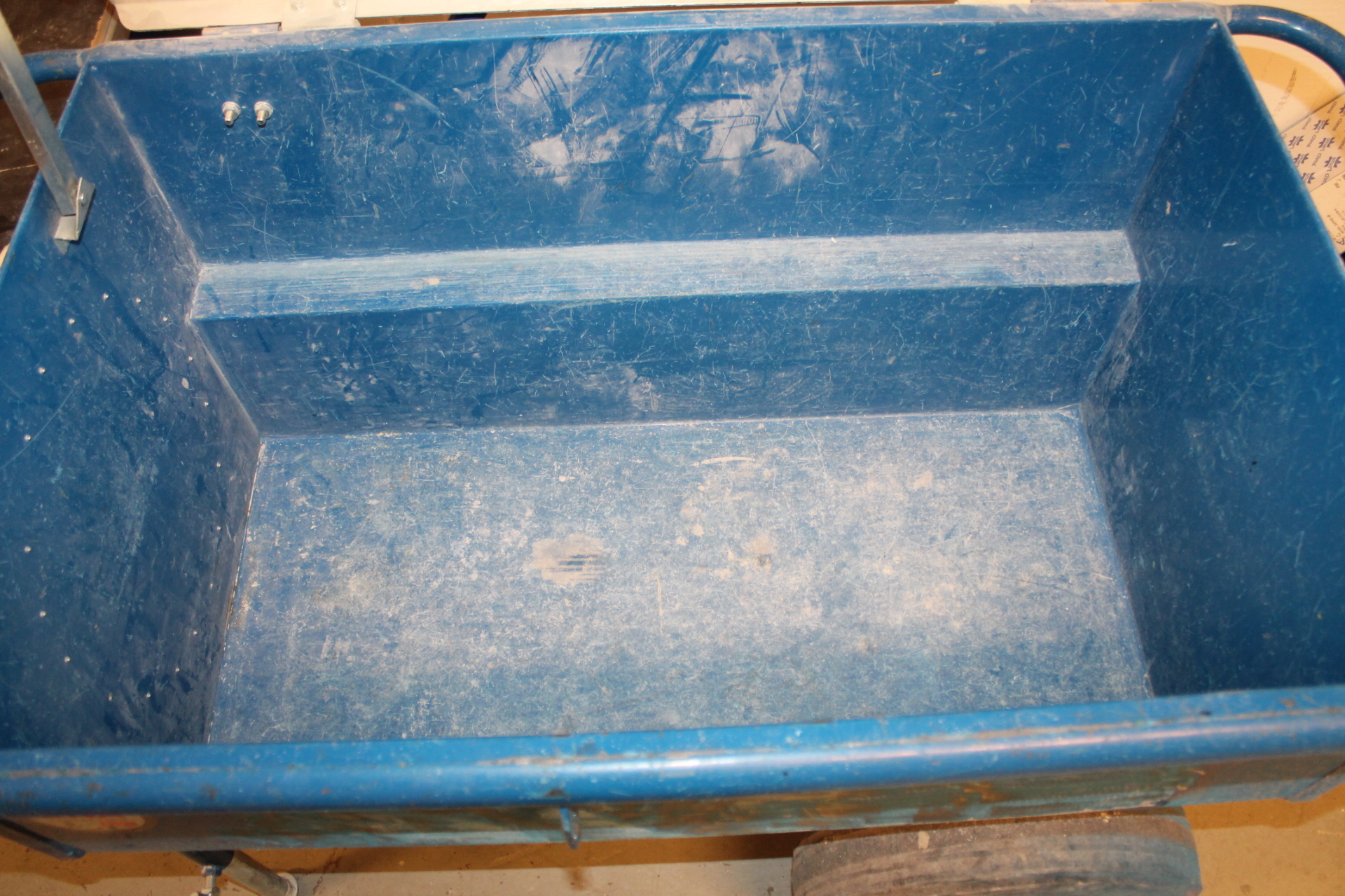 All items are in a garage near a parking lot.