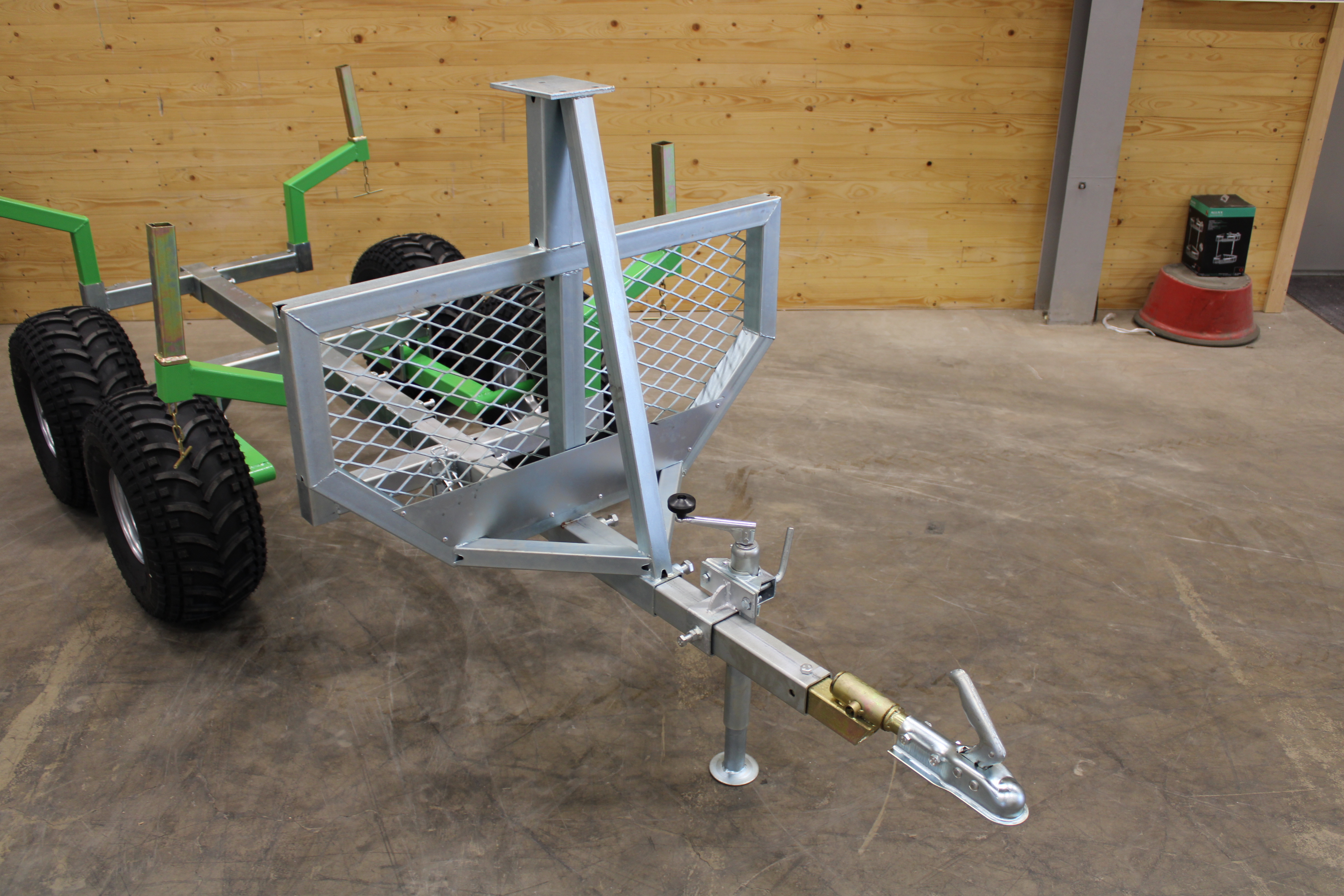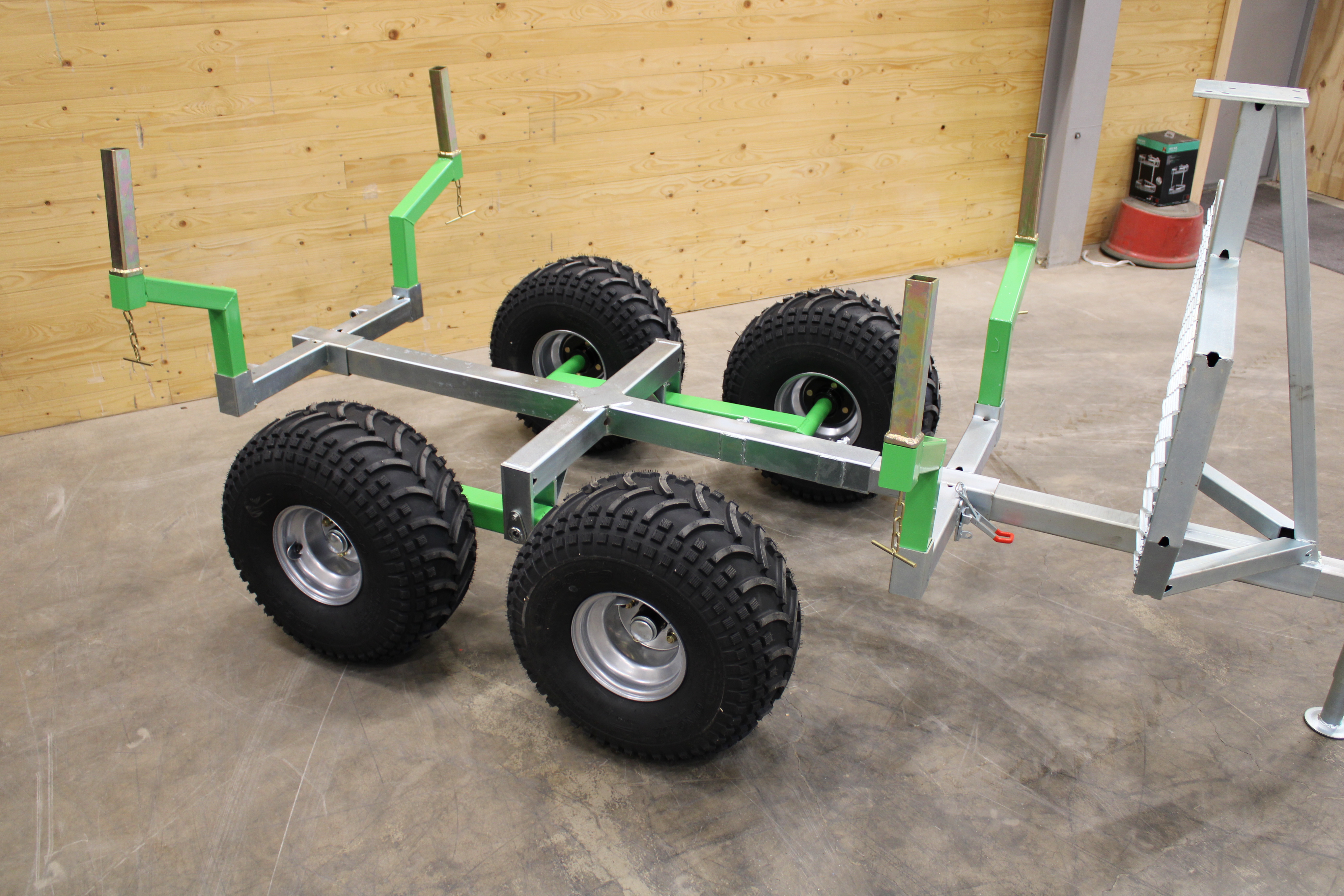 Timber wagon with tiltable insert flange for ATV or other off-road vehicle.