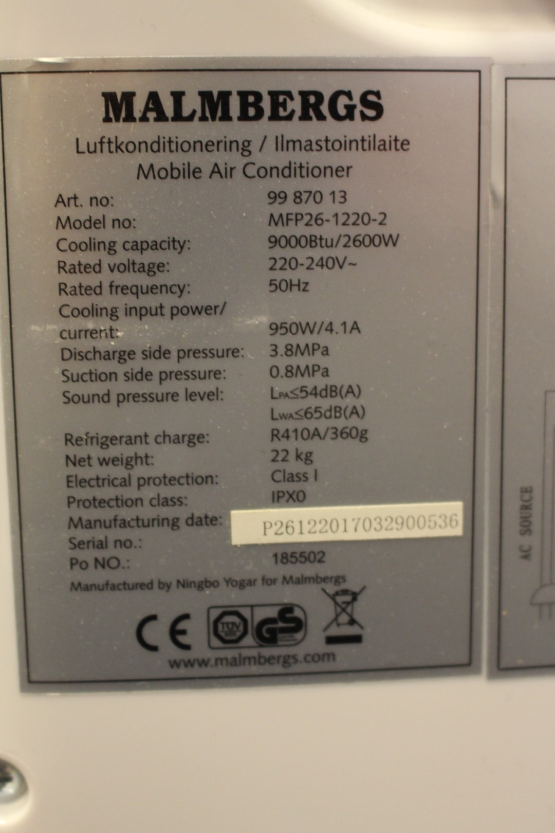 Portabel AC Malmbergs MFP26-1220-2.