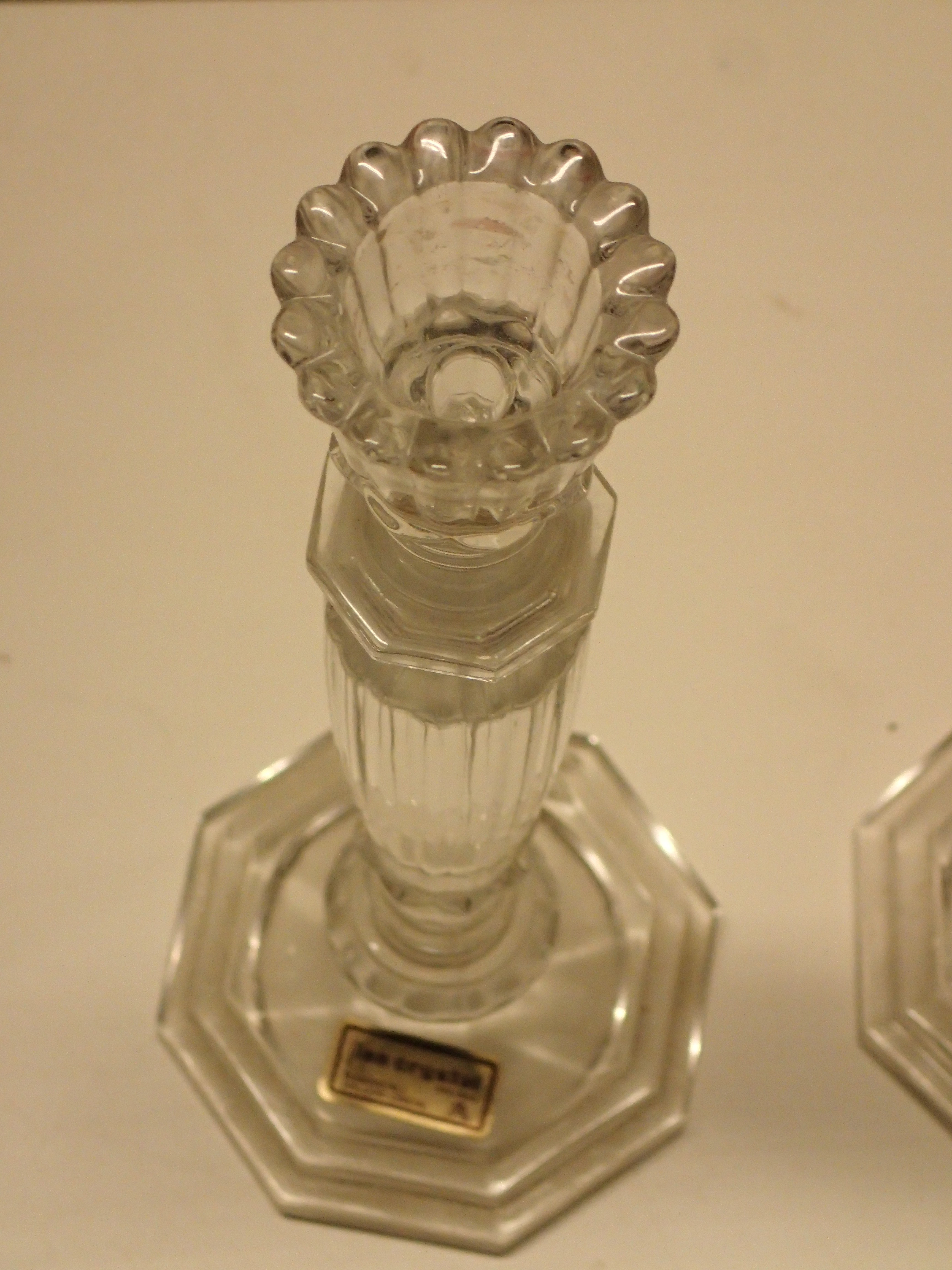 2 older candlesticks bleach crystal "Inn crystal in good condition, height: approx: 25 cm